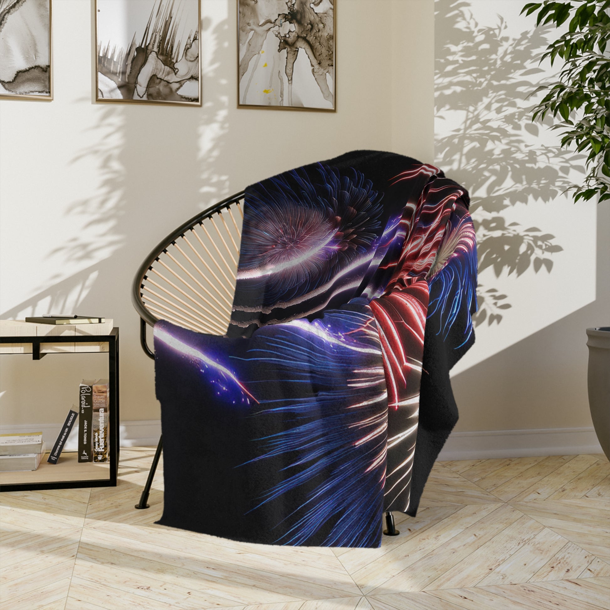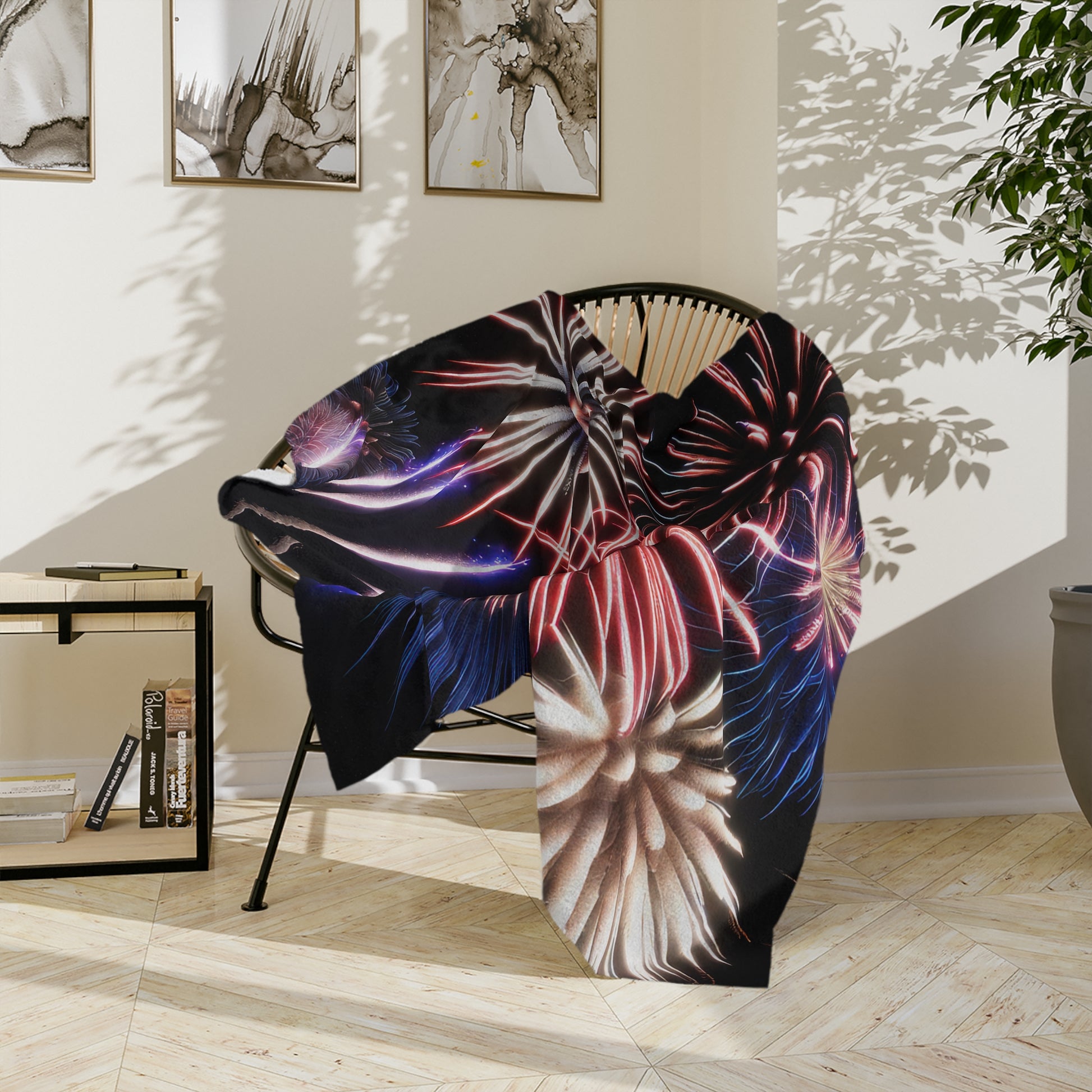 Celebrate freedom in full color with this dazzling 4th of July Fireworks Plush Blanket! Bursting with brilliant red, white, and blue fireworks against a dark night sky, this super-soft fleece throw brings the energy and magic of Independence Day right to your living room, patio, or picnic blanket spread. Perfect for cozying up to watch fireworks, adding festive flair to your couch, or gifting to anyone who loves patriotic vibes and summer celebrations. This lightweight blanket is breathable, soft, and made for unforgettable nights under the stars.