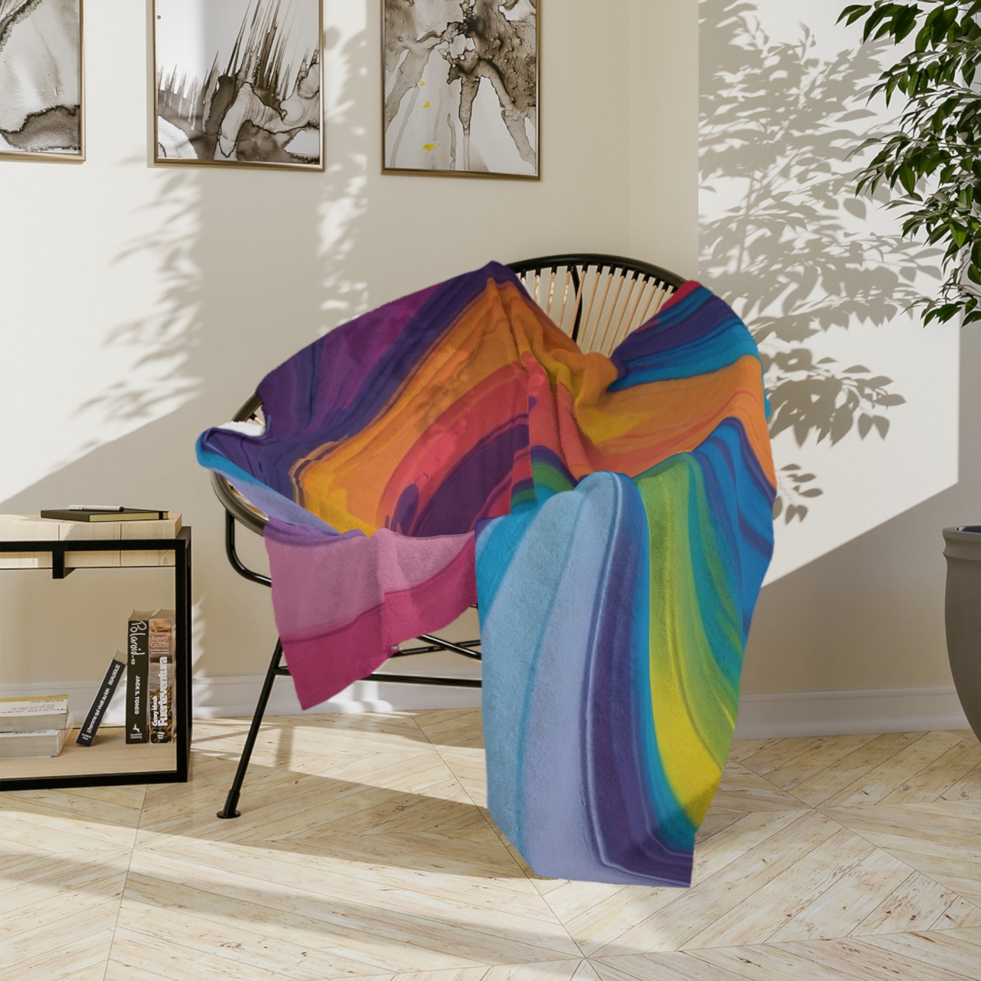 Wrap yourself in a whirlwind of color with our stunning Abstract Swirl Velveteen Blanket. This blanket features a mesmerizing, psychedelic swirl of vibrant colors, including orange, yellow, blue, purple, and pink. It's the perfect throw for anyone who loves bold, abstract art and wants to add a pop of color and personality to their space.