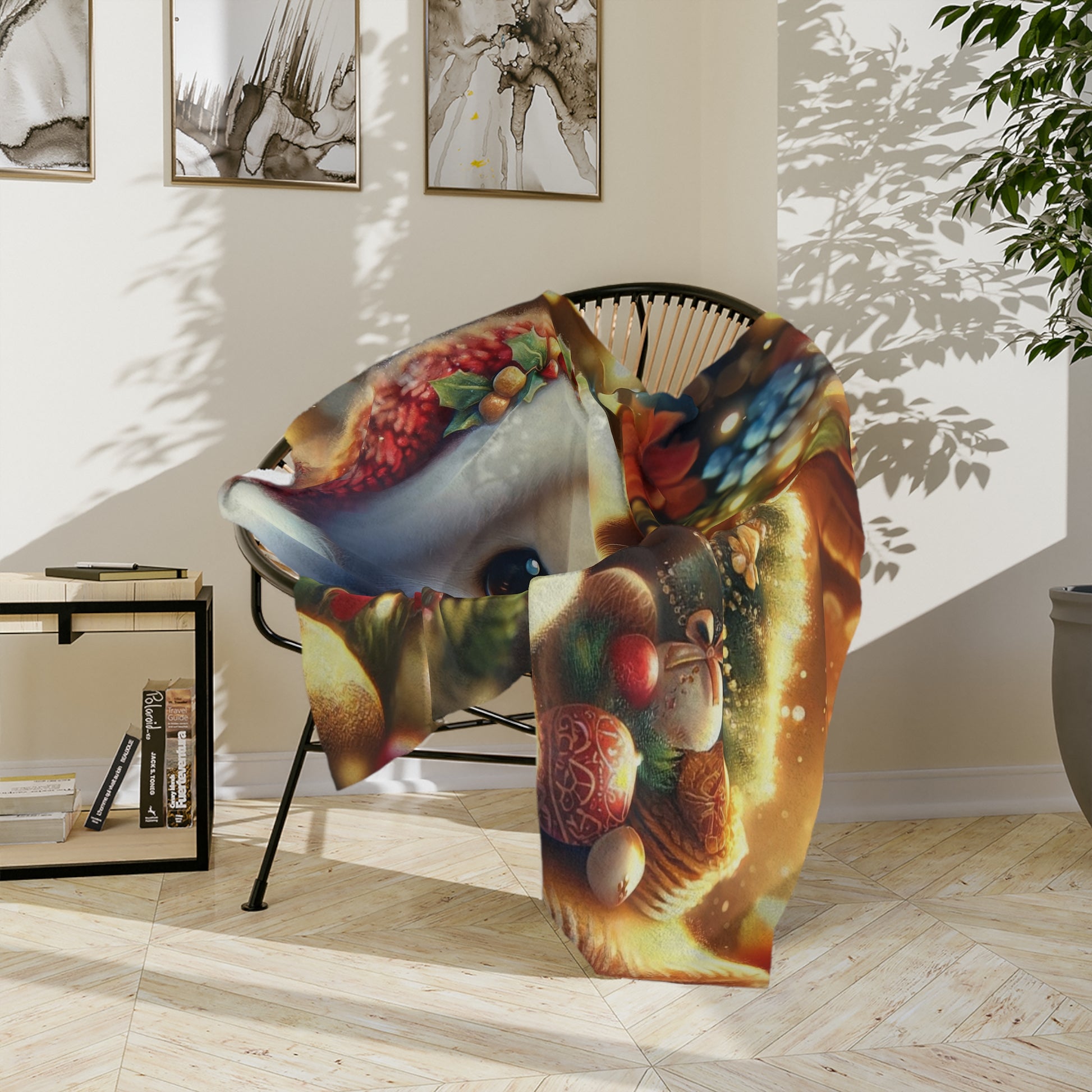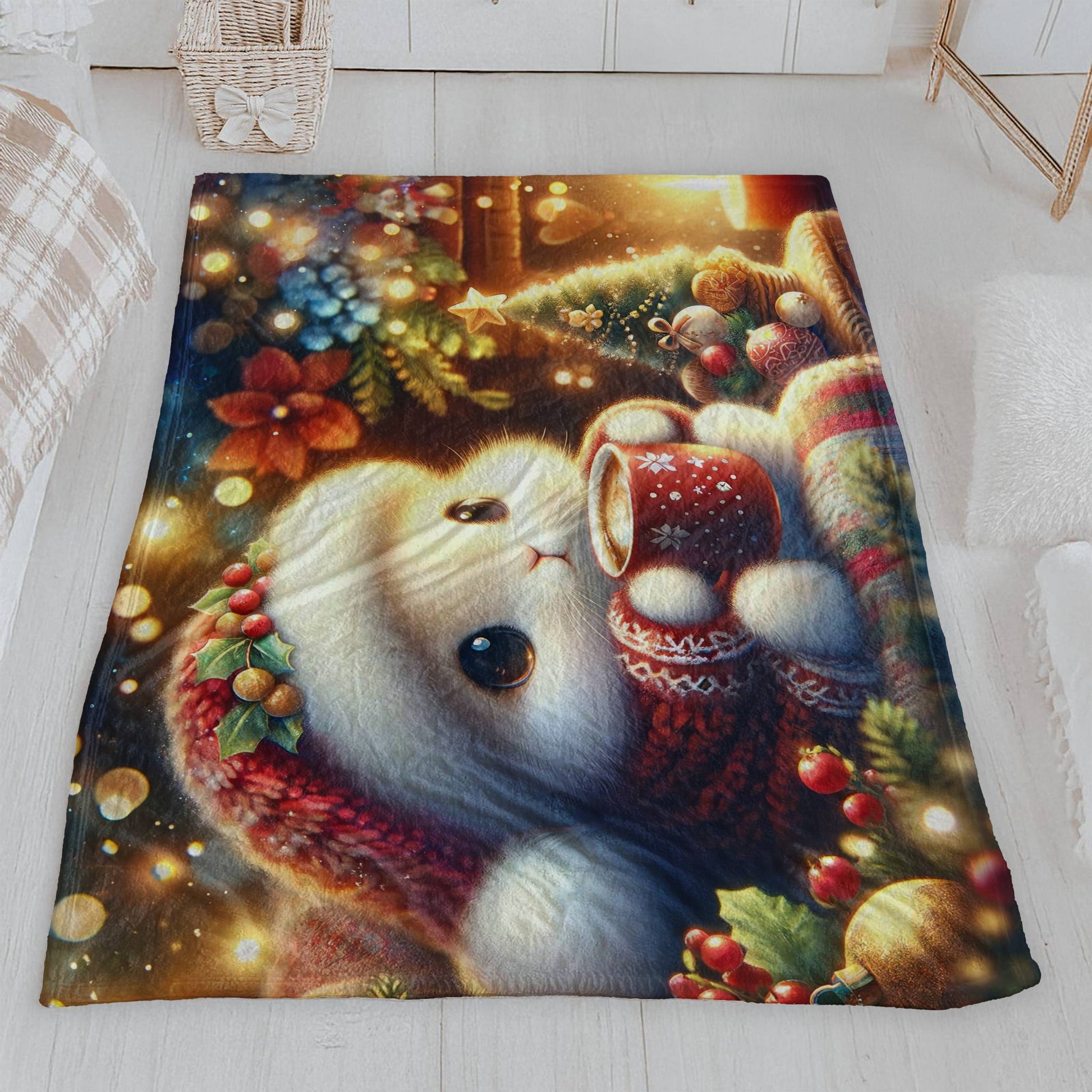 Snuggle up and get into the holiday spirit with our Adorable Fluffy Bunny Velveteen Blanket. This super-soft, lightweight blanket is a perfect way to add a heartwarming touch to your festive decor. The charming illustration features a cute, fluffy bunny with big eyes, wearing a festive Santa hat and scarf, happily holding a mug of hot cocoa in a glowing, cozy Christmas scene. A fantastic gift for anyone who loves the holidays, cute animals, or simply wants to bring a little extra comfort and whimsy into their life.