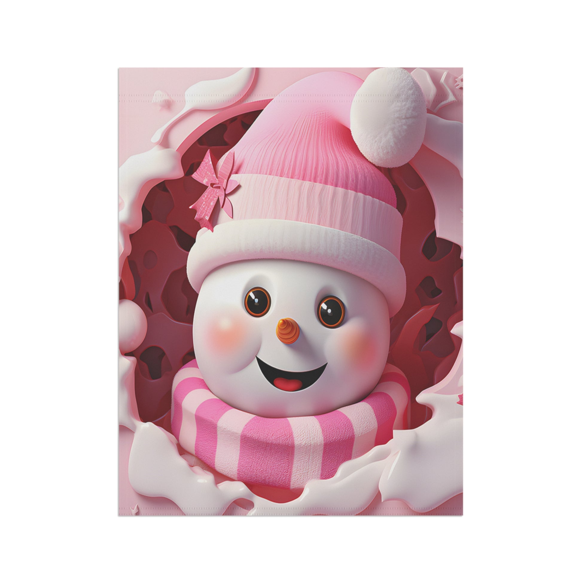 Add a touch of unique charm and playful cheer to your outdoor space with our adorable pink snowman garden flag! This delightful flag features a rosy-cheeked snowman peeking out from a snowy pink frame, wearing a cute striped pink hat and scarf. It's the perfect whimsical addition to your winter and holiday decorations, offering a fresh take on traditional snowman decor. Crafted from durable, weather-resistant material, it's designed to maintain its vibrant colors and stand up to the elements season after season. A fantastic way to brighten your garden, patio, or entryway, and a wonderful gift for those who love unique and charming holiday accents! (Flag stand not included).