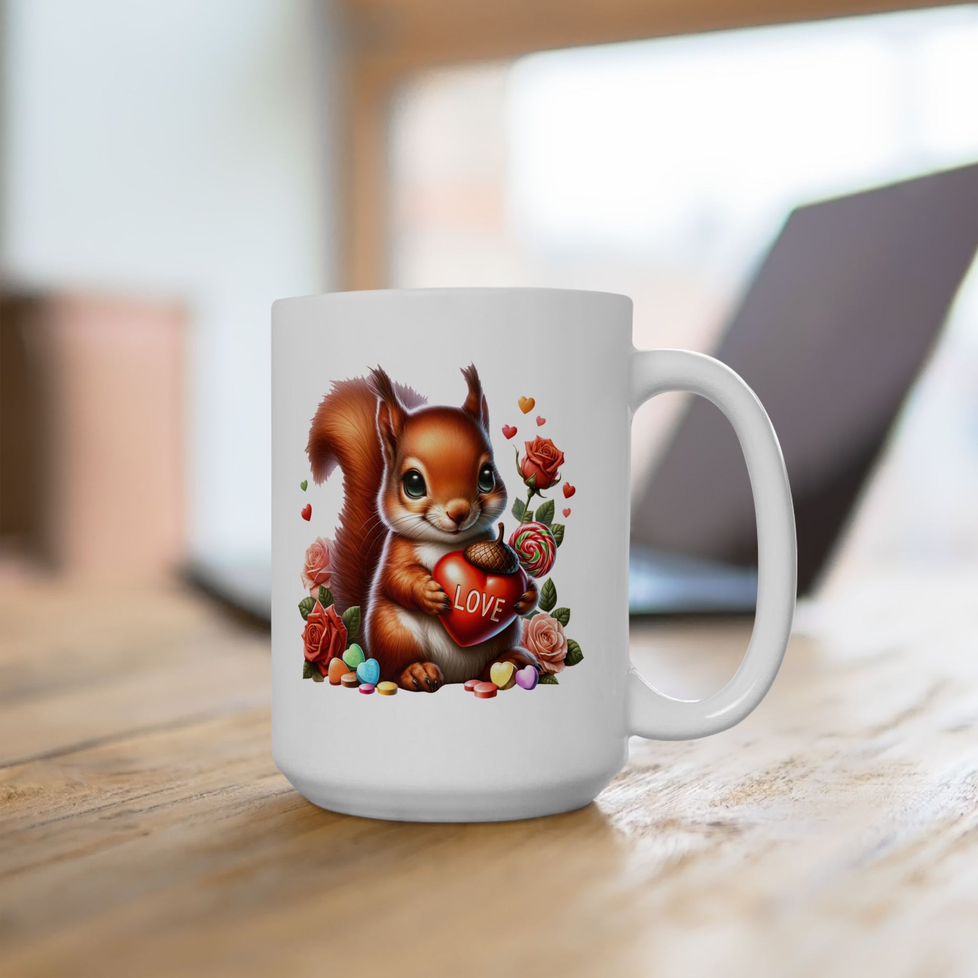 Crafted from high-quality, durable ceramic, this romantic coffee cup is designed for daily enjoyment, keeping your favorite hot beverages warm. Its comfortable handle and generous size make it a pleasure to hold. The vibrant, heartwarming print of our sweet love squirrel is sure to bring a smile to anyone's face, making it an excellent gift for Valentine's Day, anniversaries, birthdays, or just to show someone special how much you care, especially if they adore animals and nature.