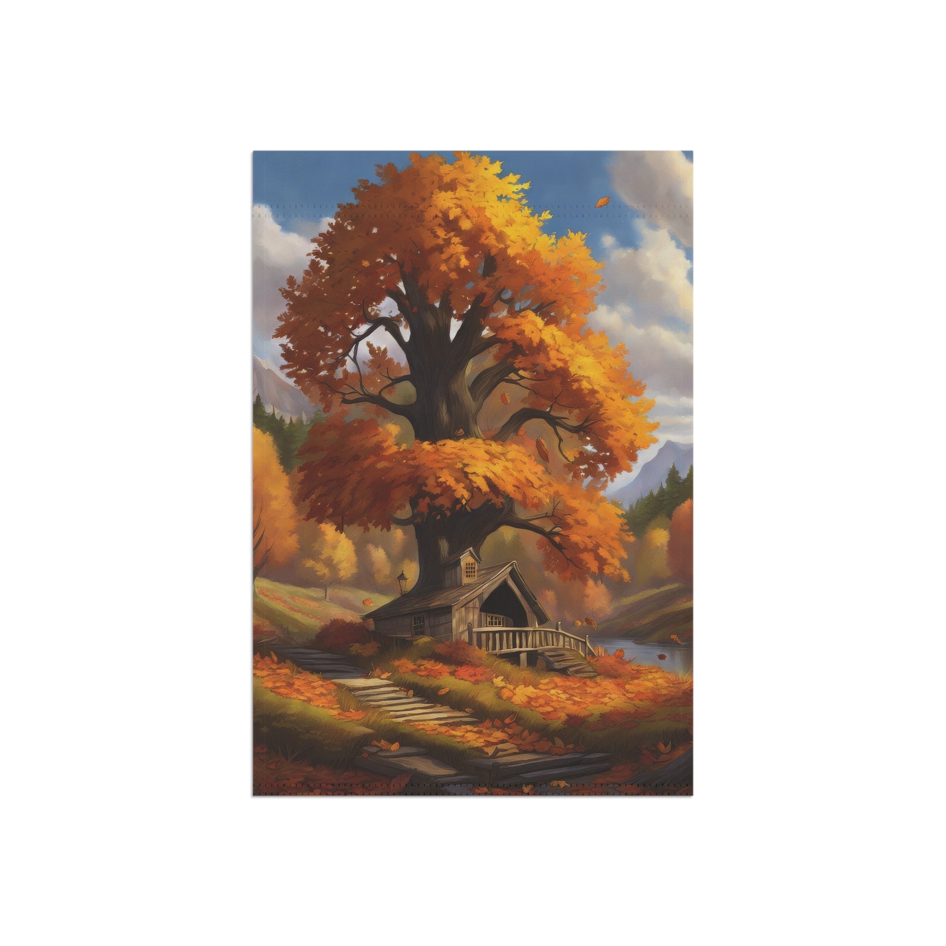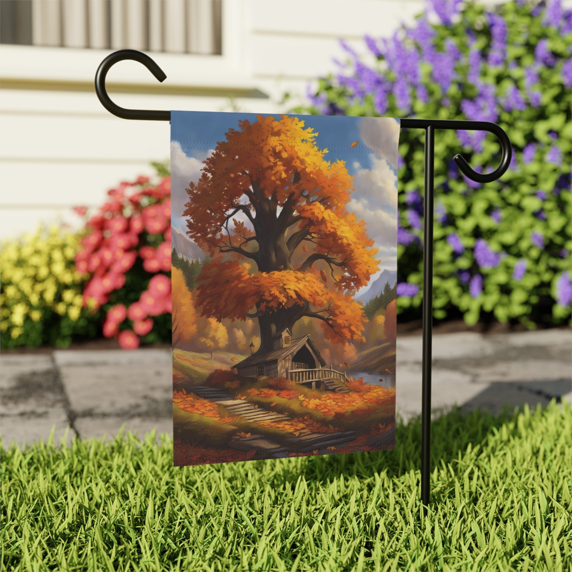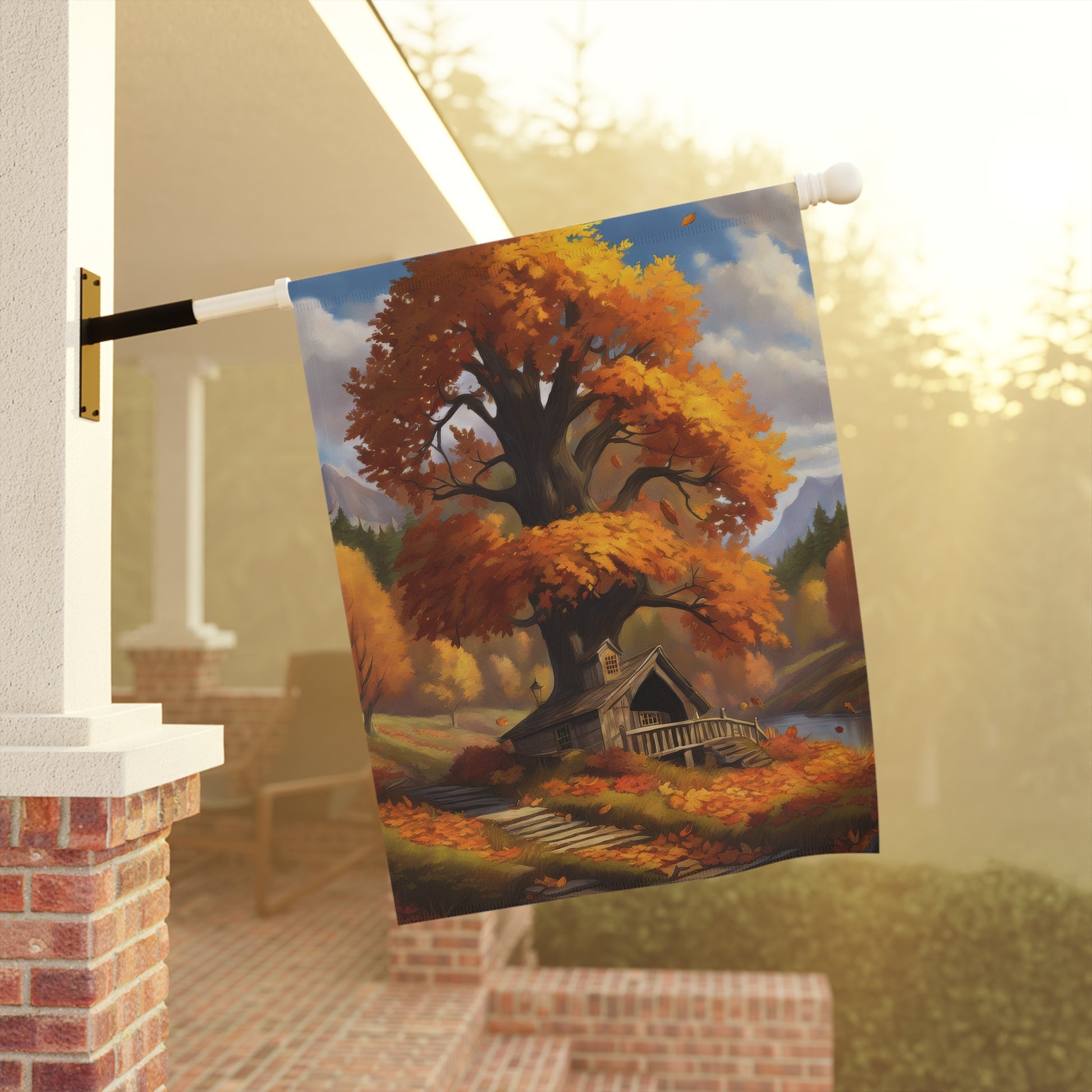 Welcome the changing leaves and cooler weather with this beautiful fall flag featuring rich hues of gold, rust, and burgundy. Add a touch of autumn charm to your home's exterior with this vibrant flag waving in the breeze.