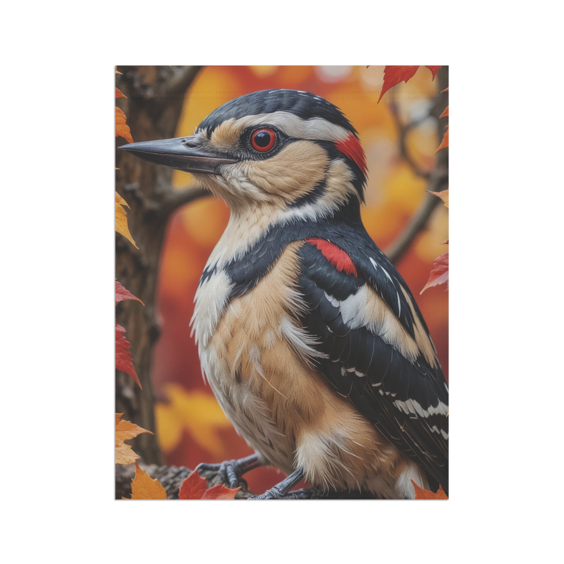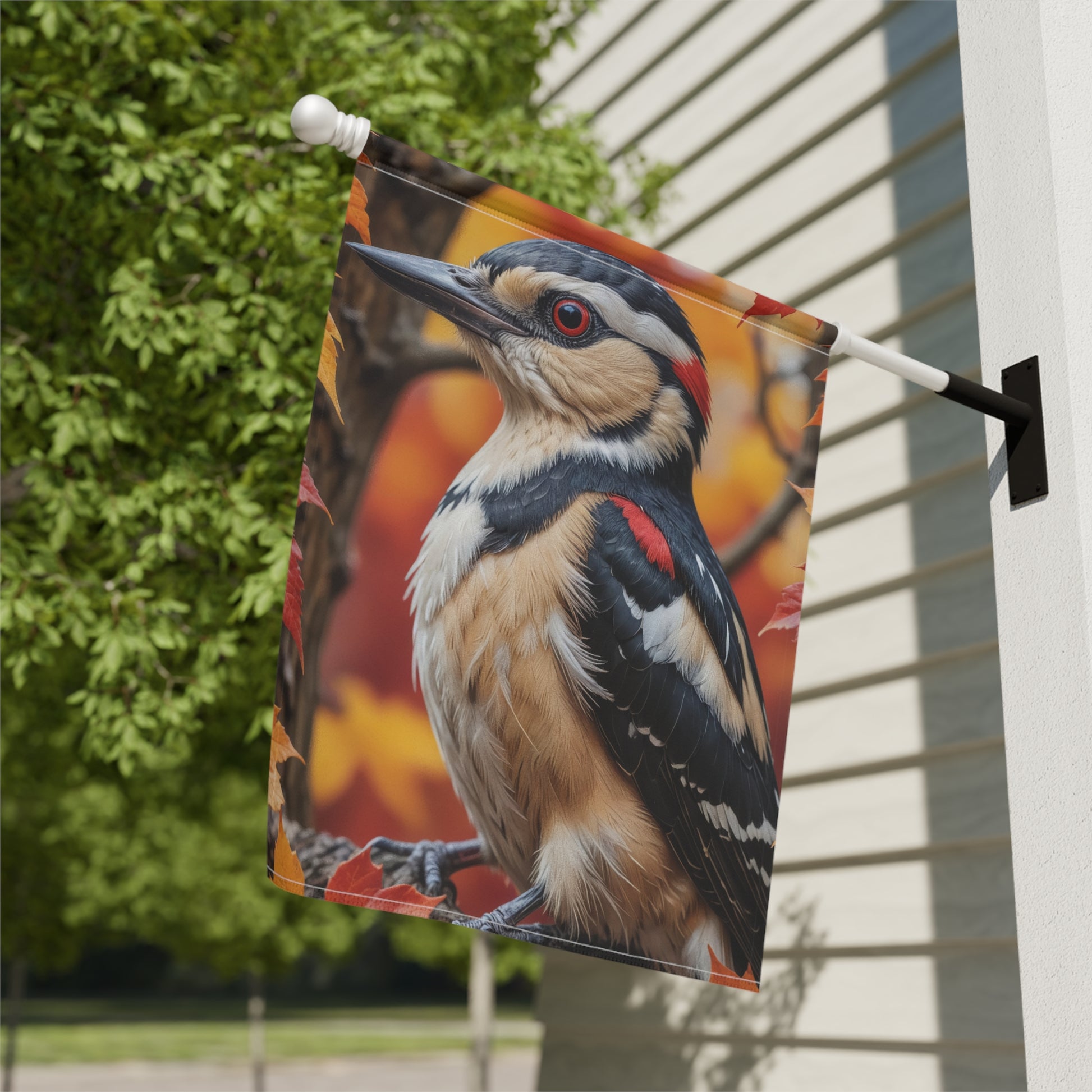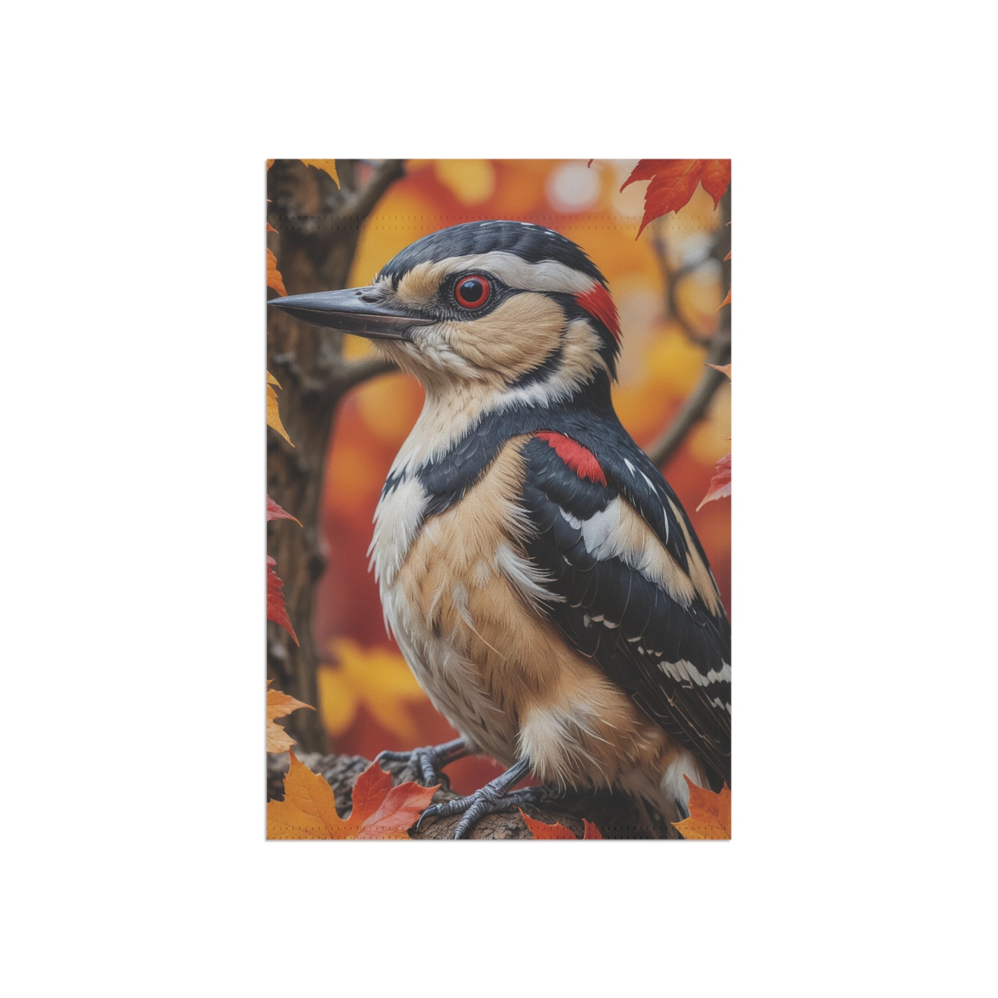 Celebrate the beauty of autumn wildlife with this stunning Autumn Woodpecker Garden Flag. Featuring a beautifully detailed woodpecker perched among vibrant fall leaves, this flag adds a rustic, nature-inspired charm to your yard or garden. Perfect for bird lovers and fall décor enthusiasts alike, the vivid colors and realistic design make it an eye-catching addition to your seasonal decorations. Crafted from weather-resistant fabric for long-lasting outdoor display.