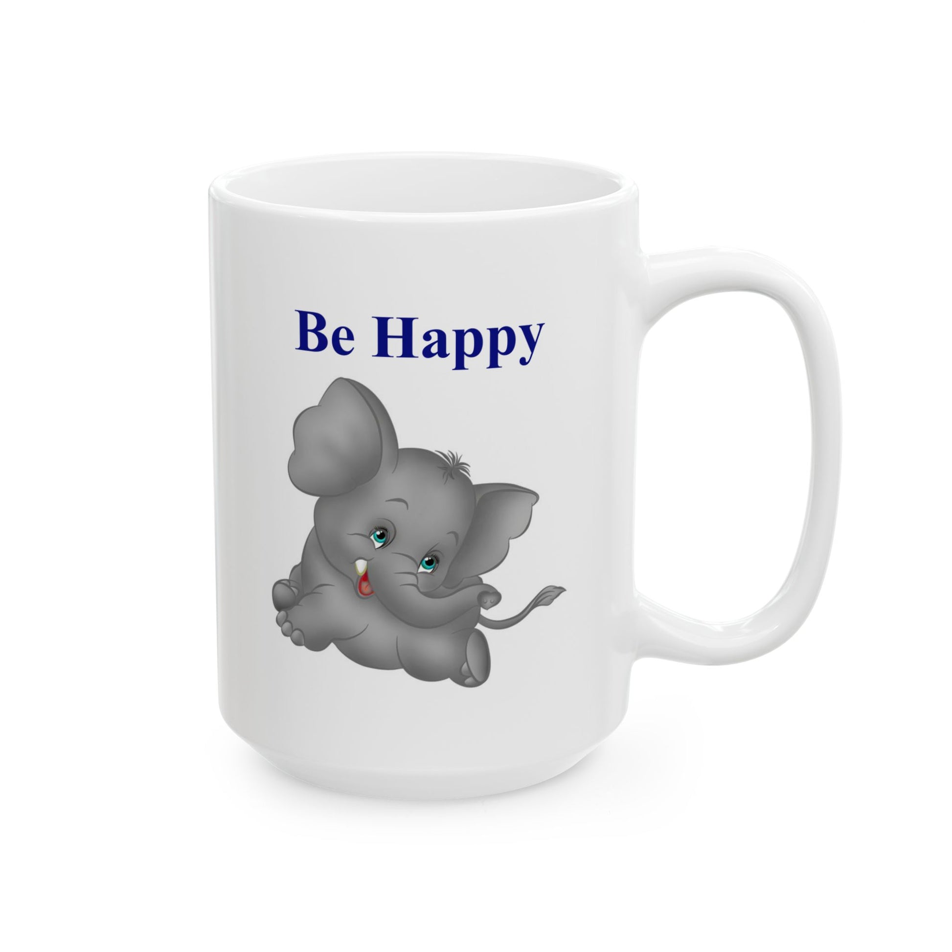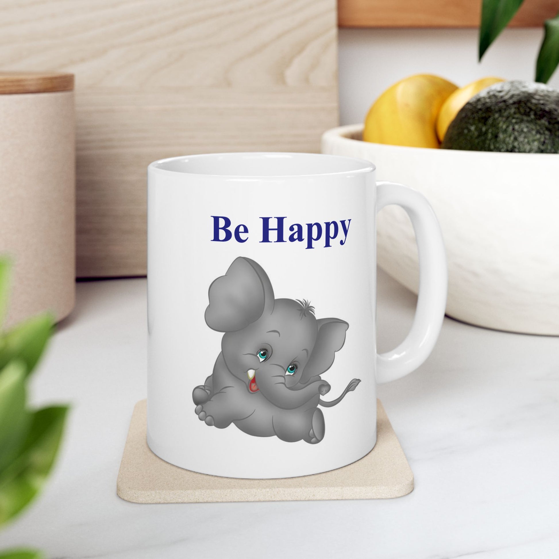 "Be Happy" Cute Baby Elephant Coffee Mug