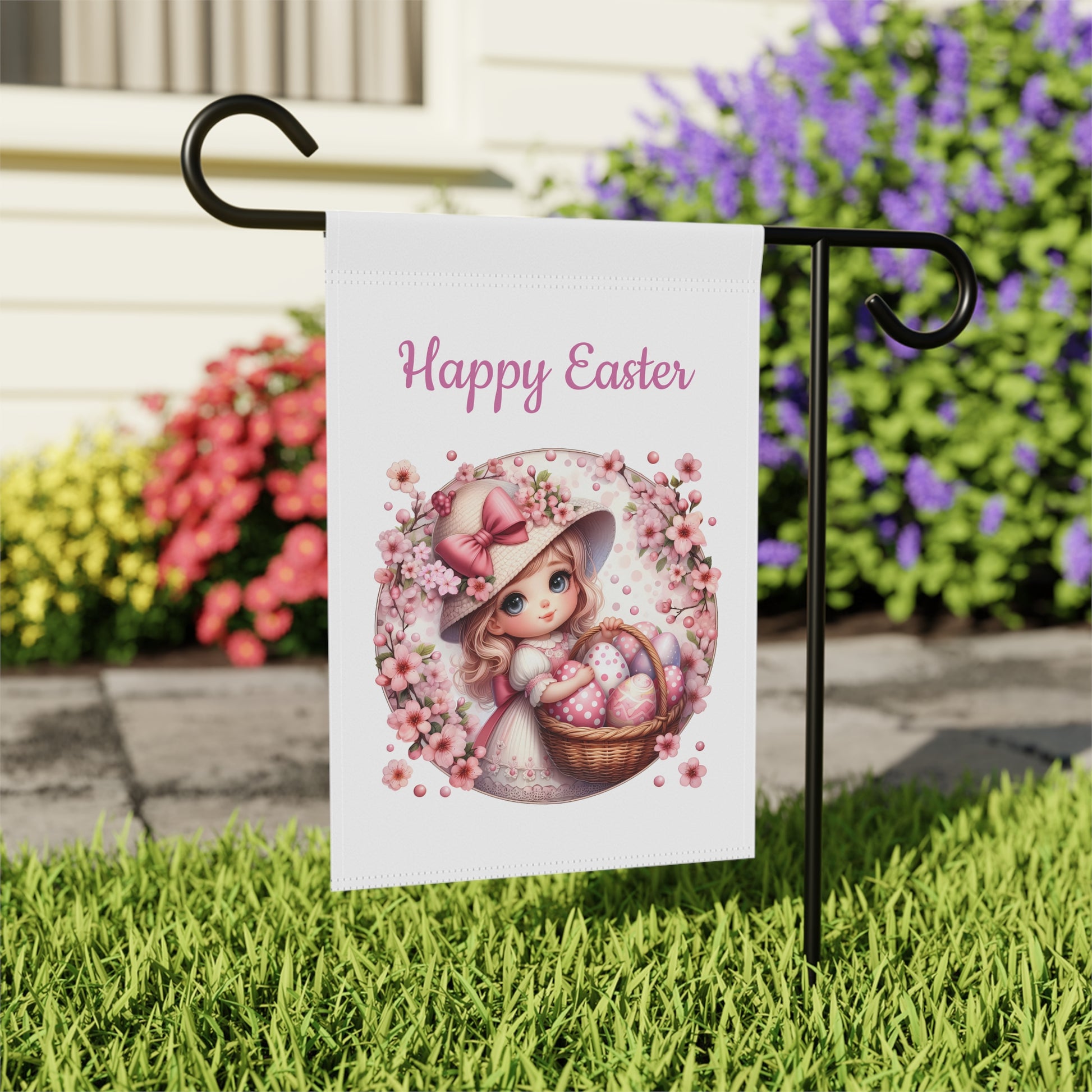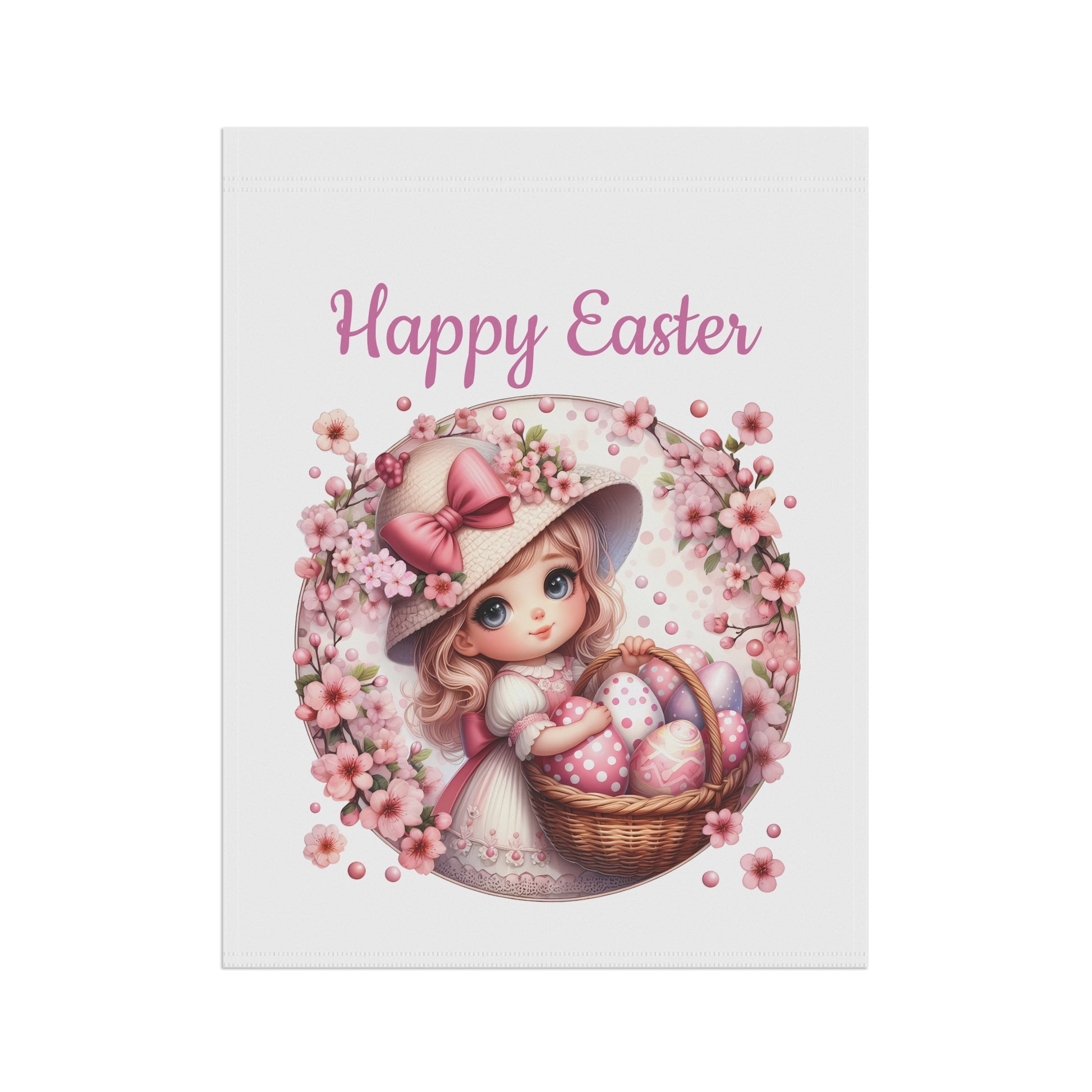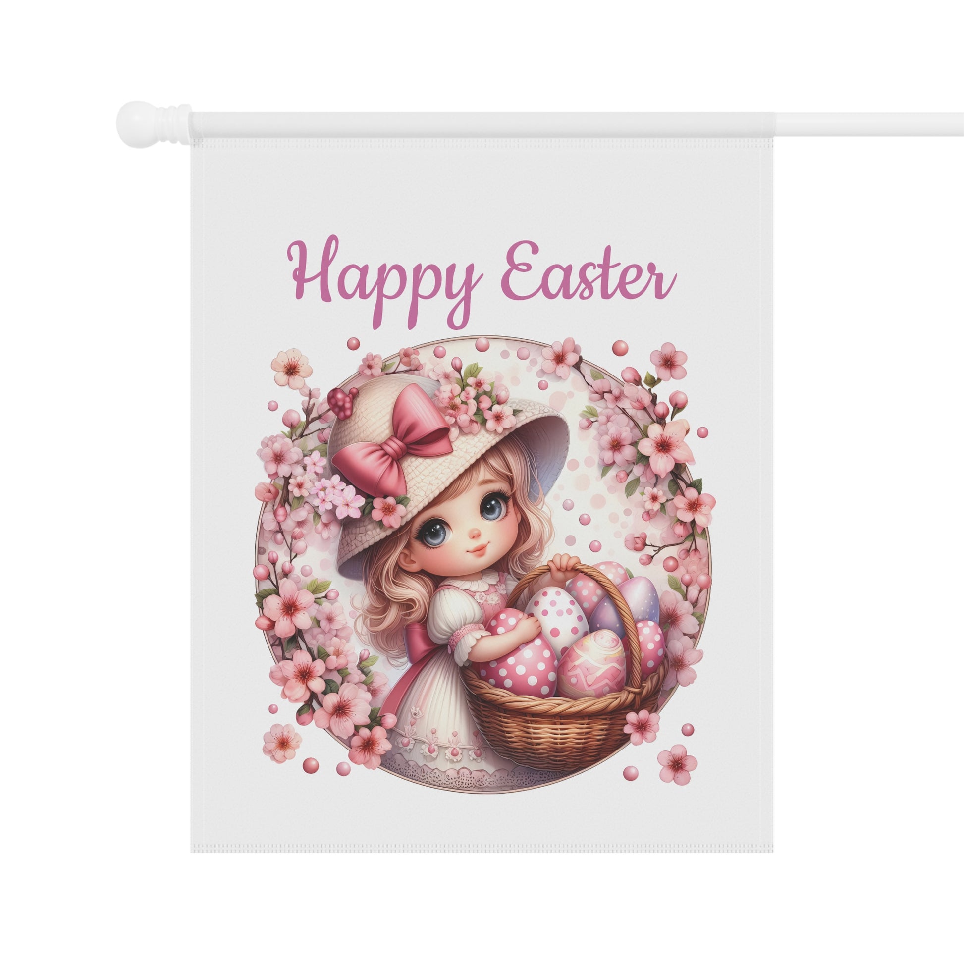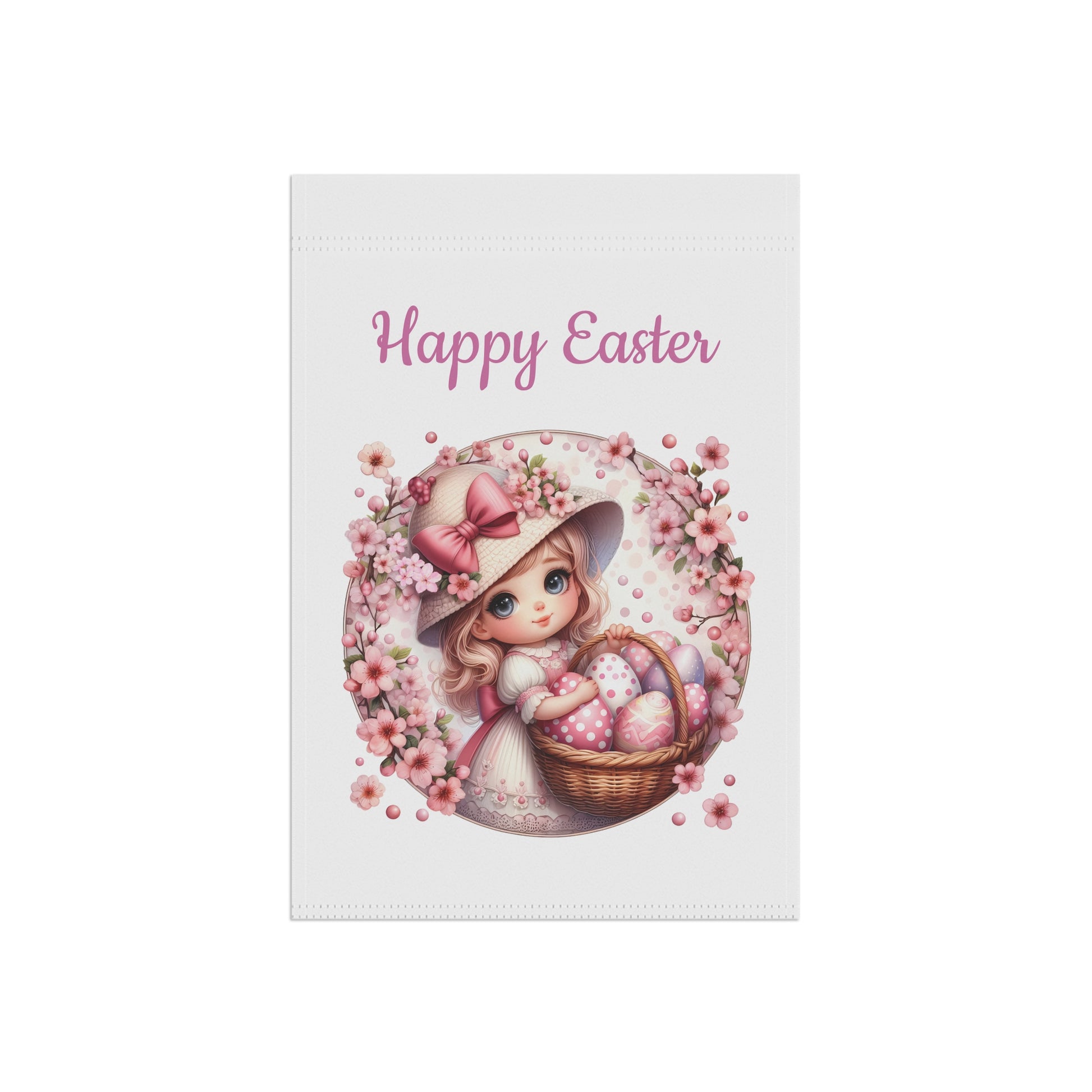 Welcome spring and the Easter season with our enchanting "Happy Easter" garden flag. This beautiful flag features a delightful illustration of a sweet little girl in a sun hat, holding a basket filled with decorated Easter eggs, all framed by a lovely wreath of cherry blossoms. It's the perfect way to add a touch of whimsy and charm to your yard, garden, or entryway. Made from high-quality, durable, and weather-resistant material, this flag is built to withstand the elements, ensuring its vibrant colors and beautiful design stay fresh and vibrant all season long.