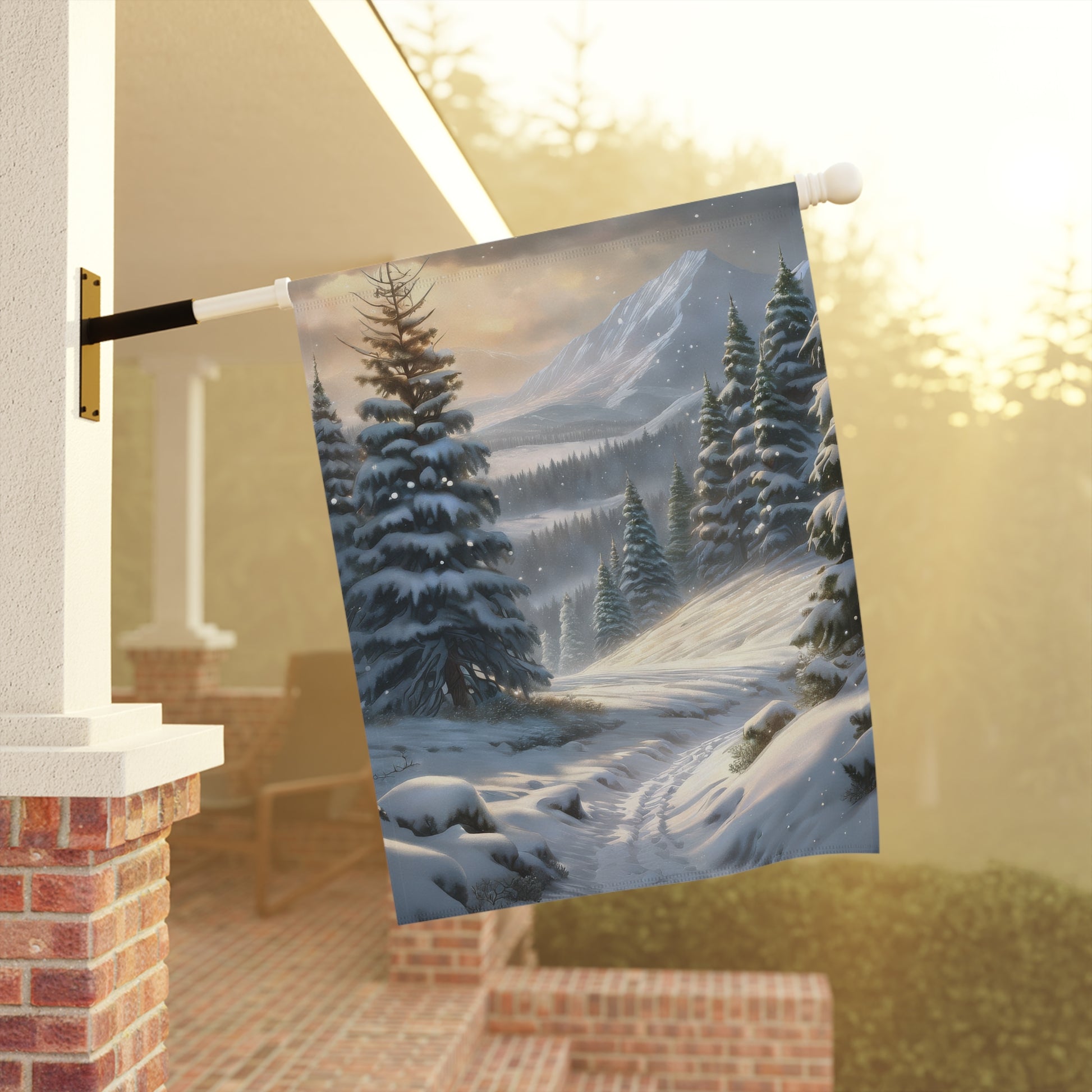 Transform your home into a magical winter wonderland with our holiday flag. This flag showcases a charming snow-covered landscape that will make you feel like you're in a seasonal fairytale. Hang it outside your door or in your garden to share the holiday spirit with all who pass by.