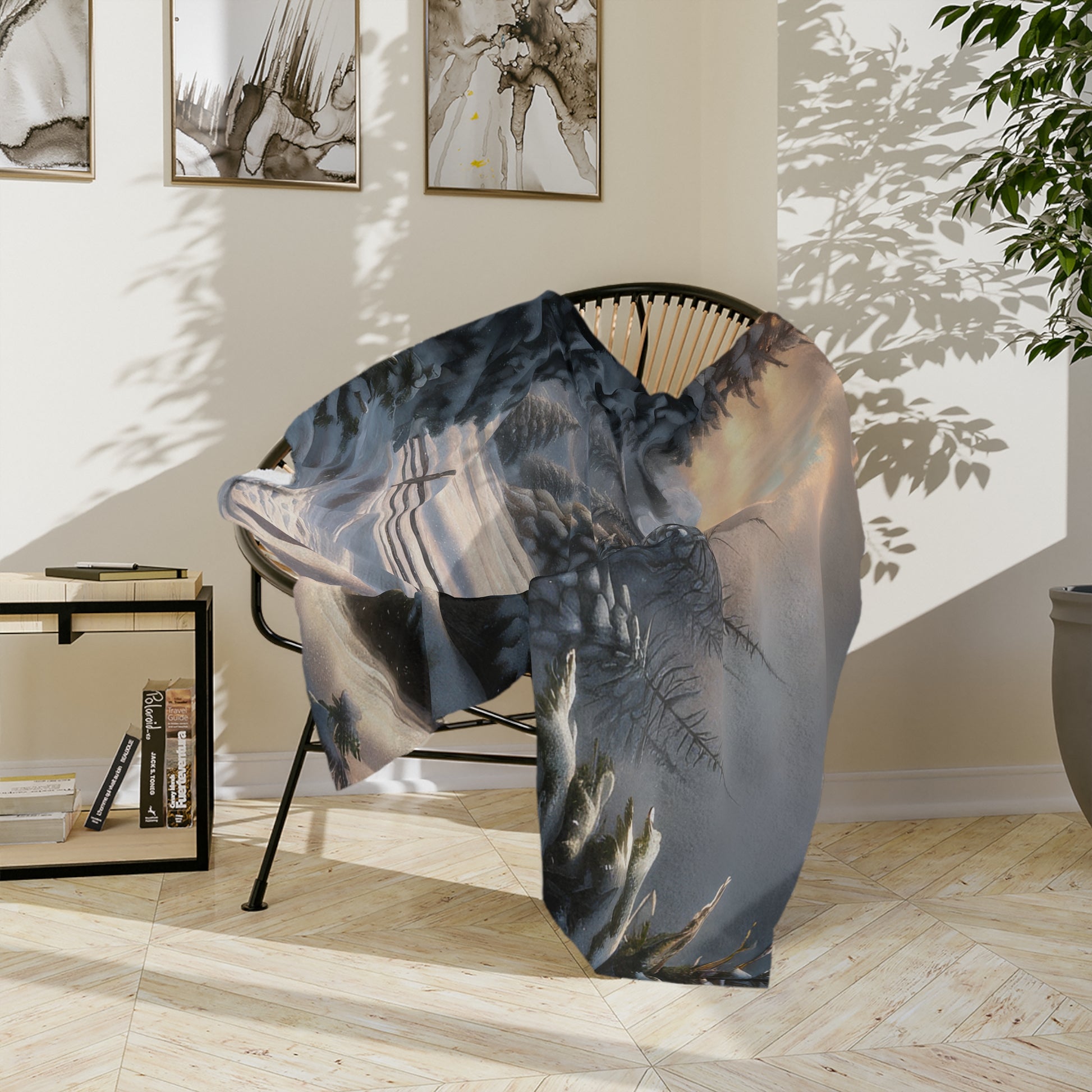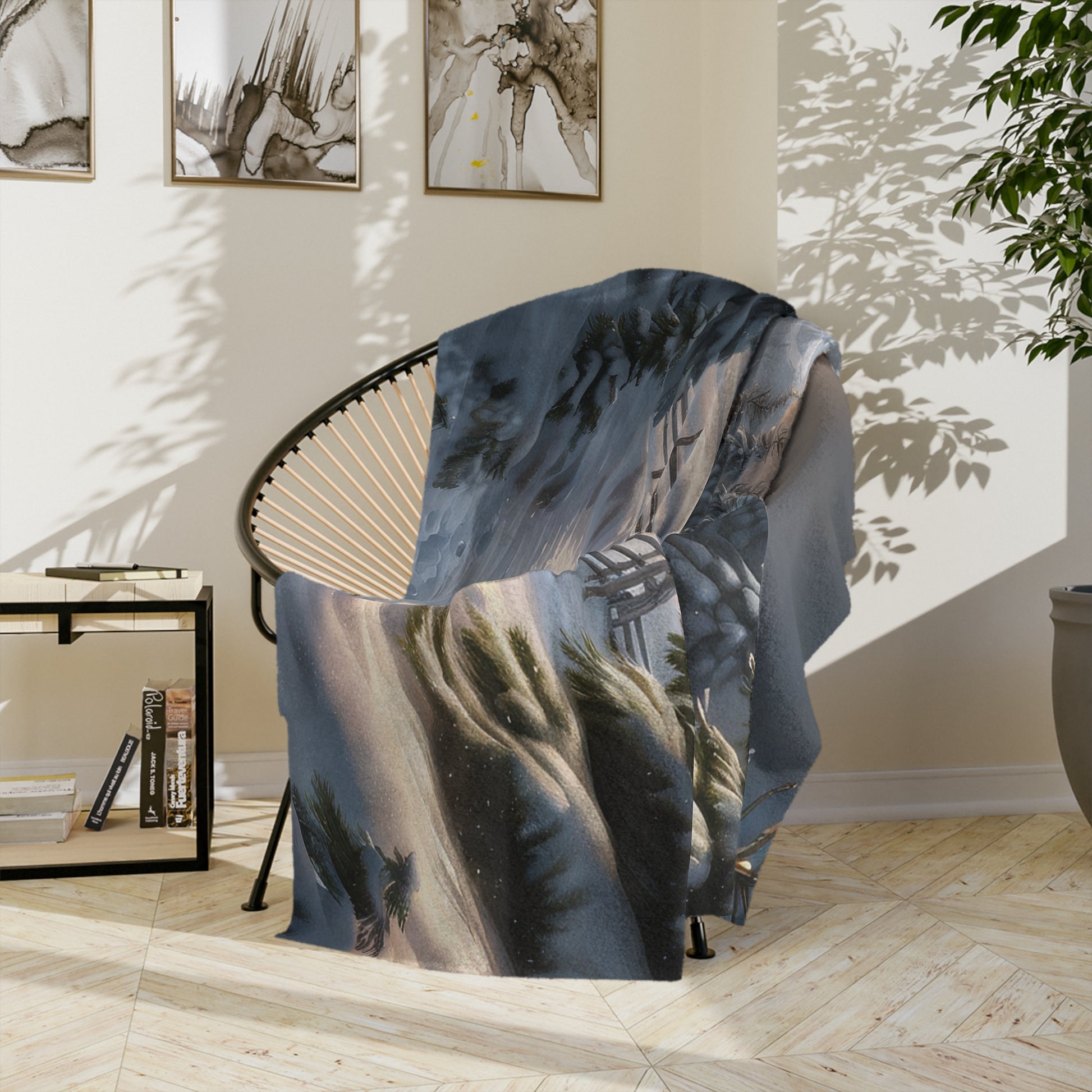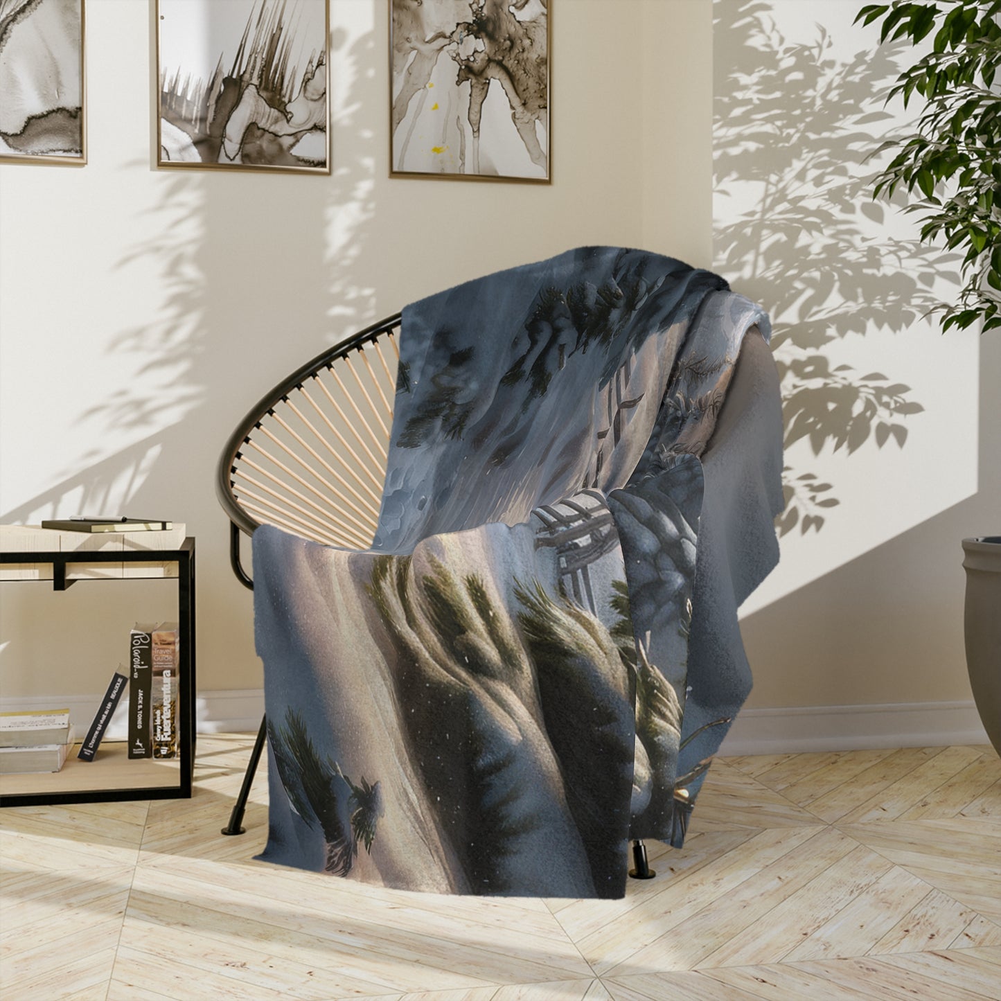 Christmas Cabin in the Woods Velveteen Plush Blanket
