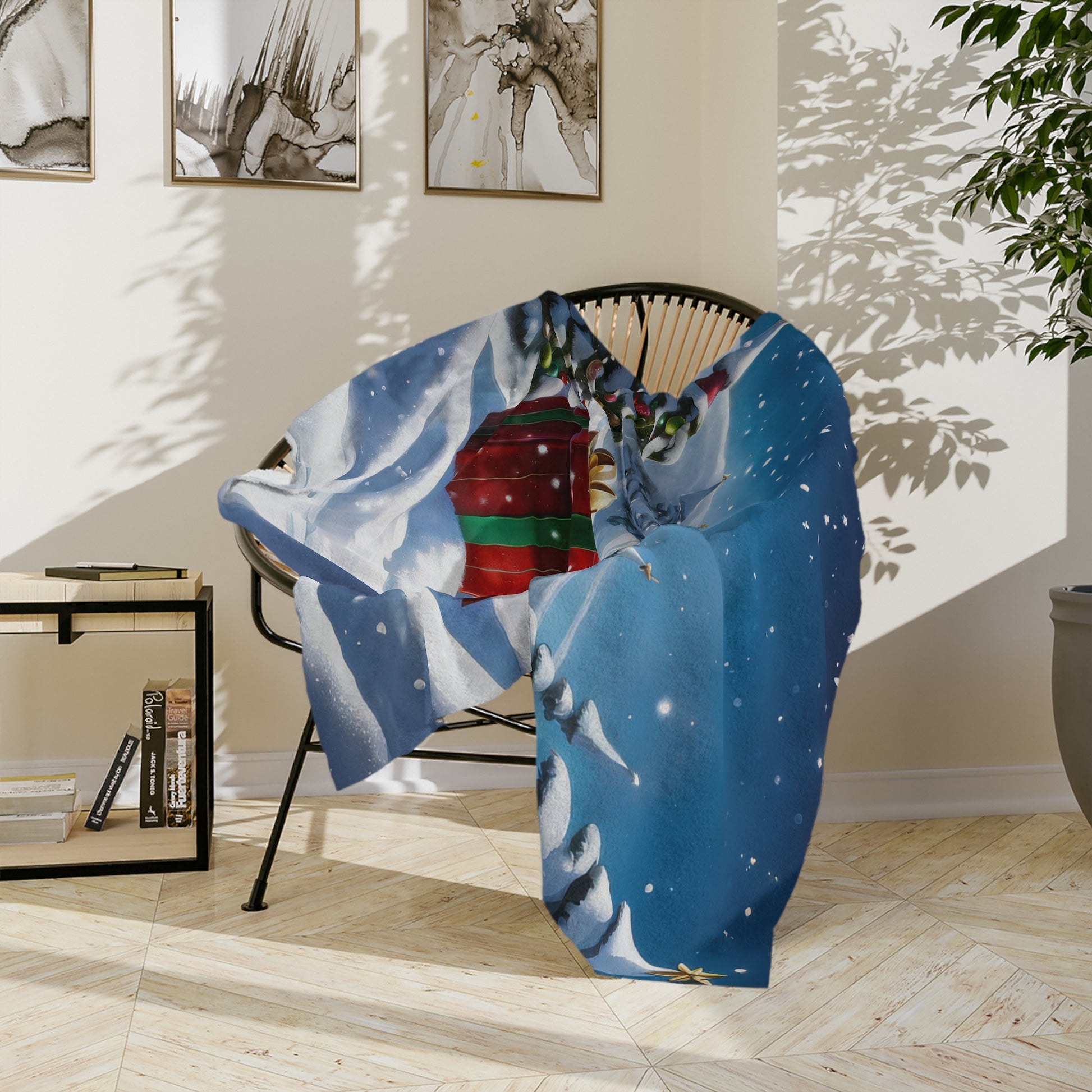 Bring the magic of Christmas morning to your home with this stunning Christmas Presents in Snow velveteen plush blanket. Featuring a peaceful snowy landscape with decorated trees and a pile of wrapped gifts topped with golden bows, this soft and cozy throw adds a cheerful touch to your holiday décor. This blanket is perfect for cuddling on cold winter nights or decorating your living room with festive charm. Ideal for gift-givers, families, or anyone who loves classic holiday scenes.