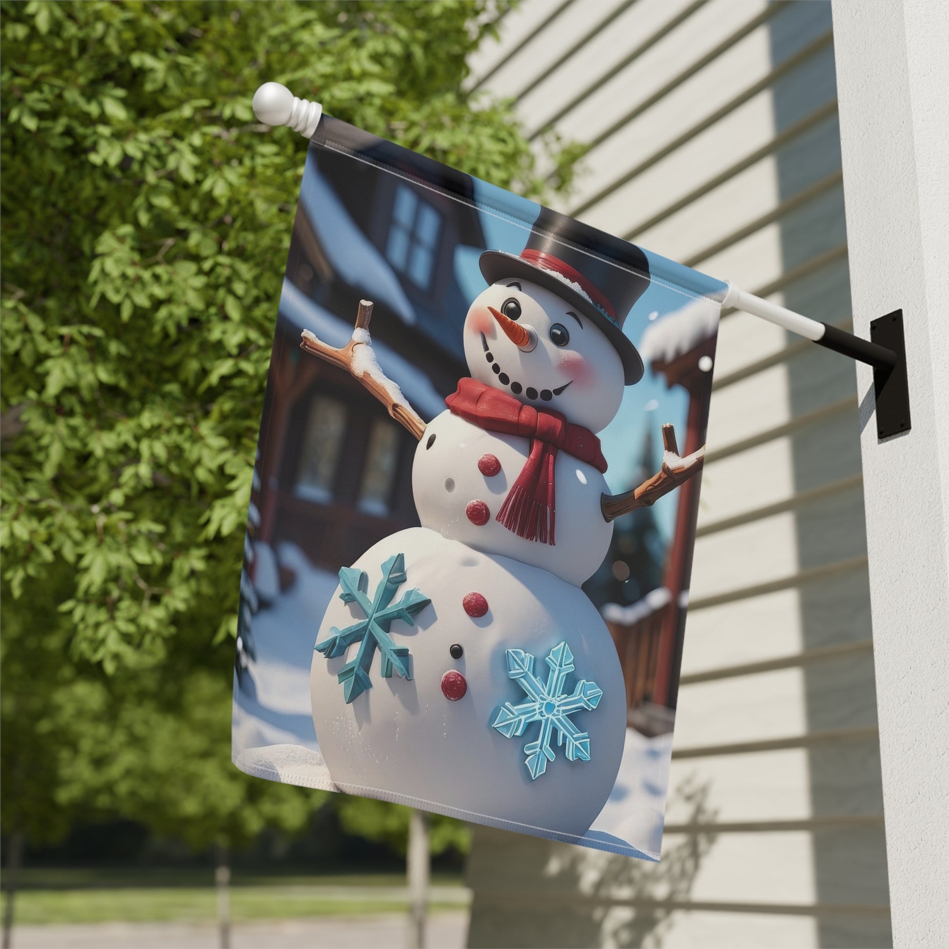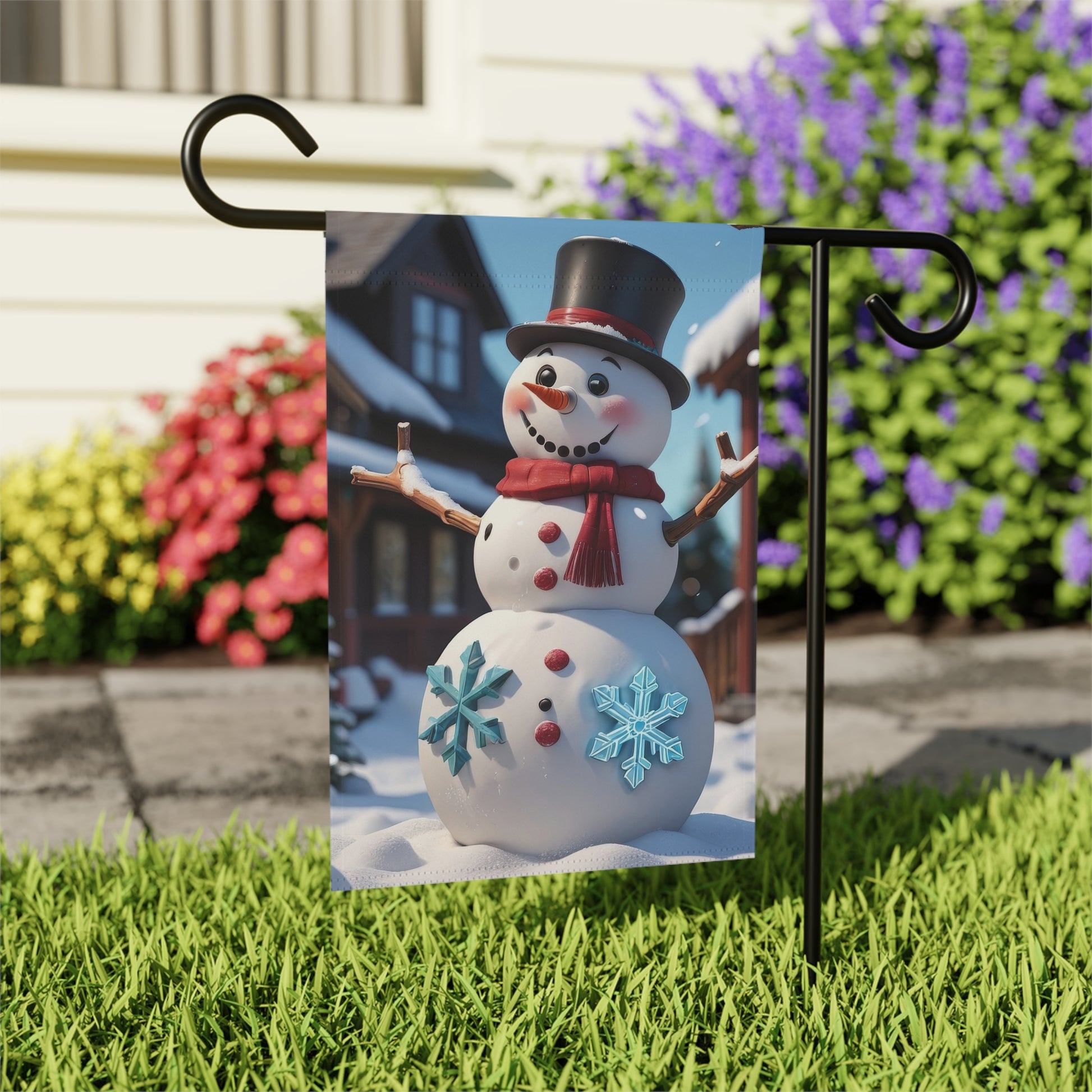 Welcome guests with the timeless charm of our Classic Snowman Garden Flag! This delightful flag features a friendly snowman wearing a traditional black top hat and a festive red scarf, adorned with cheerful blue snowflakes. Set against a backdrop of a cozy winter village scene, this flag captures the quintessential spirit of the holiday season. Made from durable, weather-resistant material, it's designed to withstand the elements and bring festive cheer to your home all season long. Perfect for front yards, patios, and entryways, this flag is a wonderful addition to your winter and holiday decorations.