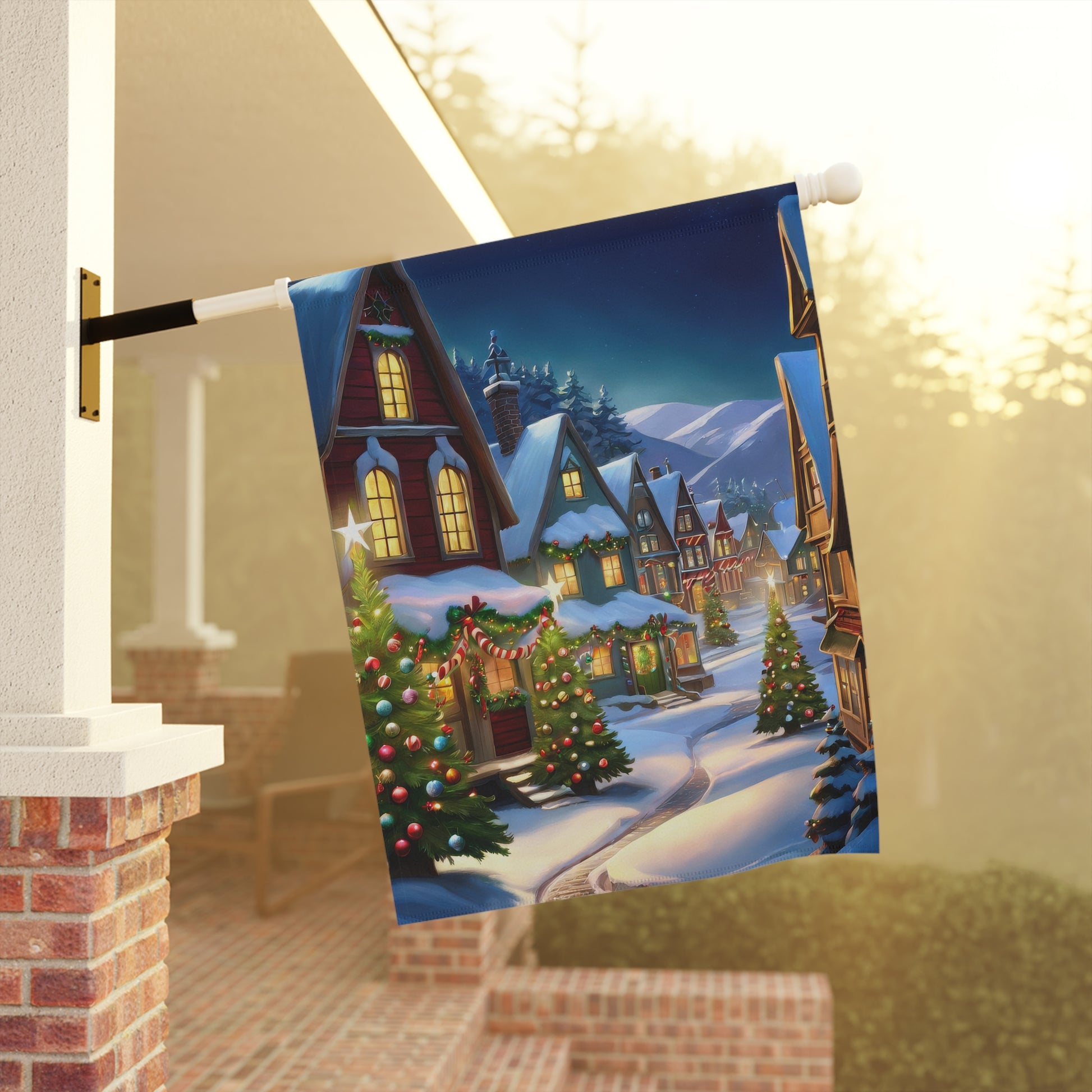 Get into the holiday spirit with our adorable holiday flag showcasing a picturesque holiday town. The colorful design and durable material make it the perfect addition to your holiday decor, greeting guests with warm and welcoming vibes all season long.