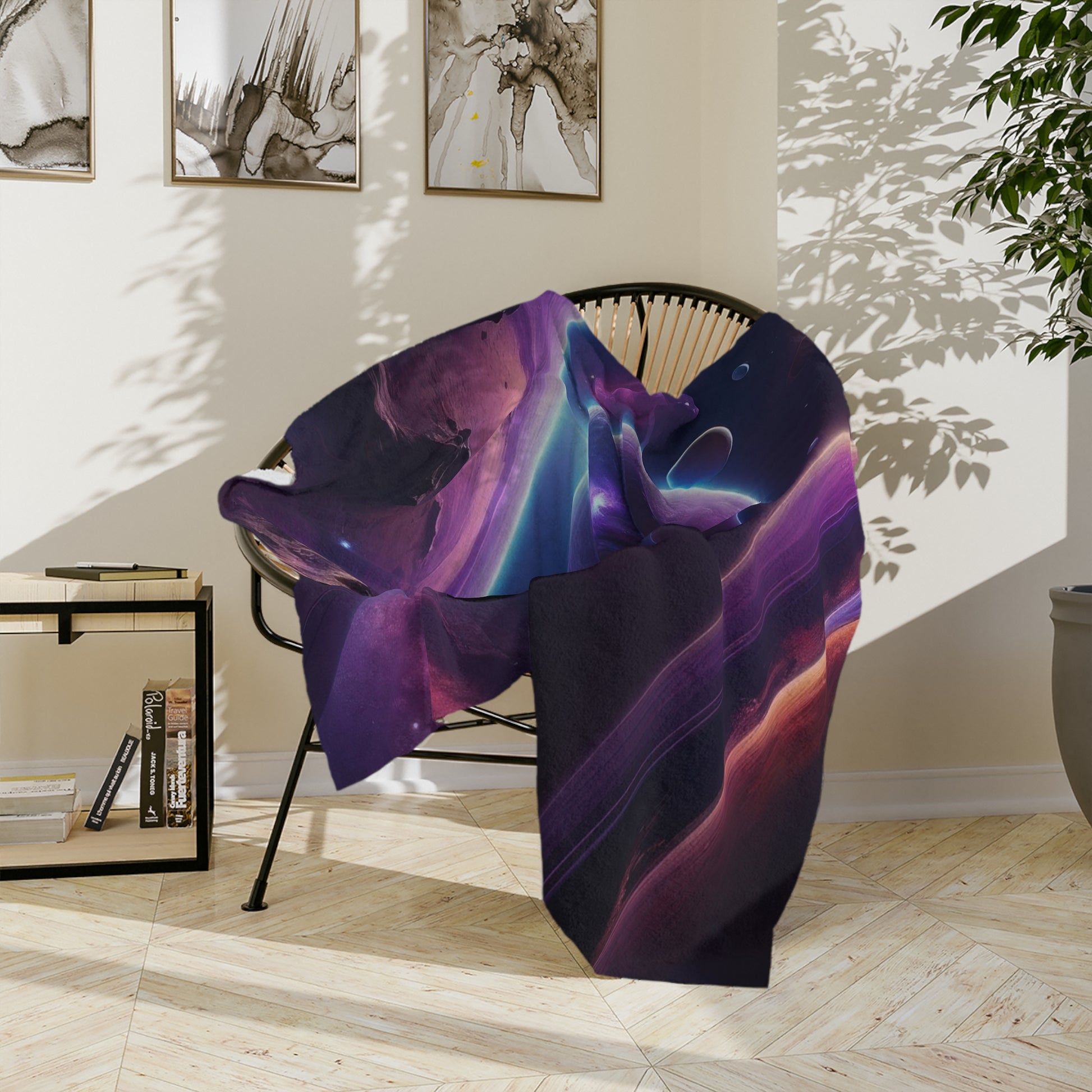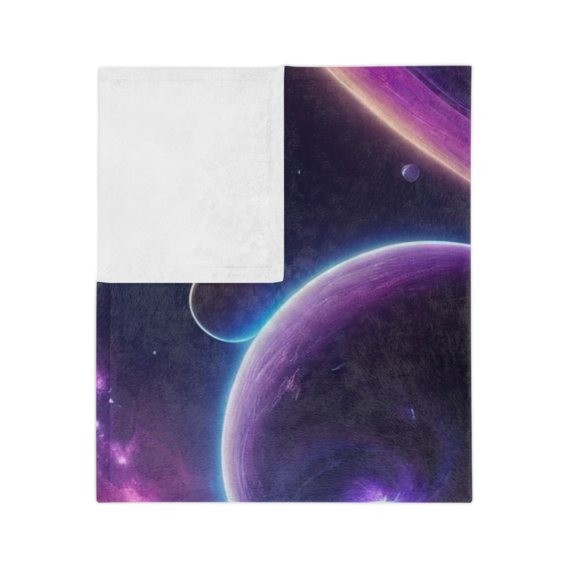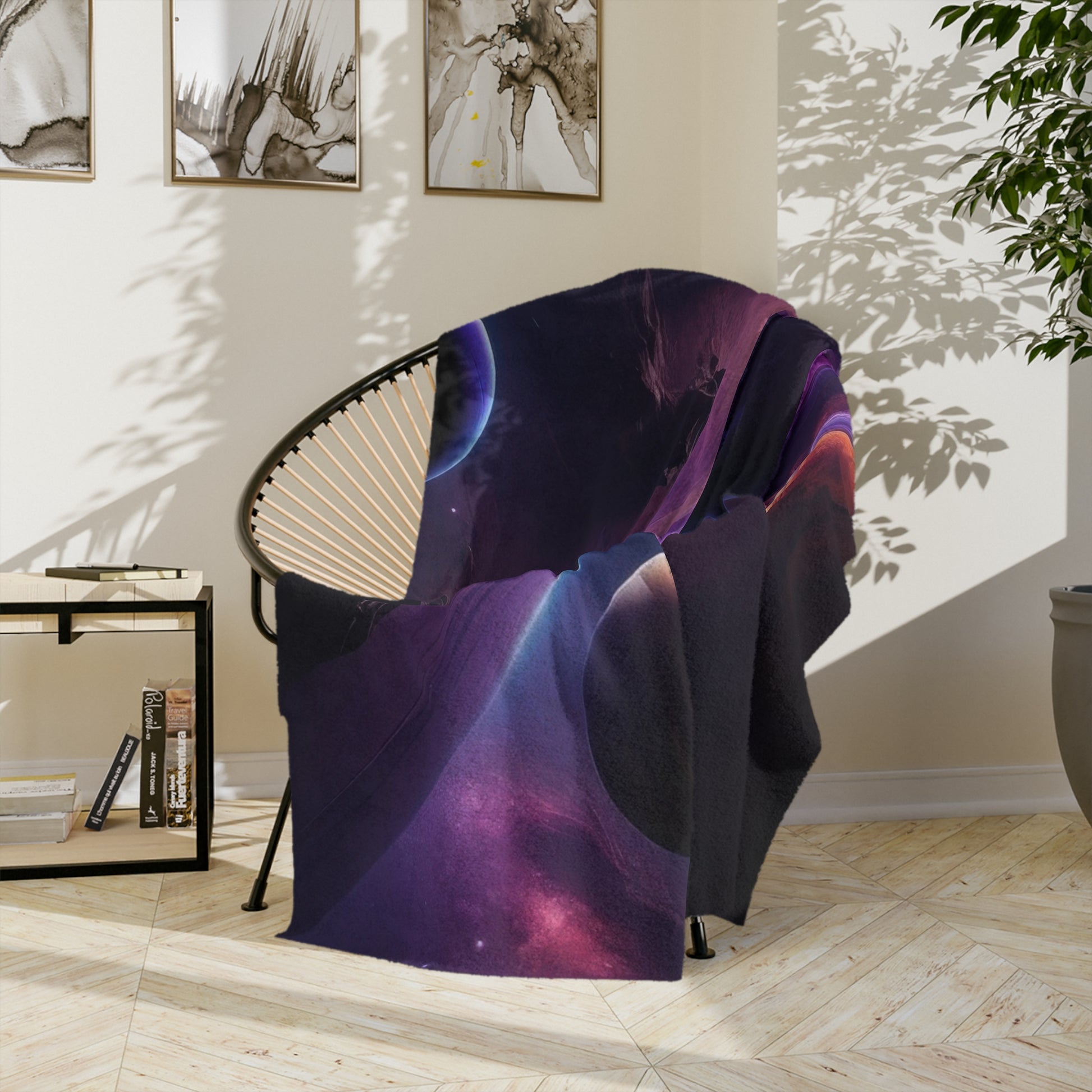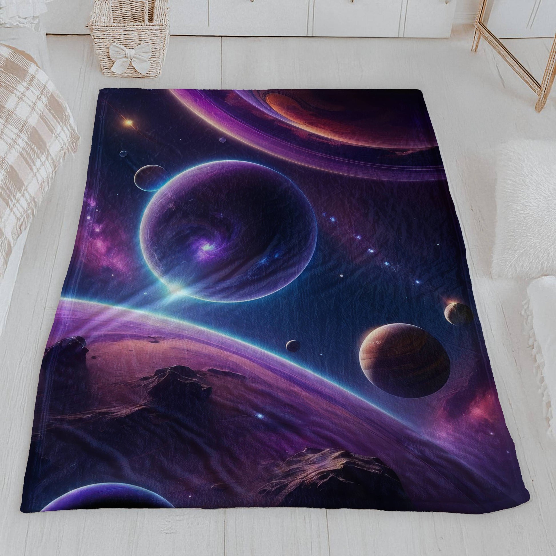 Journey to the farthest reaches of the universe with our Cosmic Expanse Velveteen Blanket. This isn't just a blanket; it's a breathtaking portal to a world of celestial beauty. Crafted from incredibly soft, lightweight velveteen, it offers the perfect balance of comfort and style. The stunning, high-definition print features a vibrant and mysterious galaxy filled with glowing planets, brilliant rings, and distant nebulae in striking shades of purple and blue. This awe-inspiring design brings a sense of wonder and magic to any room. Whether you use it as a cozy throw on your sofa, a unique accent on your bed, or even a piece of wall art, this blanket is a versatile and beautiful home accessory. The velvety-smooth texture feels gentle against your skin, and its lightweight nature makes it easy to enjoy year-round. It's the perfect gift for stargazers, science enthusiasts, or anyone who loves the mystique of space.
