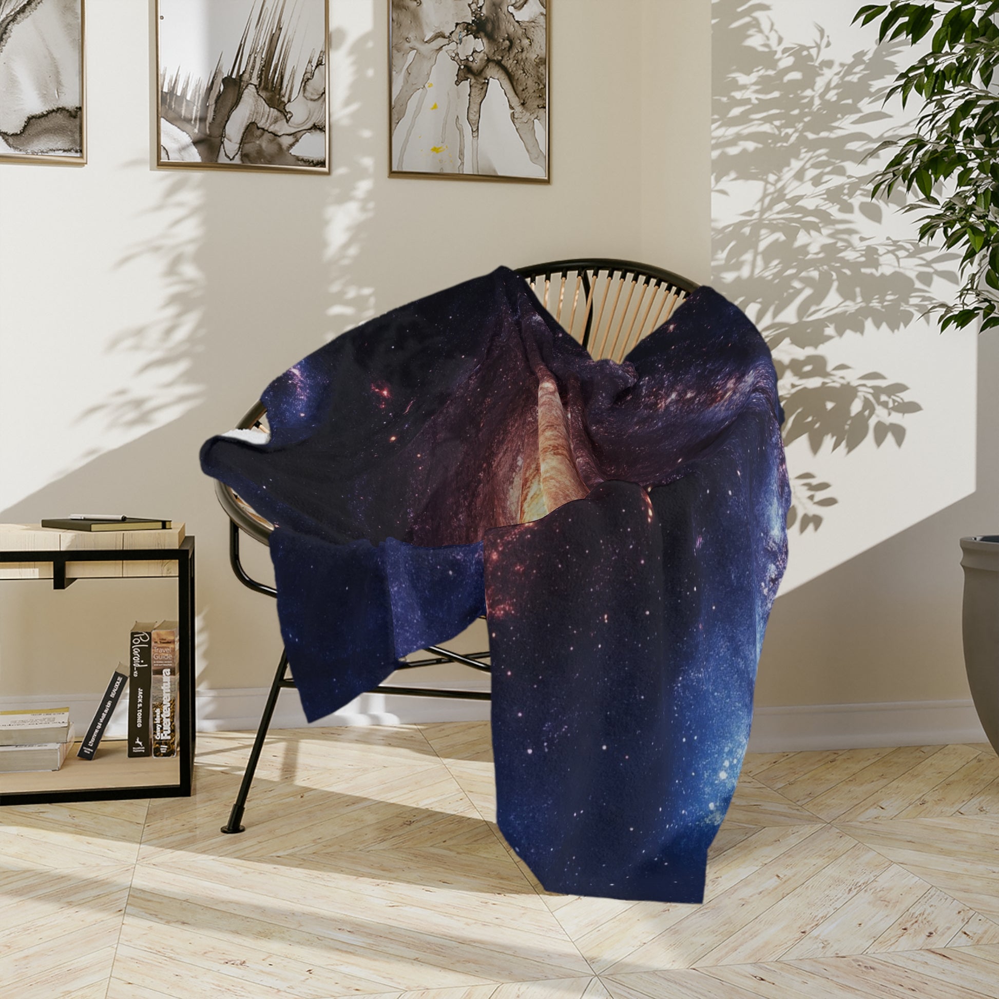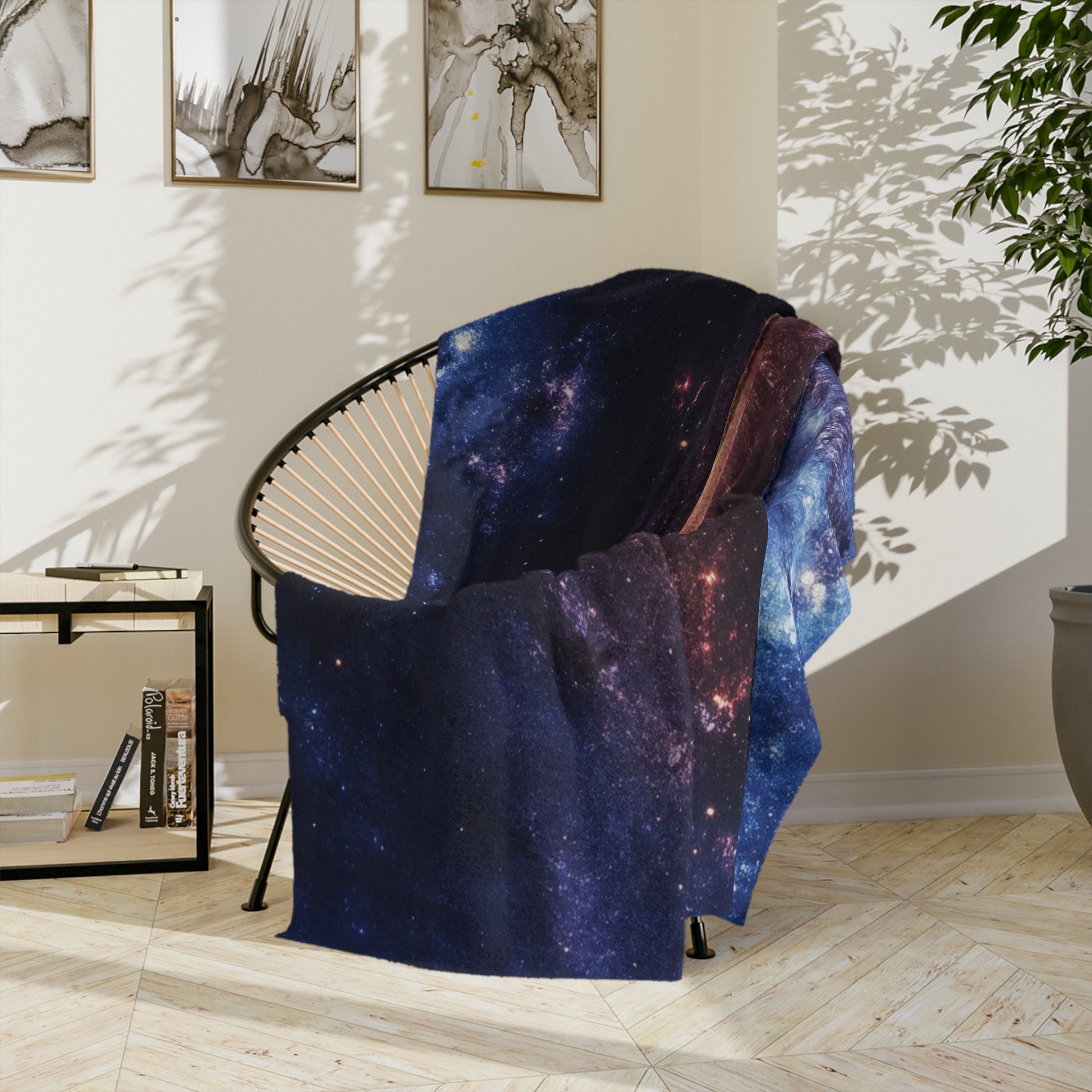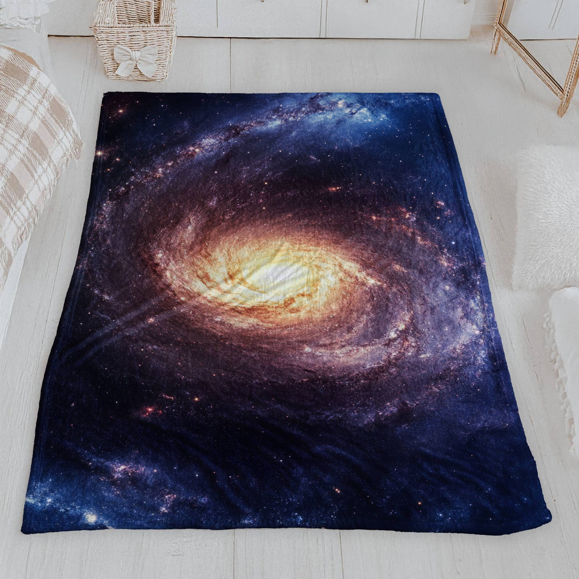 Escape to the stars with our incredibly soft Velveteen Plush Throw Blanket, featuring a mesmerizing, high-definition print of a spiral galaxy. This blanket brings the breathtaking beauty of the cosmos right into your home, with its vibrant core and swirling arms of deep blues and majestic purples. It’s an ideal gift for anyone fascinated by the night sky, astronomy, or simply beautiful and unique home decor.