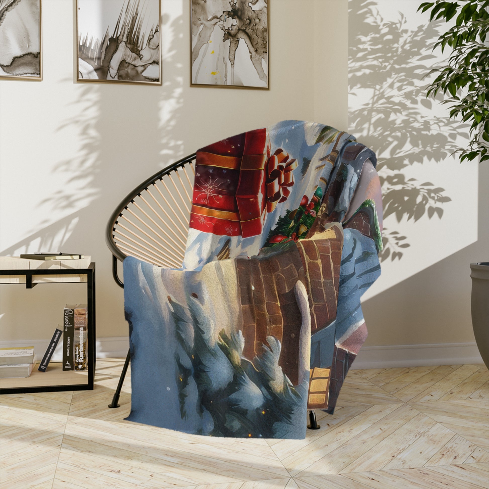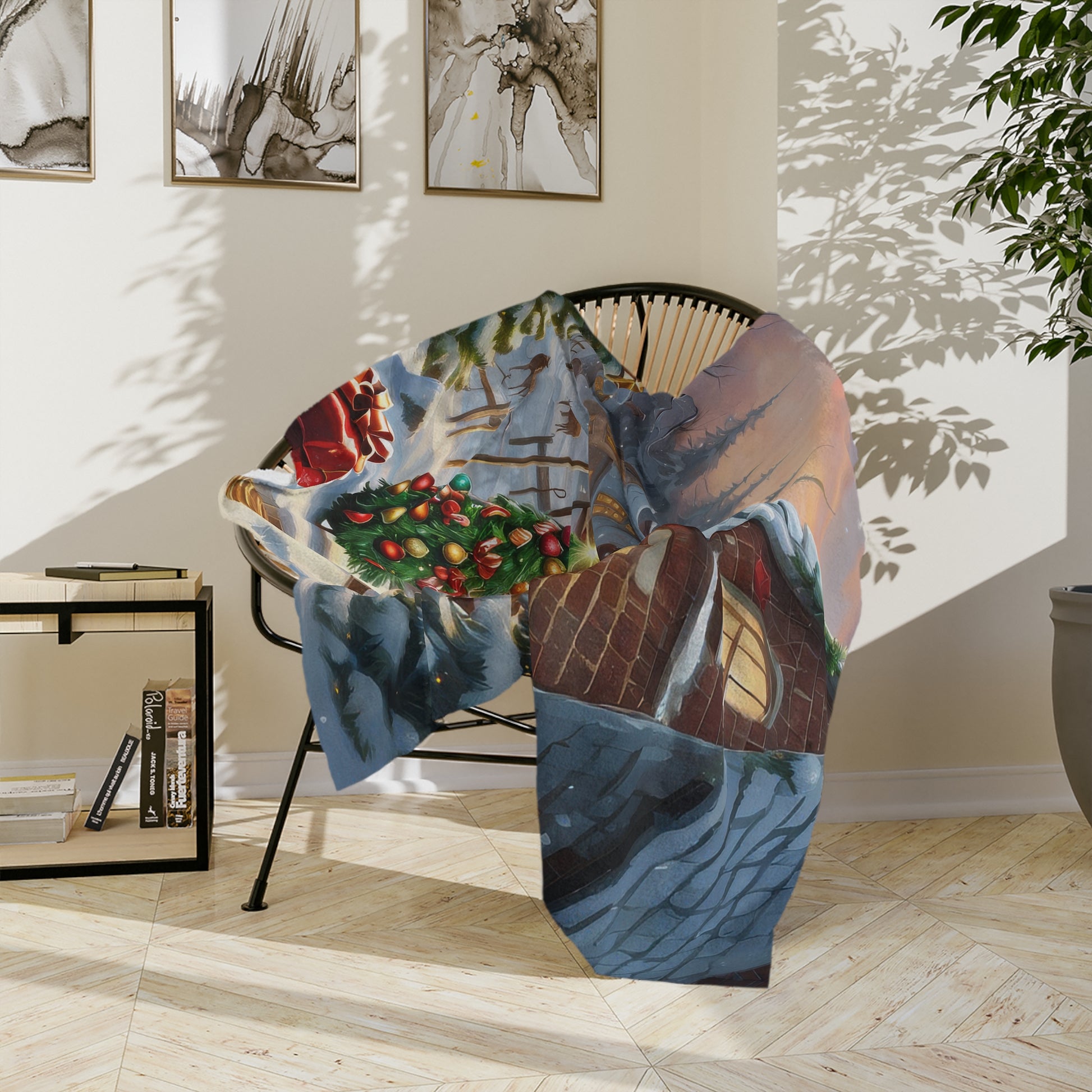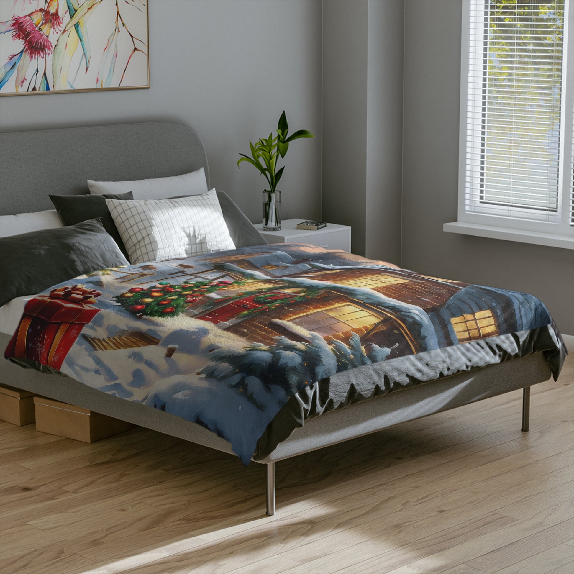 Bring the warmth of a festive winter evening into your home with our Cozy Christmas House Velveteen Plush Blanket. Featuring a glowing holiday cottage surrounded by snow-covered trees, twinkling lights, and decorated Christmas trees, this blanket adds a nostalgic and heartwarming touch to your seasonal décor. This blanket is perfect for cozying up by the fire, adding to your holiday bedding or couch setup, or giving as a thoughtful Christmas gift.