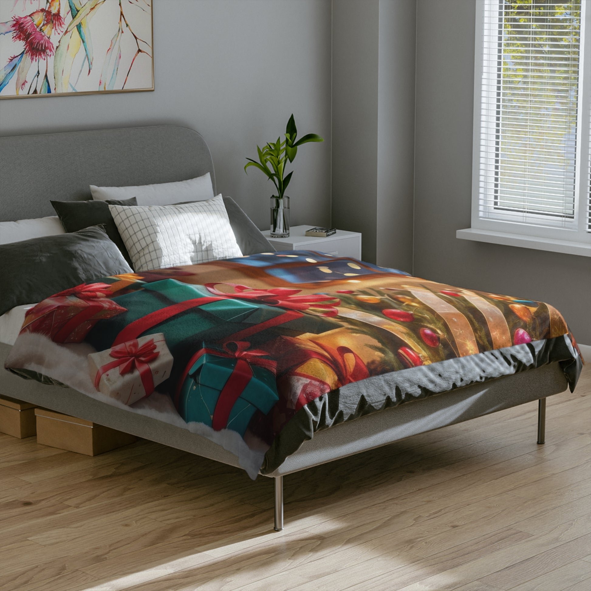 Wrap yourself in the magic of the holidays with our Christmas Tree & Gift Boxes Velveteen Plush Blanket! This heartwarming design showcases a beautifully decorated Christmas tree surrounded by festive presents, glowing lights, and a cozy window backdrop. Perfect for holiday snuggles, seasonal décor, or thoughtful gifts, this soft blanket adds warmth and joy to any space.