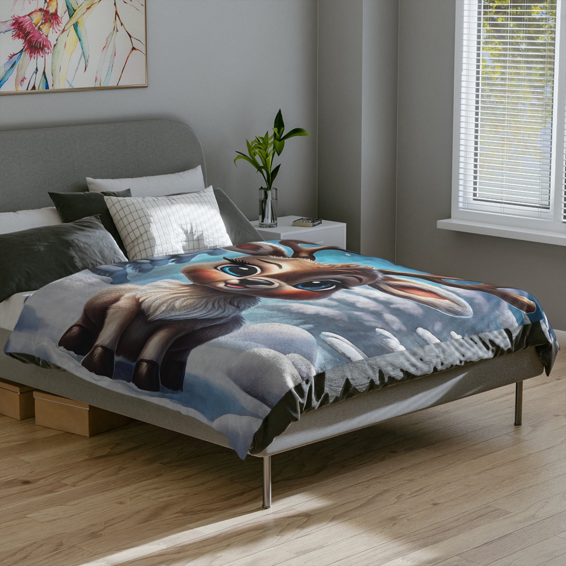 Crafted from premium velveteen, this blanket offers an unbelievably soft and smooth touch that you'll love to snuggle into. Its lightweight yet wonderfully warm design makes it ideal for curling up on the couch, adding a sweet accent to a child's bed, or giving as the perfect thoughtful gift to anyone who adores cute animals and the spirit of Christmas. The vibrant, detailed print beautifully captures the innocent charm of this baby reindeer, making it a cherished item for years to come.