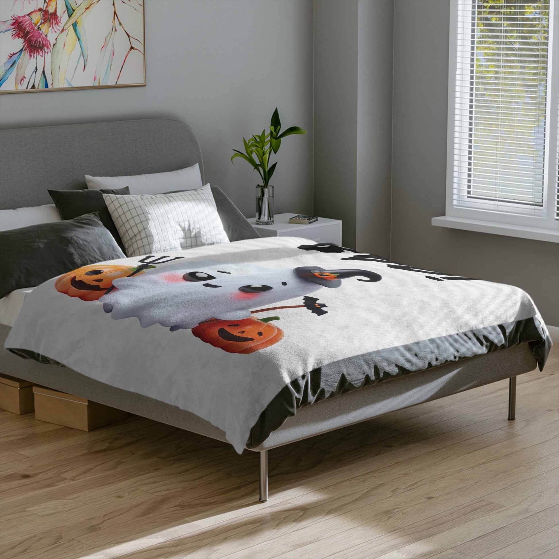 Cute Boo! Ghost Halloween Plush Blanket -