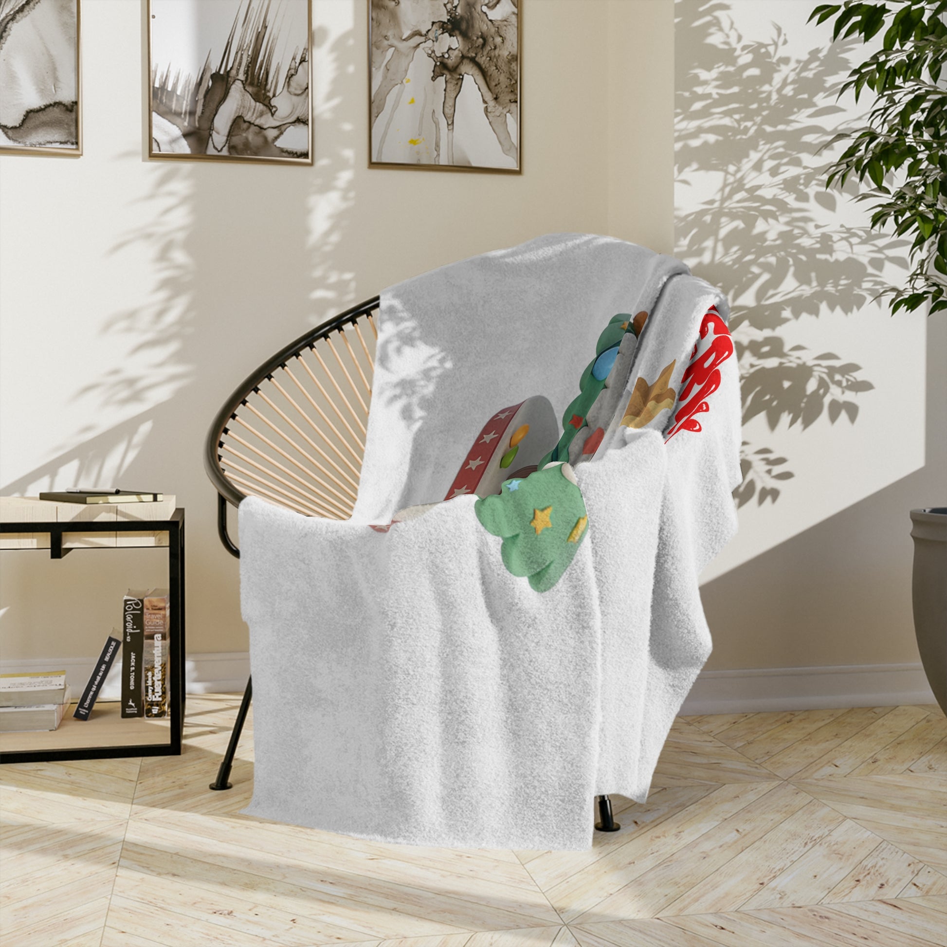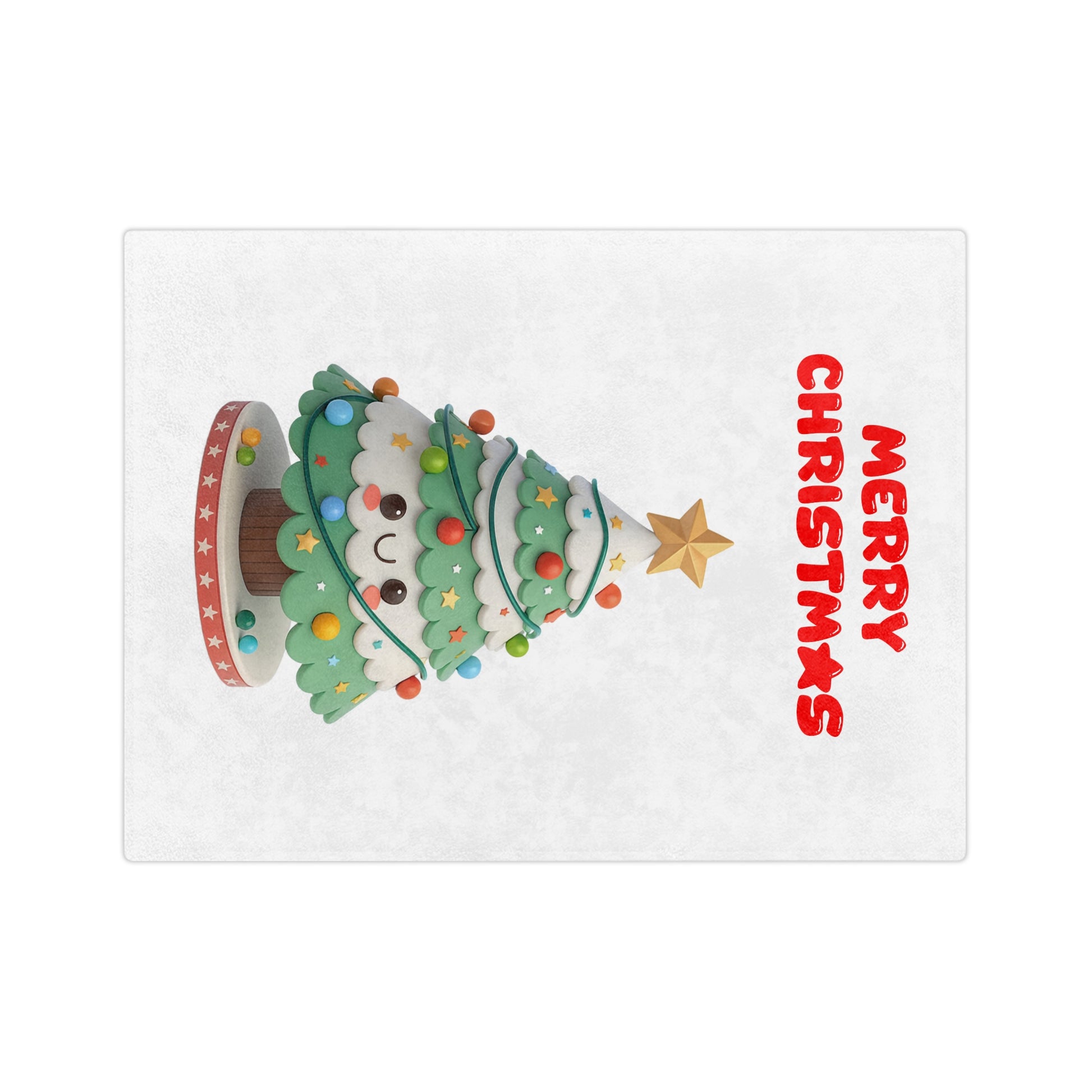 Get cozy and festive this holiday season with our adorable velveteen blanket. This super-soft and lightweight throw features a cute, smiling cartoon Christmas tree with googly eyes, decorated with colorful ornaments and a star, and the words "Merry Christmas" in a cheerful font. Perfect for snuggling up on the couch to watch a holiday movie or as a unique decorative accent. This blanket adds a playful touch to your Christmas decor and is a great gift for anyone who loves whimsical holiday items.