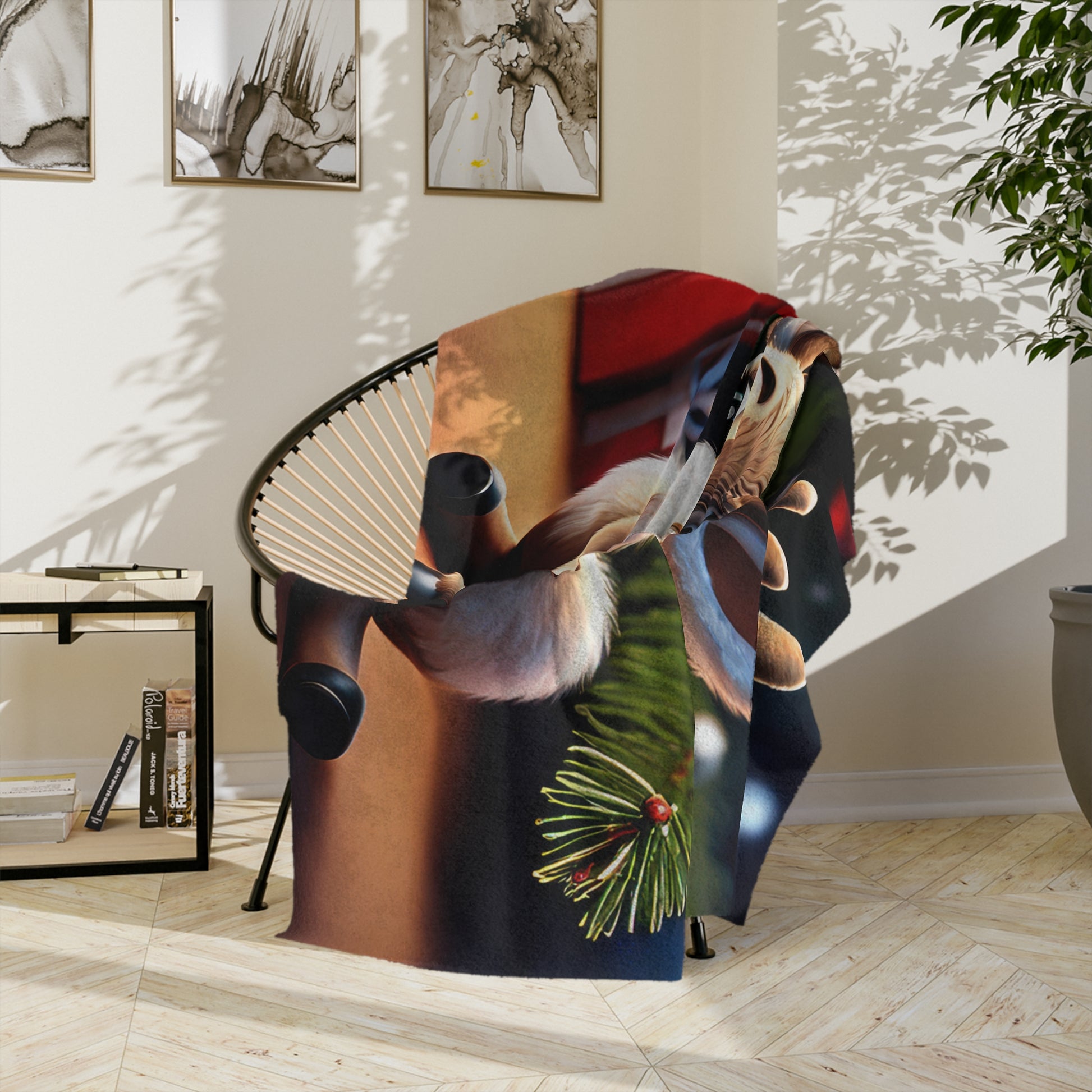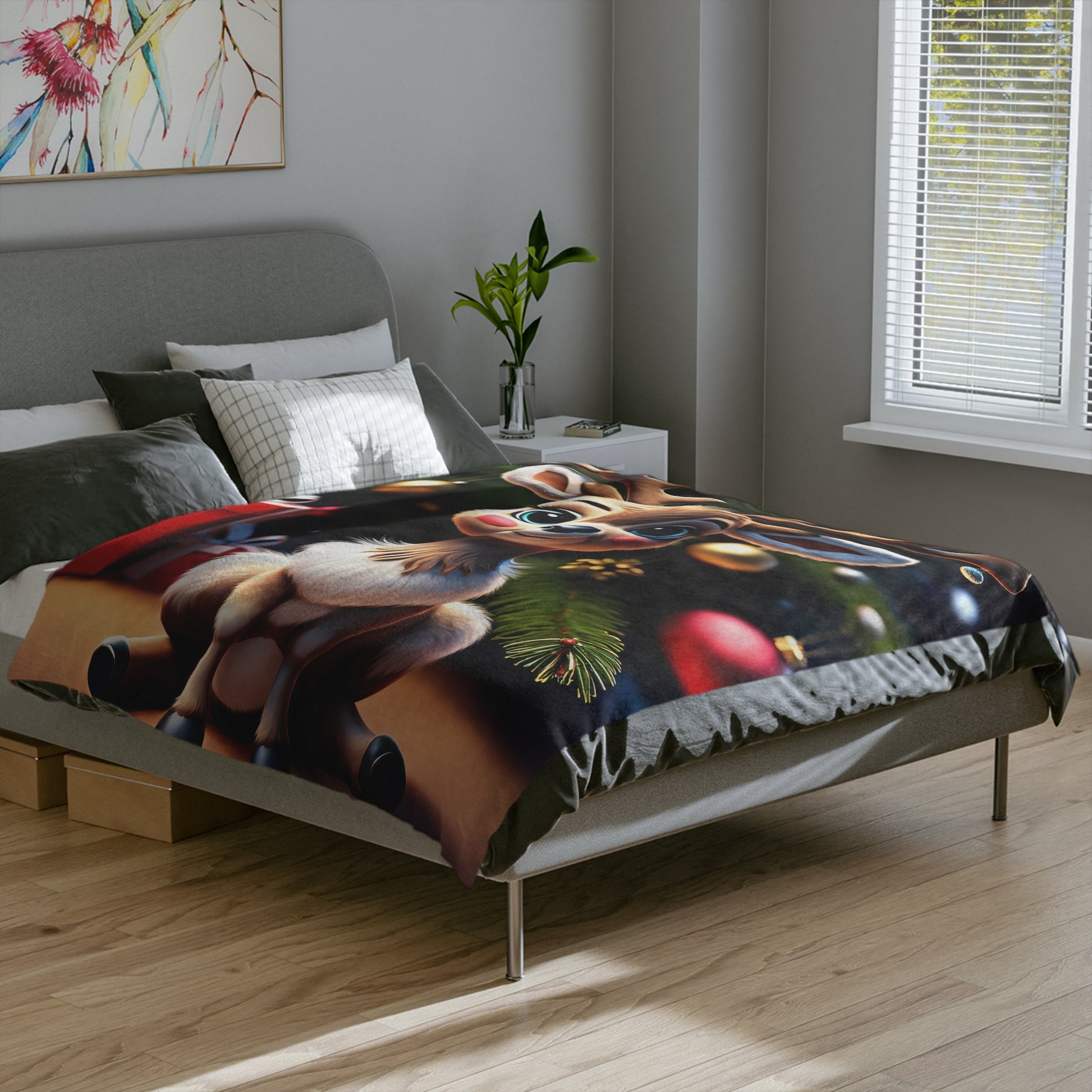 Snuggle up with the magic of Christmas and this Adorable Reindeer Plush Blanket! Featuring a wide-eyed, blushing baby reindeer sitting happily in front of a beautifully decorated Christmas tree with presents all around, this cozy velveteen throw brings warmth and joy to your holiday décor. Perfect for kids, families, or anyone who loves charming festive designs.