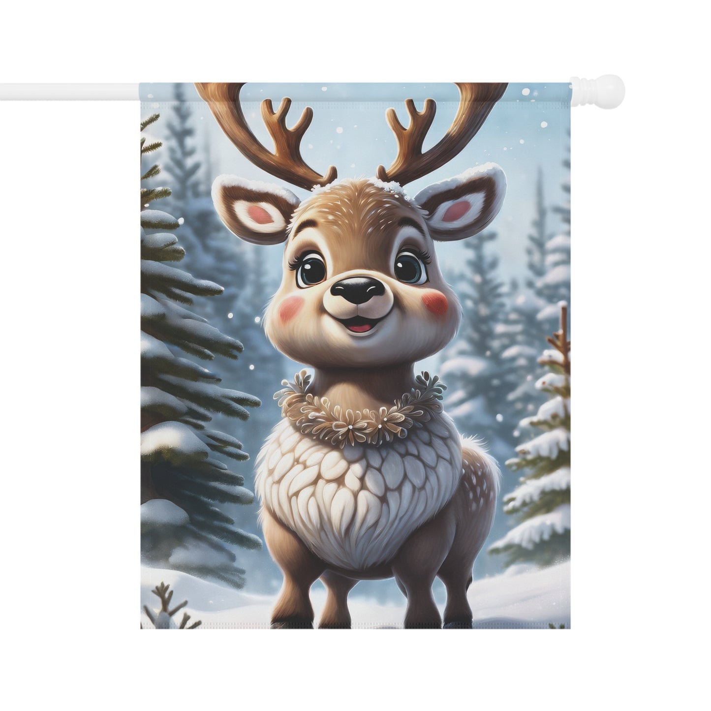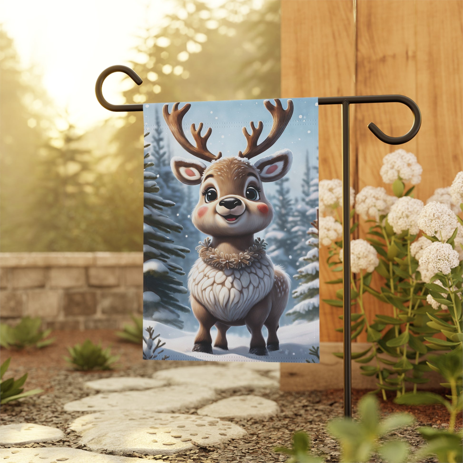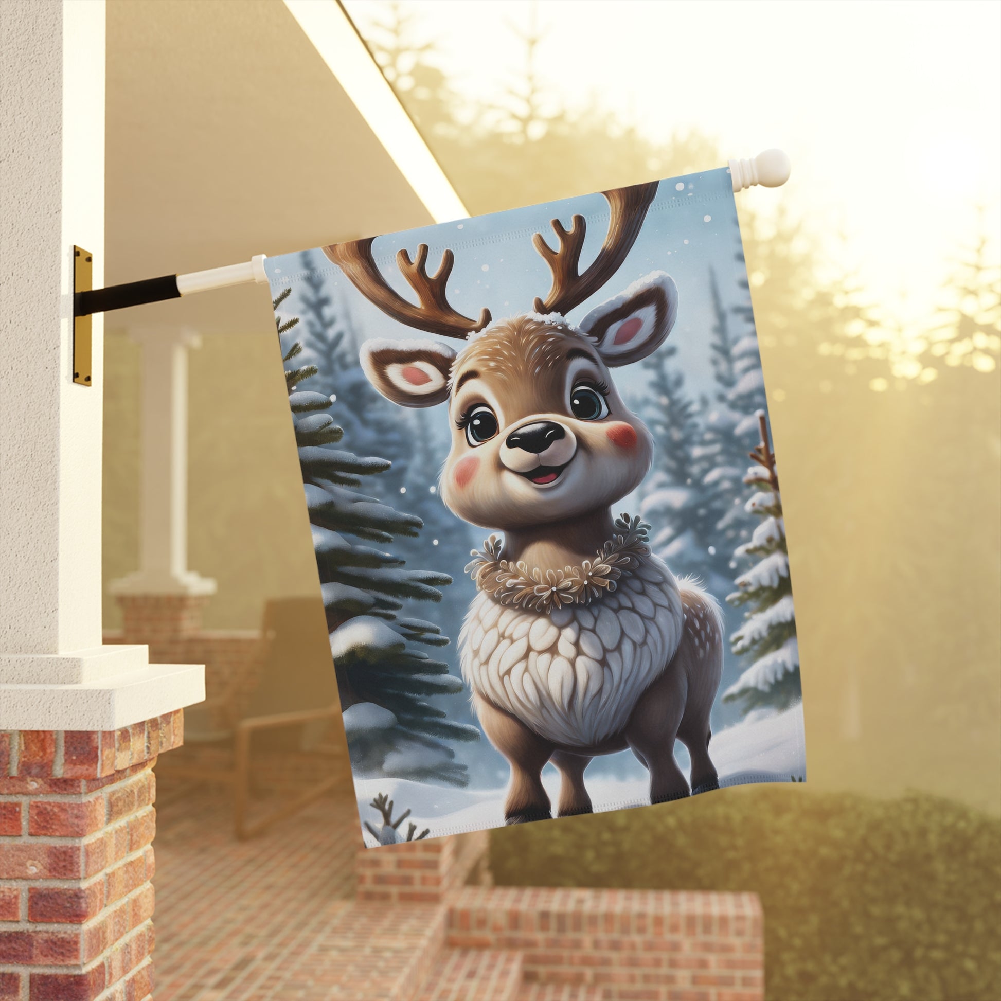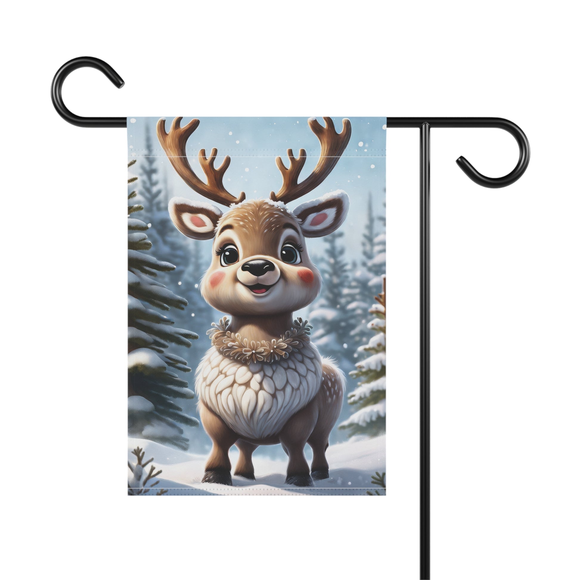 Cute Chubby Reindeer Holiday Garden Flag/ House Banner