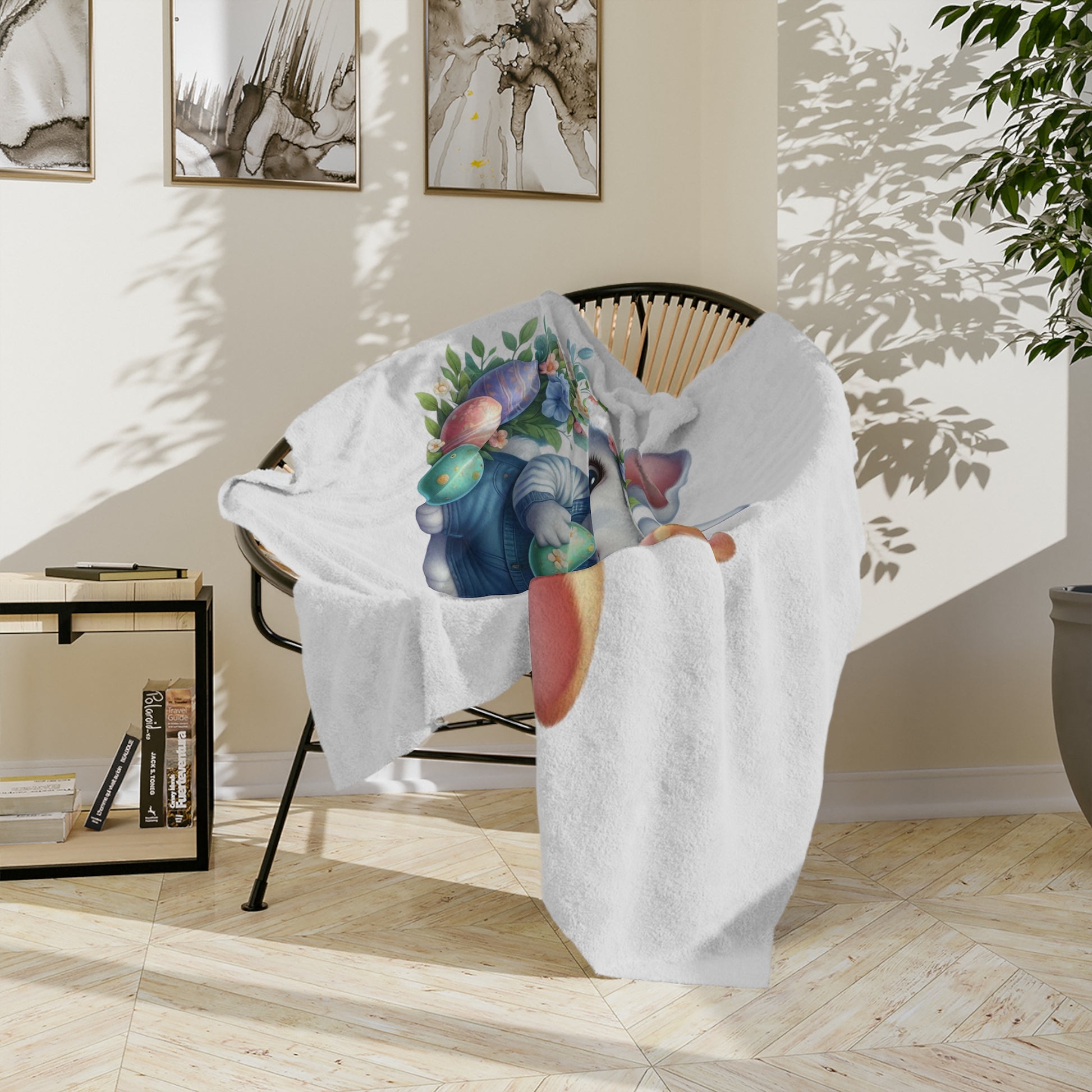 Celebrate the joy of Easter and the beauty of spring with our Cute Easter Bunny Couple Velveteen Blanket! This enchanting throw features two irresistibly adorable bunnies, one in blue overalls and the other in a pink dress, each holding a decorated Easter egg. They are surrounded by lovely floral accents and colorful patterned eggs, all set against a soft, subtle background. This heartwarming design is perfect for adding a festive and cheerful touch to your home for the Easter season, or simply to enjoy the cuteness of bunnies all year round. Crafted from luxurious, lightweight velveteen, this blanket offers an exceptionally soft and comforting feel, ideal for snuggling, napping, or as a delightful decorative accent. The high-quality, fade-resistant print ensures these sweet bunnies stay vibrant and charming for many holidays to come. An ideal gift for Easter baskets, bunny lovers, or anyone who cherishes cute and cozy home decor!