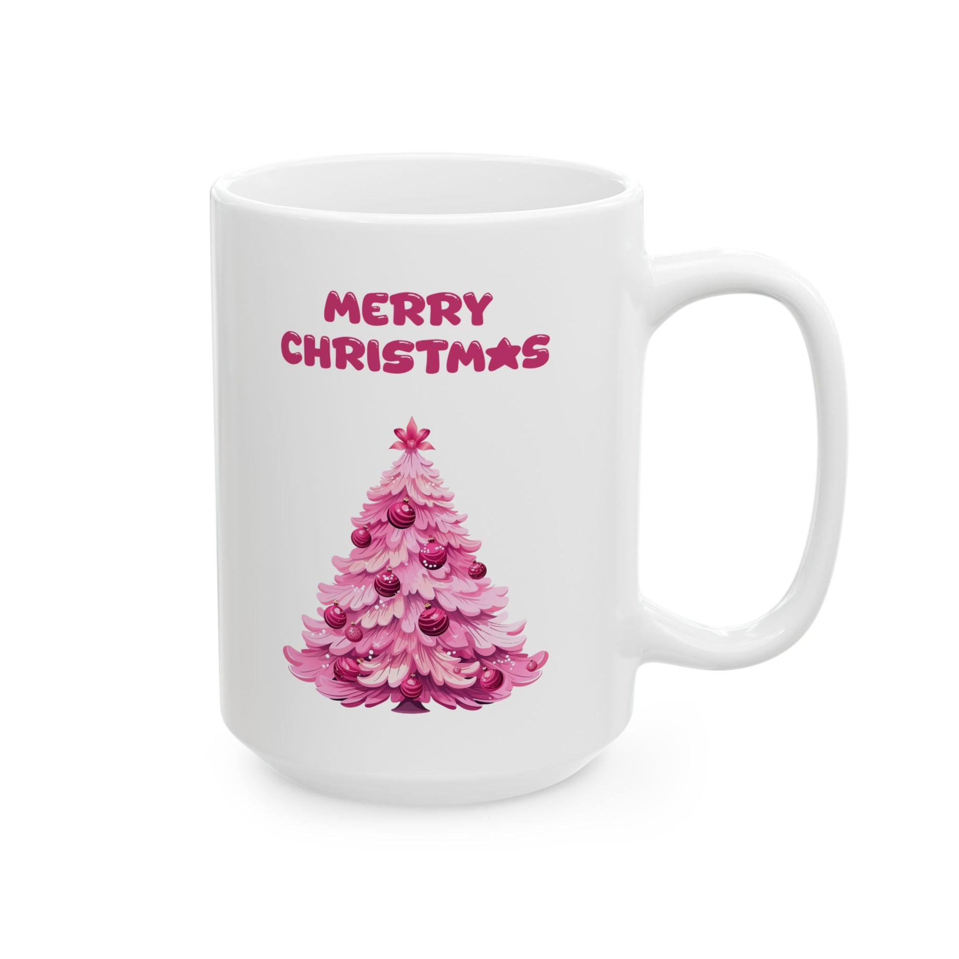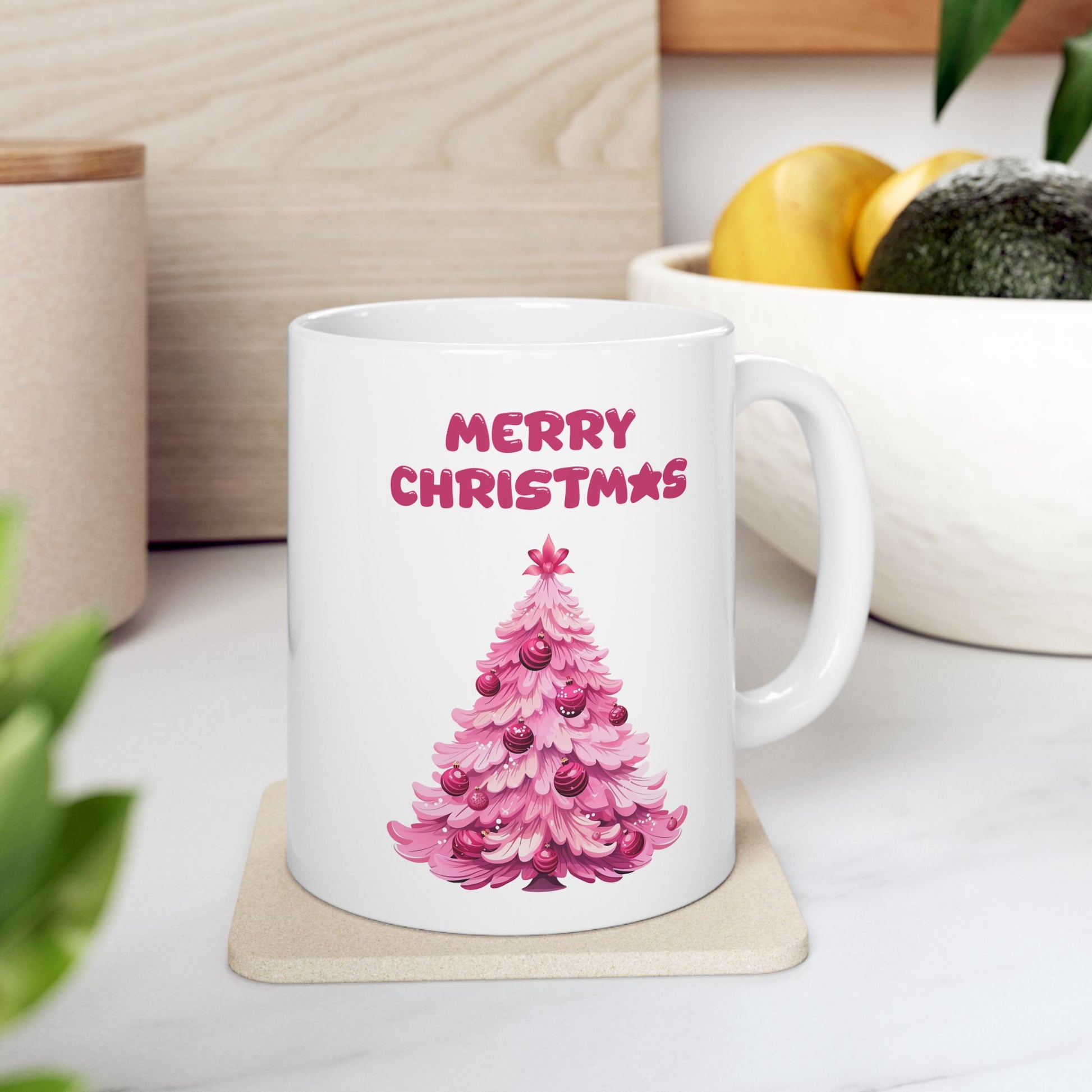 Enjoy your festive brews in style with this charming Merry Christmas mug. Featuring a beautifully designed pink Christmas tree, complete with shiny pink ornaments and a star, this mug brings a modern and chic touch to your holiday season. The "Merry Christmas" message is displayed in a vibrant pink font, making every sip a celebration. This high-quality ceramic mug is perfect for hot cocoa, coffee, or tea and is a wonderful addition to your kitchen during the holidays. It also makes an excellent gift for friends, family, or anyone who loves a unique twist on classic Christmas decor. The mug is both microwave and dishwasher safe for easy use and care.