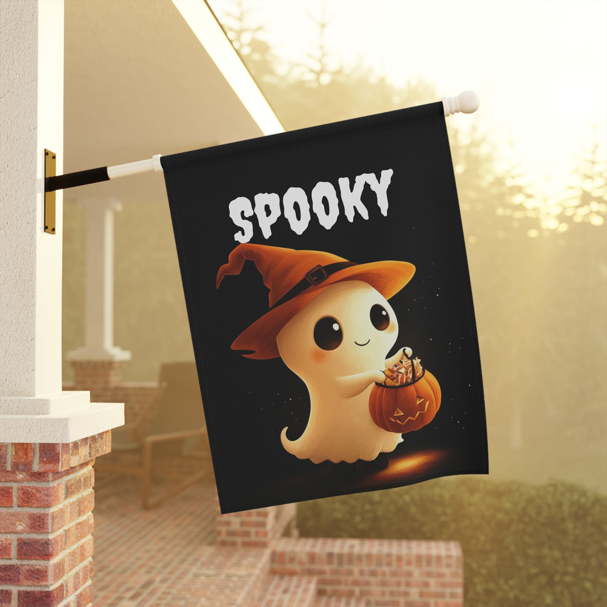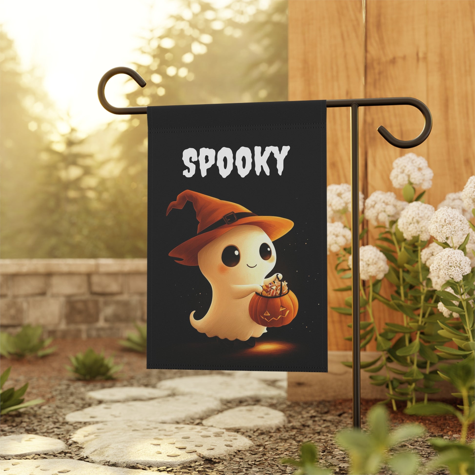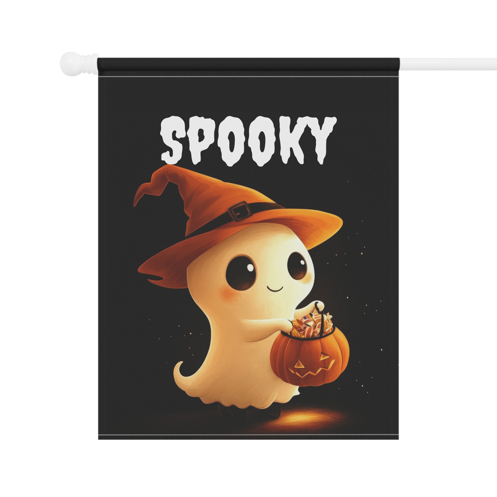 Add a playful twist to your Halloween décor with this Cute Spooky Ghost Garden Flag! Featuring an adorable ghost dressed as a witch holding a pumpkin candy bucket, and the word “SPOOKY” in bold Halloween font, this flag is a charming addition to your yard or garden. The cute and festive design is perfect for welcoming trick-or-treaters, delighting neighbors, and creating a fun Halloween vibe for kids and adults alike. Made from weather-resistant fabric, this durable flag is great for outdoor use throughout the spooky season.