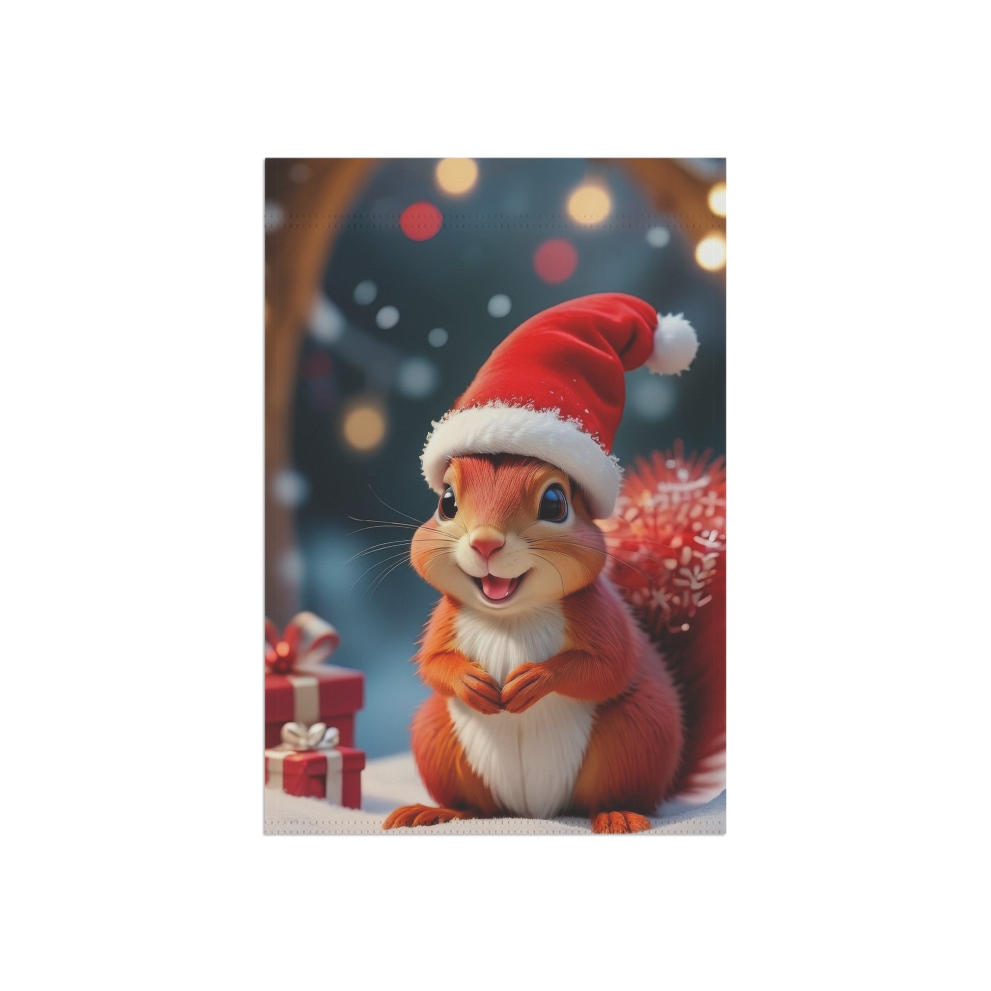Bring festive cheer to your garden with this adorable Christmas Squirrel Garden Flag! Featuring a cute, smiling squirrel wearing a Santa hat amidst a cozy, snowy backdrop with twinkling lights and presents, this vibrant flag is the perfect addition to your holiday outdoor decorations. Made with durable, weather-resistant material, it's designed to withstand the elements and keep your spirits bright all season long. Ideal for front yards, patios, and entryways.
