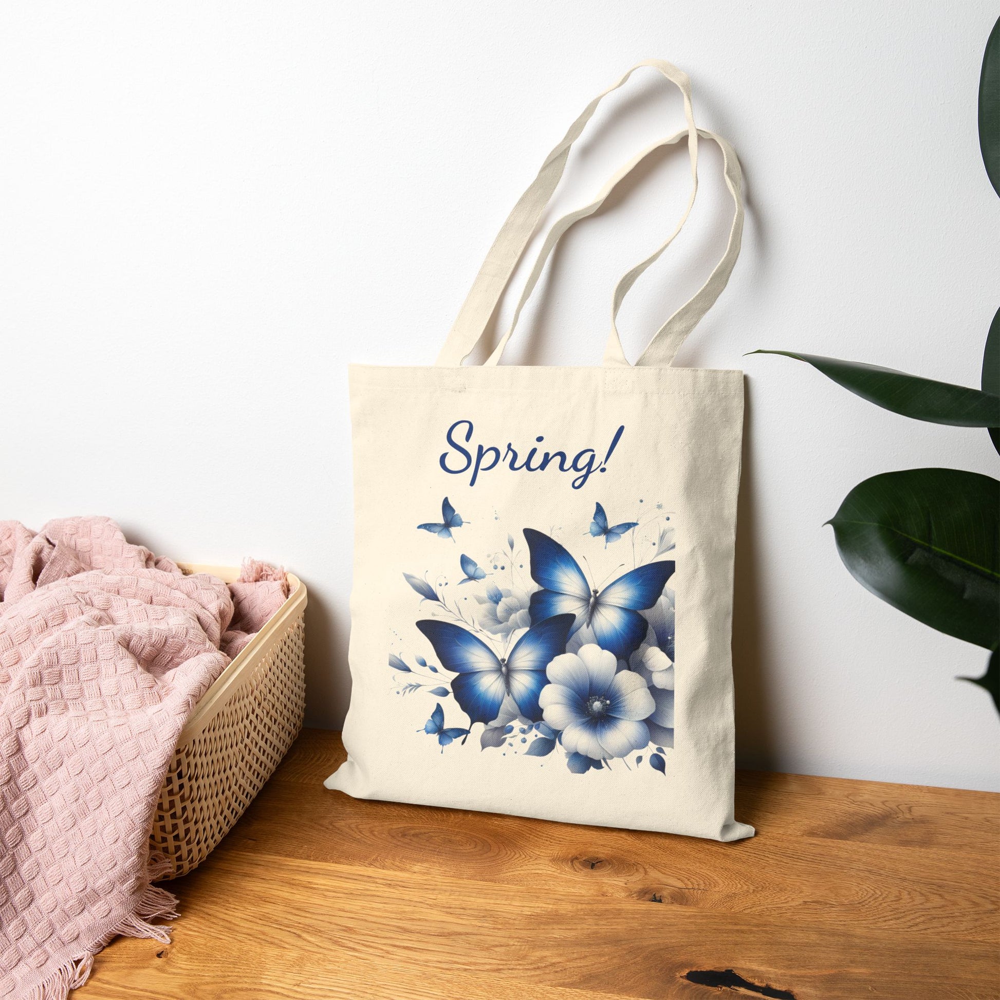 Carry a touch of nature's elegance wherever you go with this beautiful canvas tote bag. Featuring a stunning watercolor-style print of graceful blue butterflies and delicate flowers, this bag is perfect for adding a touch of spring to your everyday style. Made from durable, natural canvas, it's ideal for carrying books, groceries, or essentials for a day out. A charming accessory that is as practical as it is pretty.