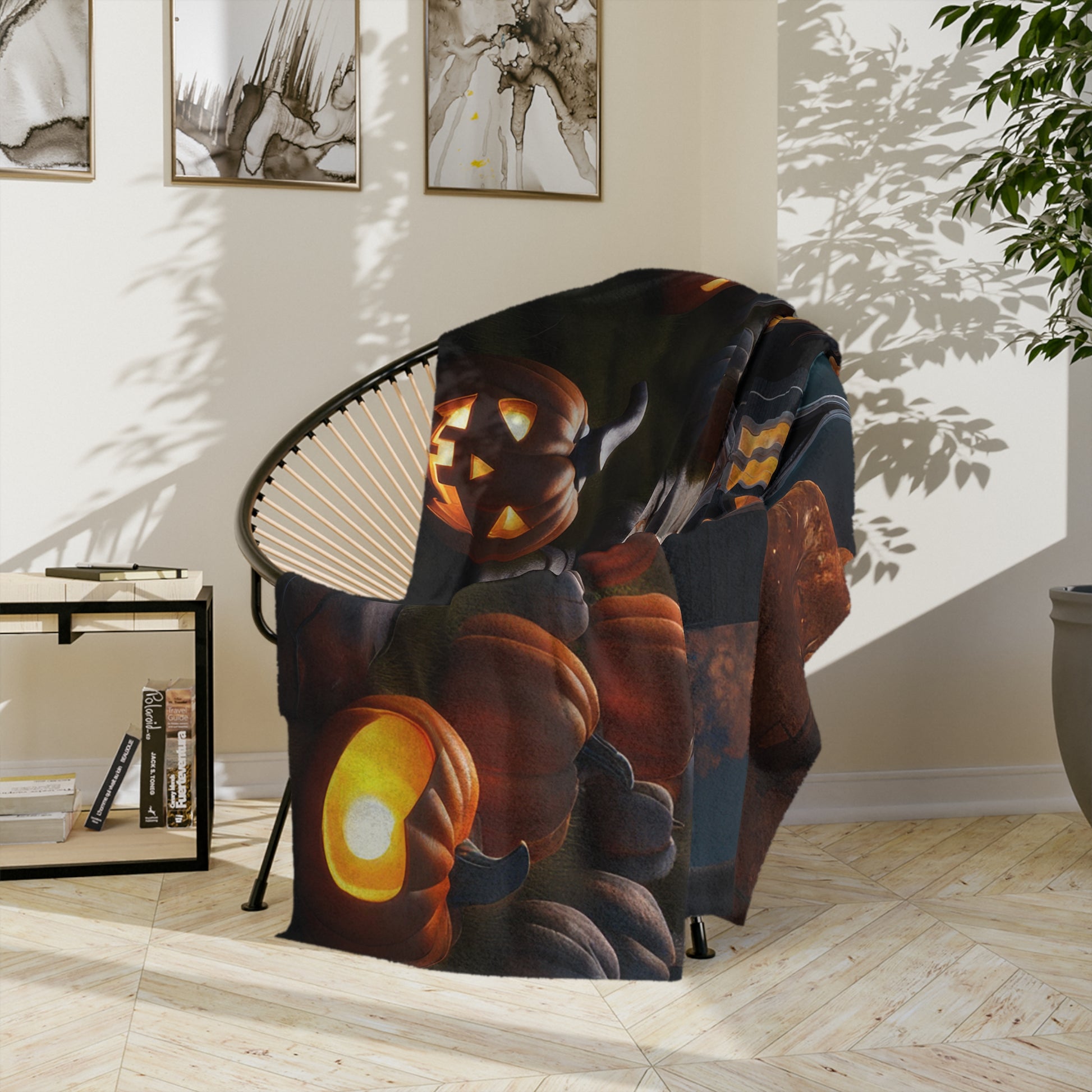 Step into a magical Halloween night with our Enchanted Haunted House Plush Blanket! This exquisitely soft and cozy throw features a beautifully detailed scene: a classic haunted house with warmly glowing windows, nestled amongst autumn trees, all under the watchful eye of a luminous full moon. A charming path lined with an abundance of smiling, illuminated jack-o'-lanterns leads to the inviting (yet spooky!) entrance, while bats flit across the moonlit sky. Perfect for adding a touch of festive charm and spooky elegance to your home, this blanket is ideal for snuggling up on crisp autumn evenings, decorating your living room or bedroom, or as a thoughtful gift for anyone who adores Halloween. Made from premium, lightweight plush fabric, it offers exceptional comfort and warmth, making it a delightful addition to your seasonal decor.