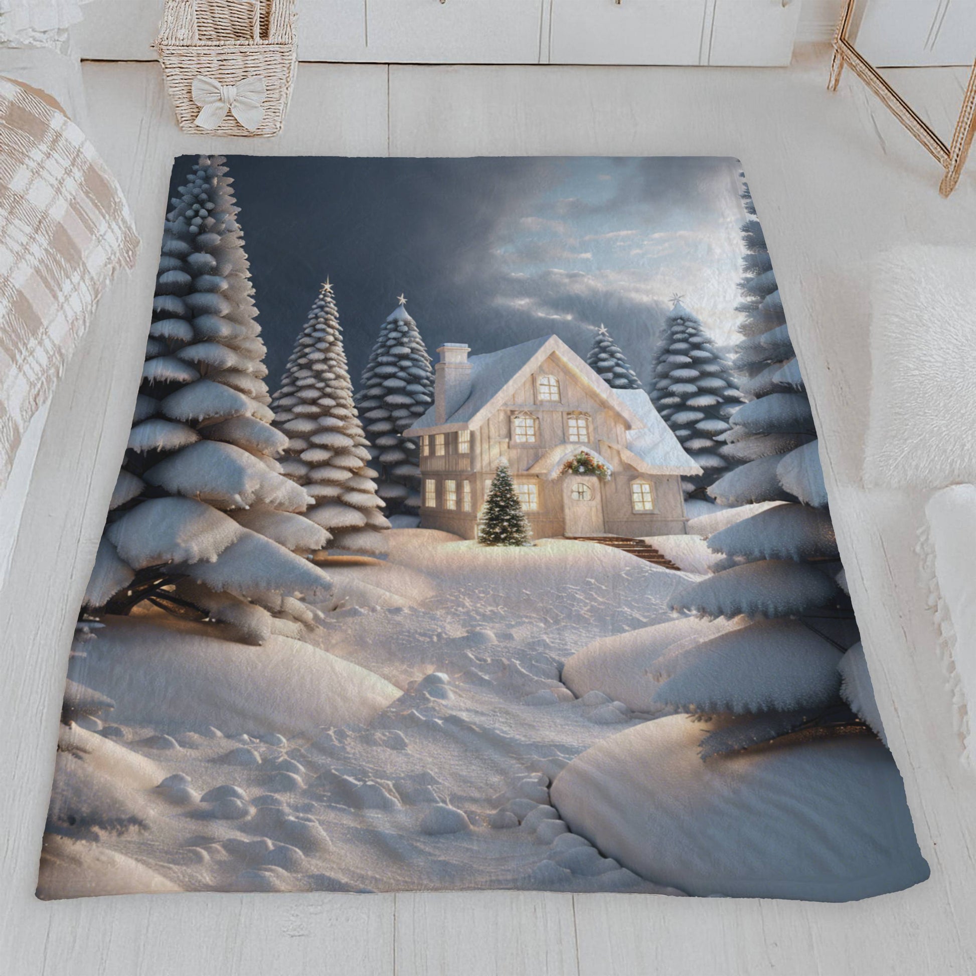 Escape to a peaceful winter wonderland with our Cozy Winter Christmas House Velveteen Plush Blanket. This enchanting blanket features a beautiful scene of a quaint white house nestled amidst snow-laden pine trees, illuminated by a soft, magical light. It perfectly captures the serene beauty of a quiet Christmas evening, inviting warmth and tranquility into your home.
