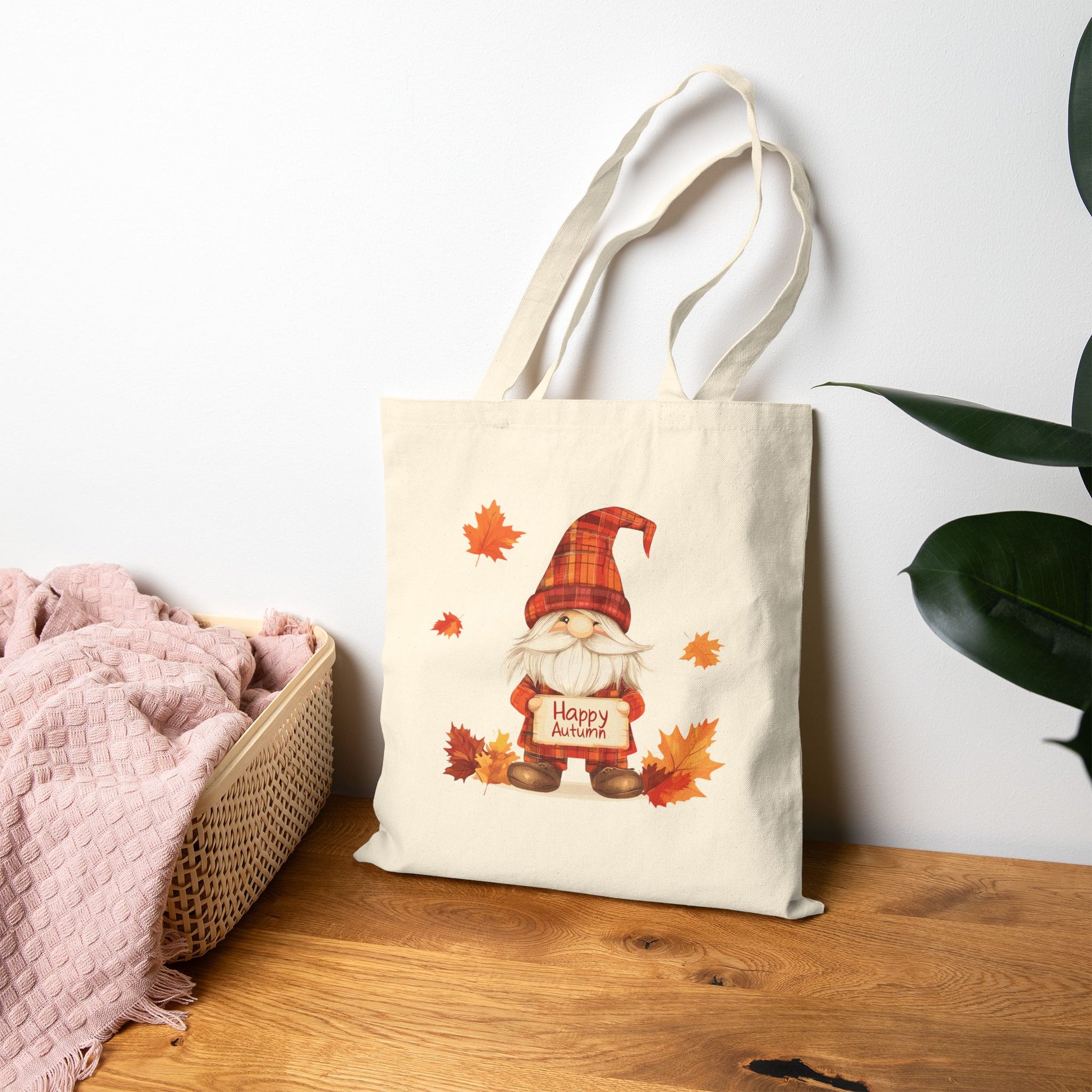 Get ready for the autumn season with our adorable "Happy Autumn" Gnome Canvas Tote Bag! This charming bag features a cute gnome wearing a red plaid hat and holding a sign that says "Happy Autumn," surrounded by beautiful falling leaves. Made from durable canvas, this tote is perfect for everyday use. Whether you're carrying books to class, groceries from the market, or essentials for a day out, this spacious bag is both practical and stylish. The delightful gnome design makes it a perfect accessory for fall and a great gift for anyone who loves whimsical and seasonal themes.
