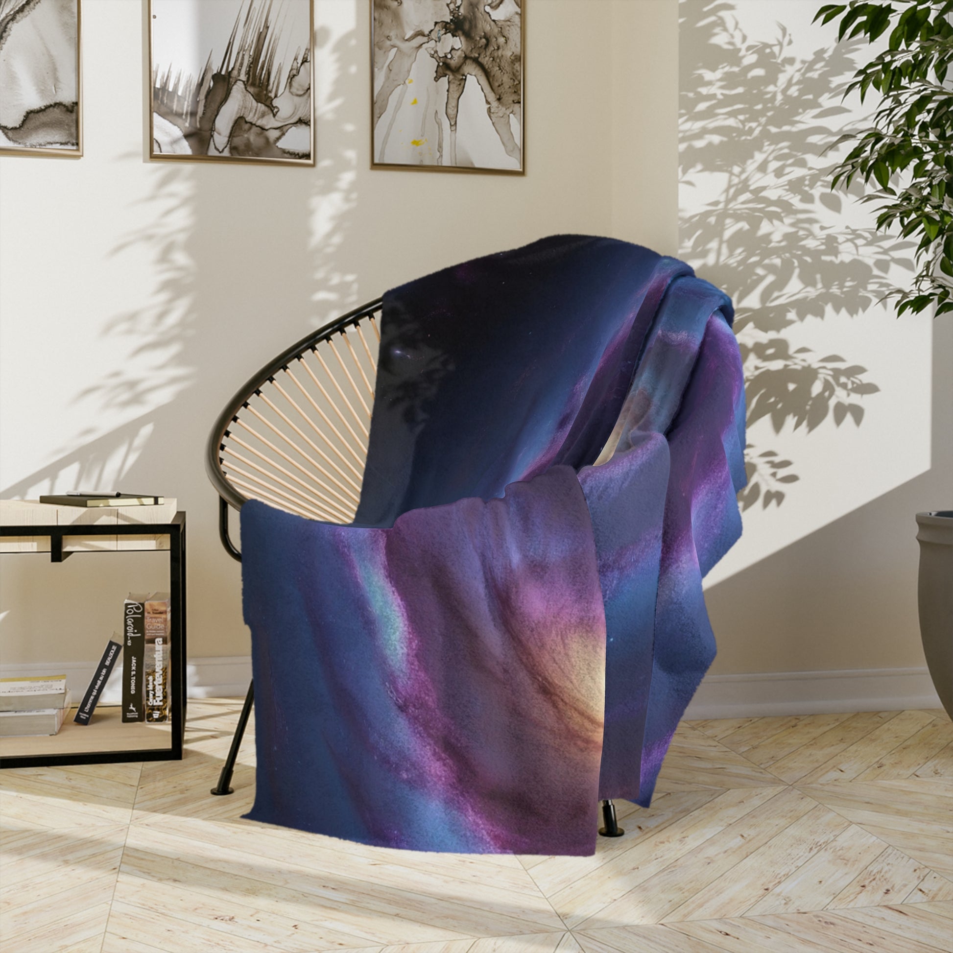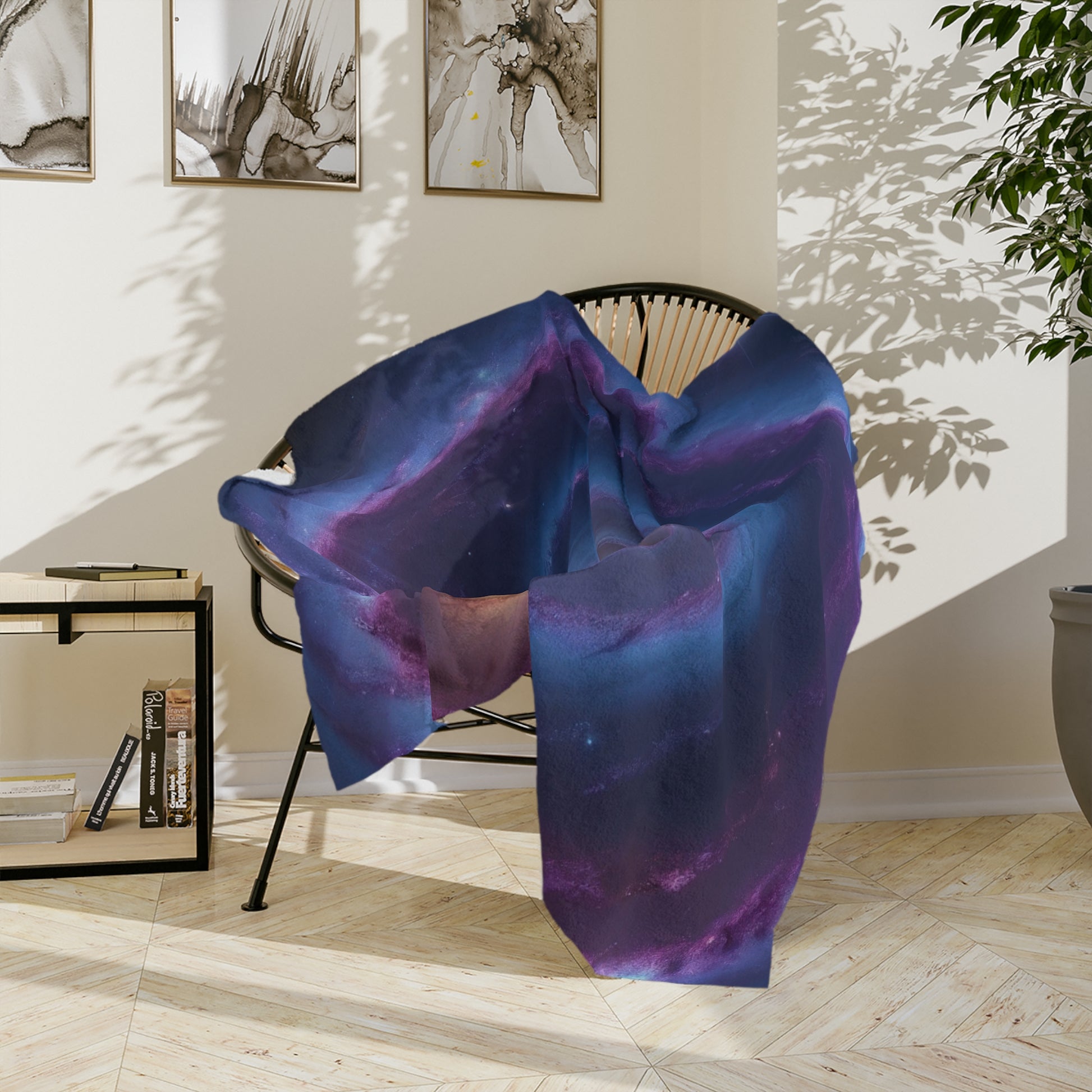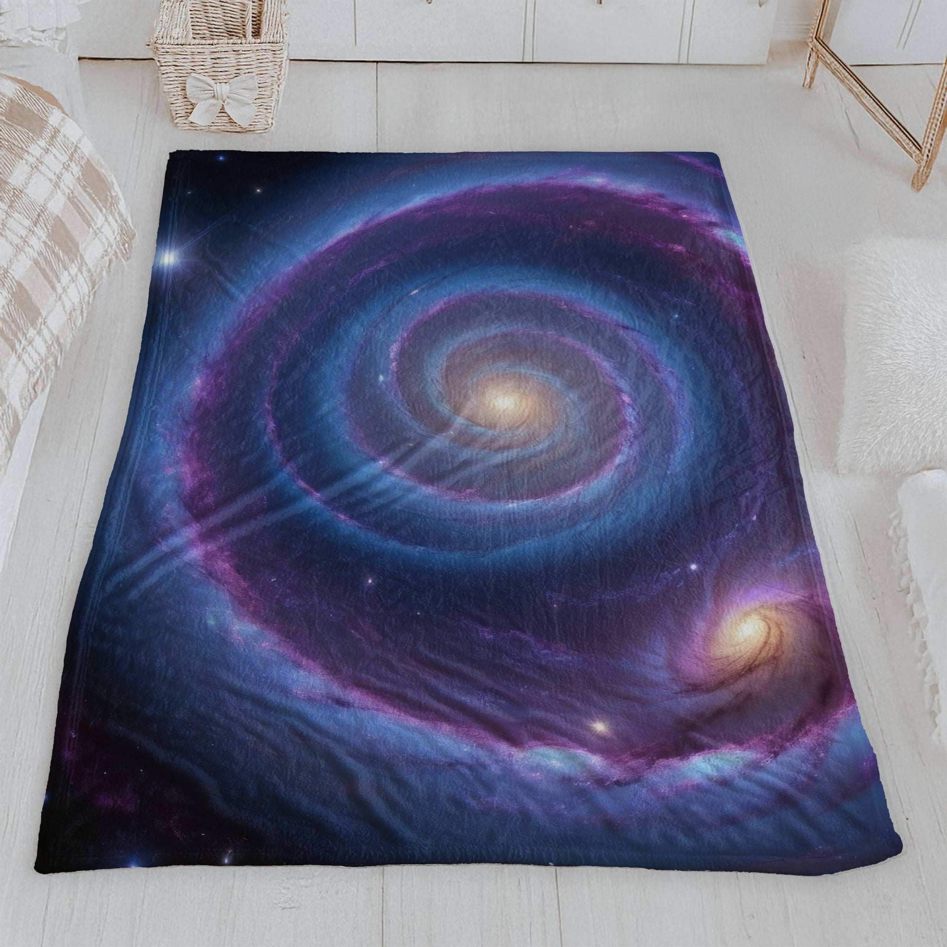 Drift off to sleep under the stars with our Galaxy Swirl Velveteen Blanket. Featuring a mesmerizing design of a swirling galaxy filled with vibrant purples, deep blues, and shimmering stars, this blanket is a stunning statement piece for any room. It's the perfect way to bring the beauty of the cosmos into your home.