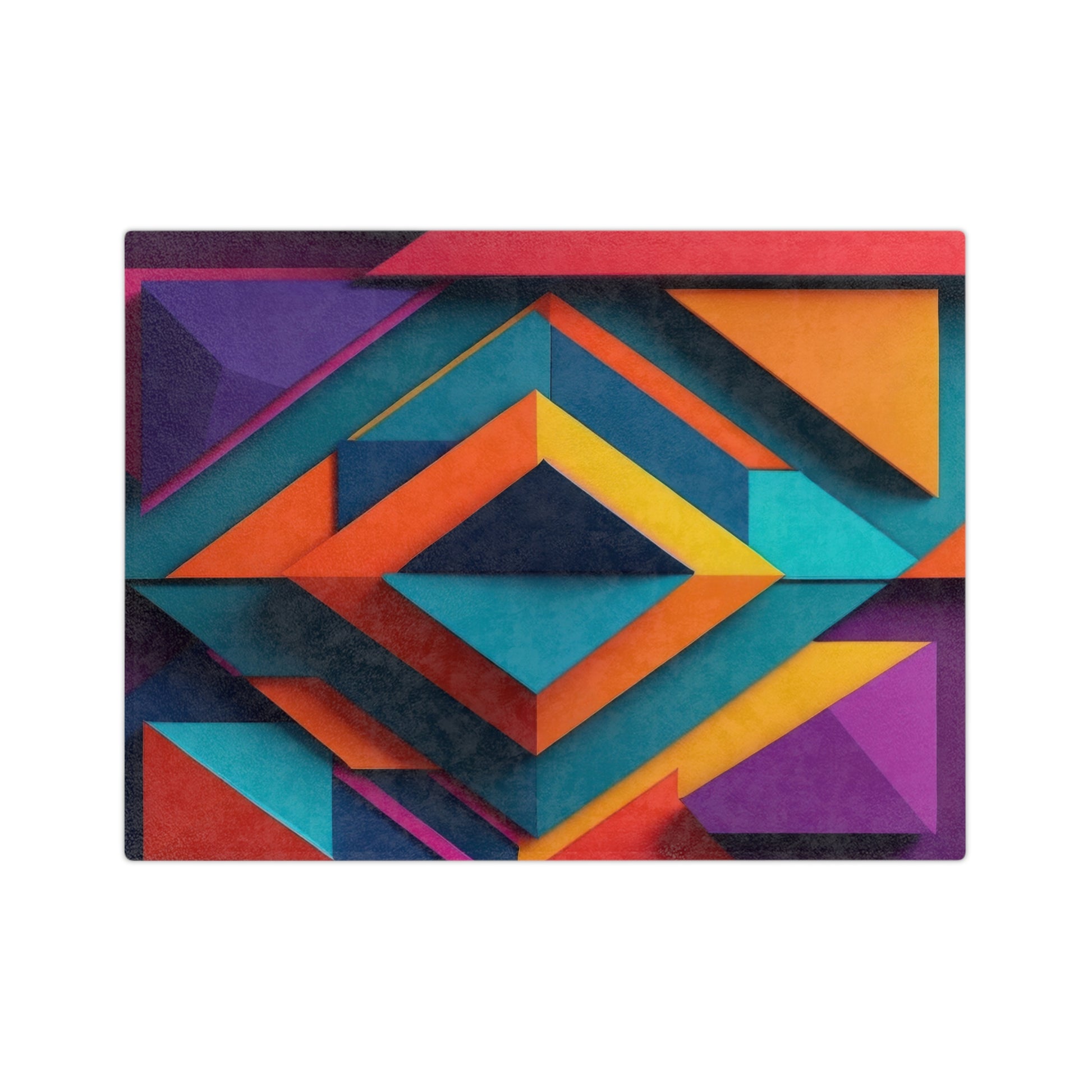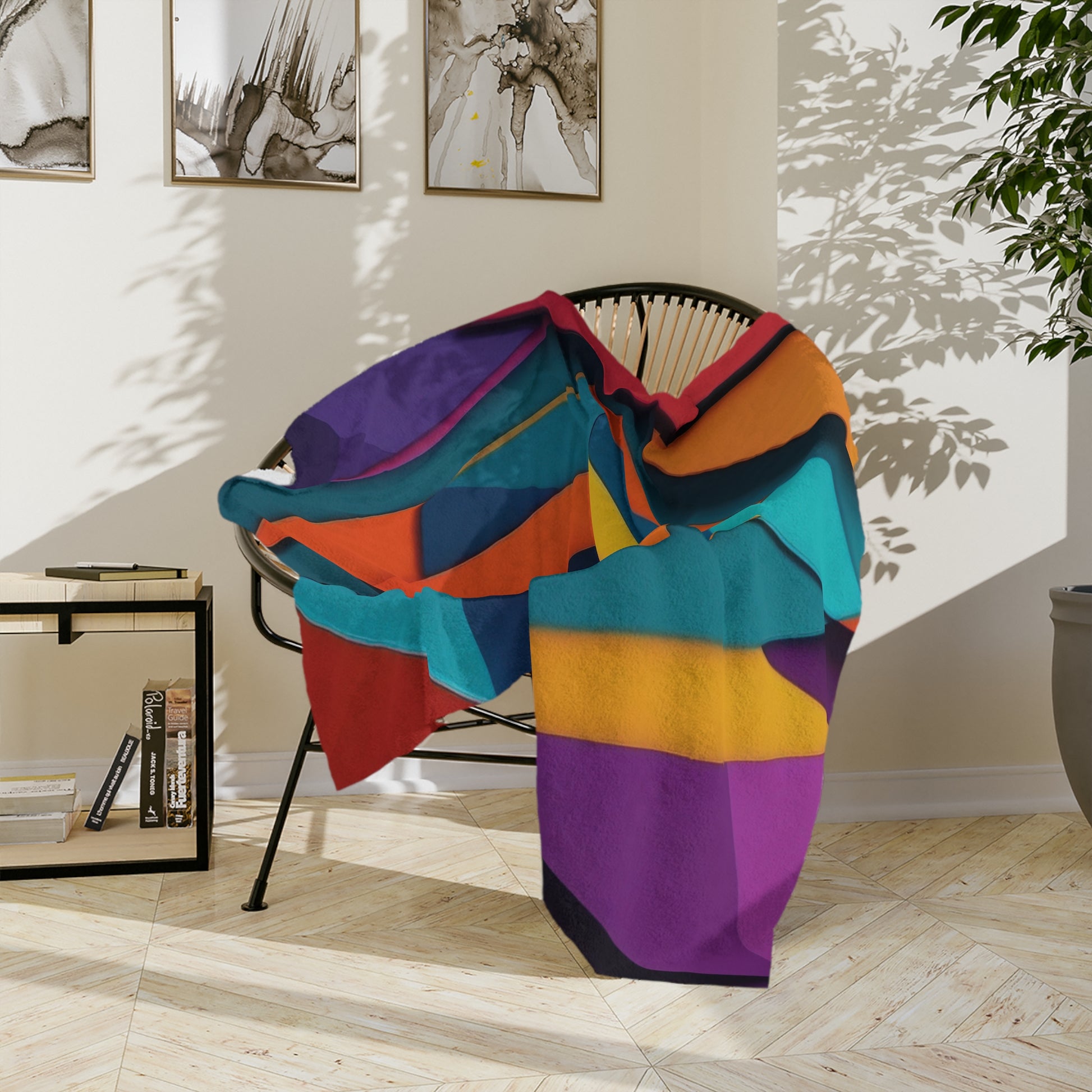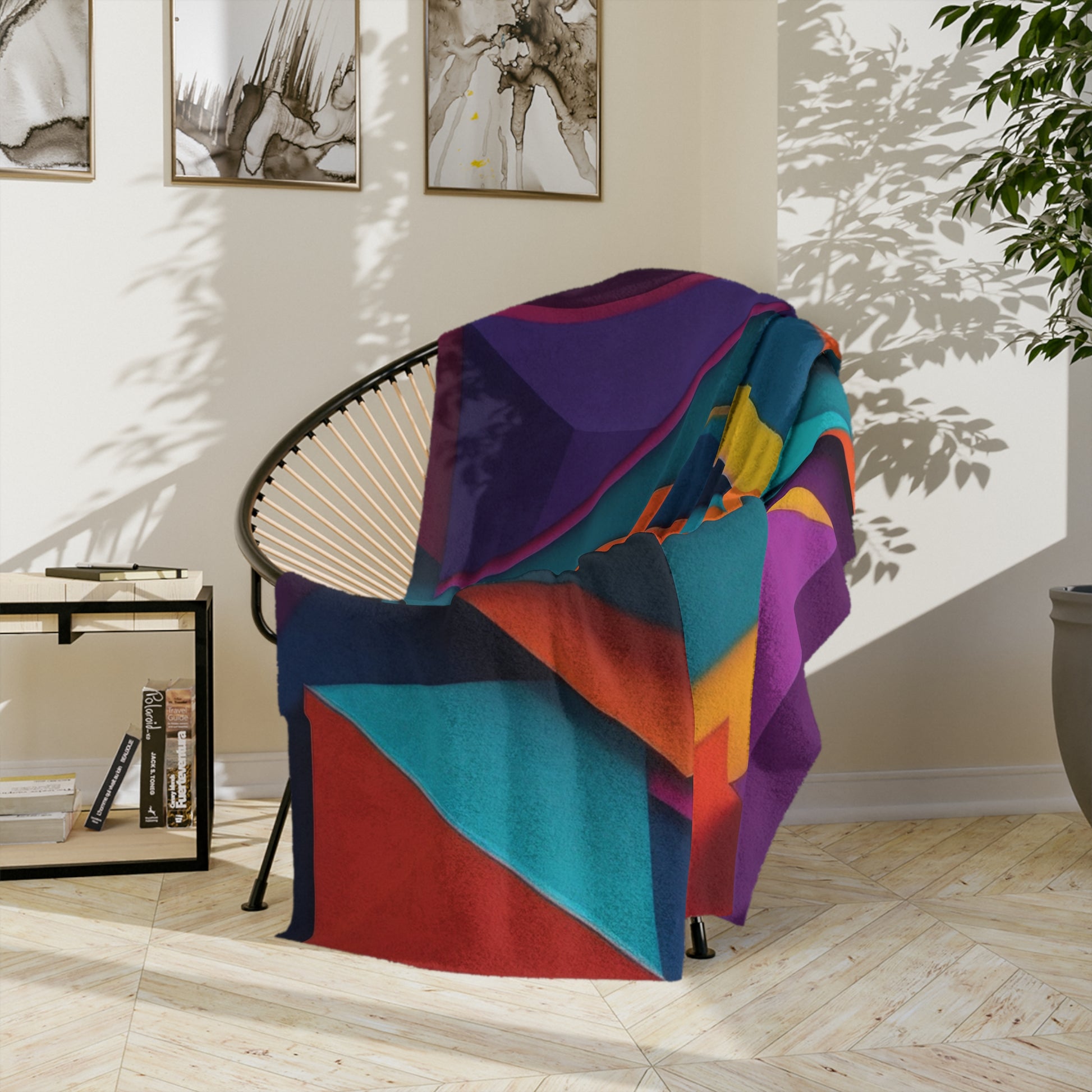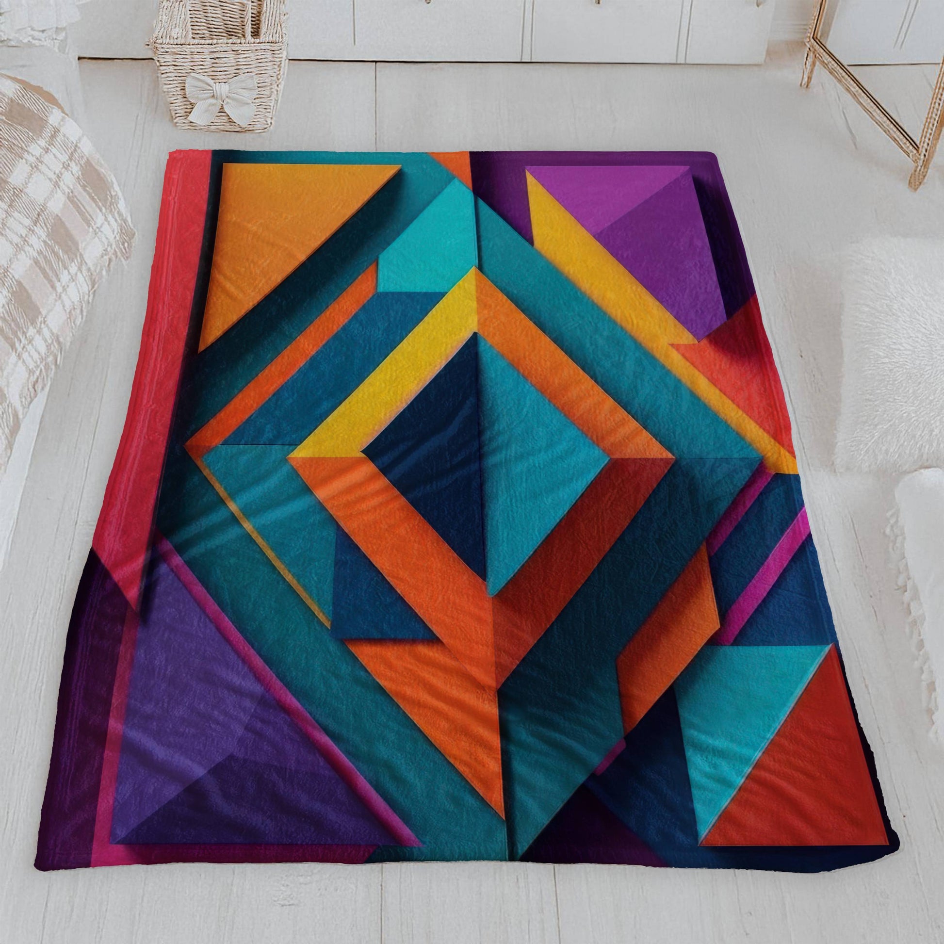 Add a touch of modern art to your home with our stunning Geometric Abstract Velveteen Blanket. This throw features a bold and dynamic design of layered geometric shapes and triangles in a vibrant color palette of teal, orange, purple, and blue. It's the perfect statement piece for anyone who loves modern, minimalist, or contemporary art and wants to add a sophisticated flair to their space.