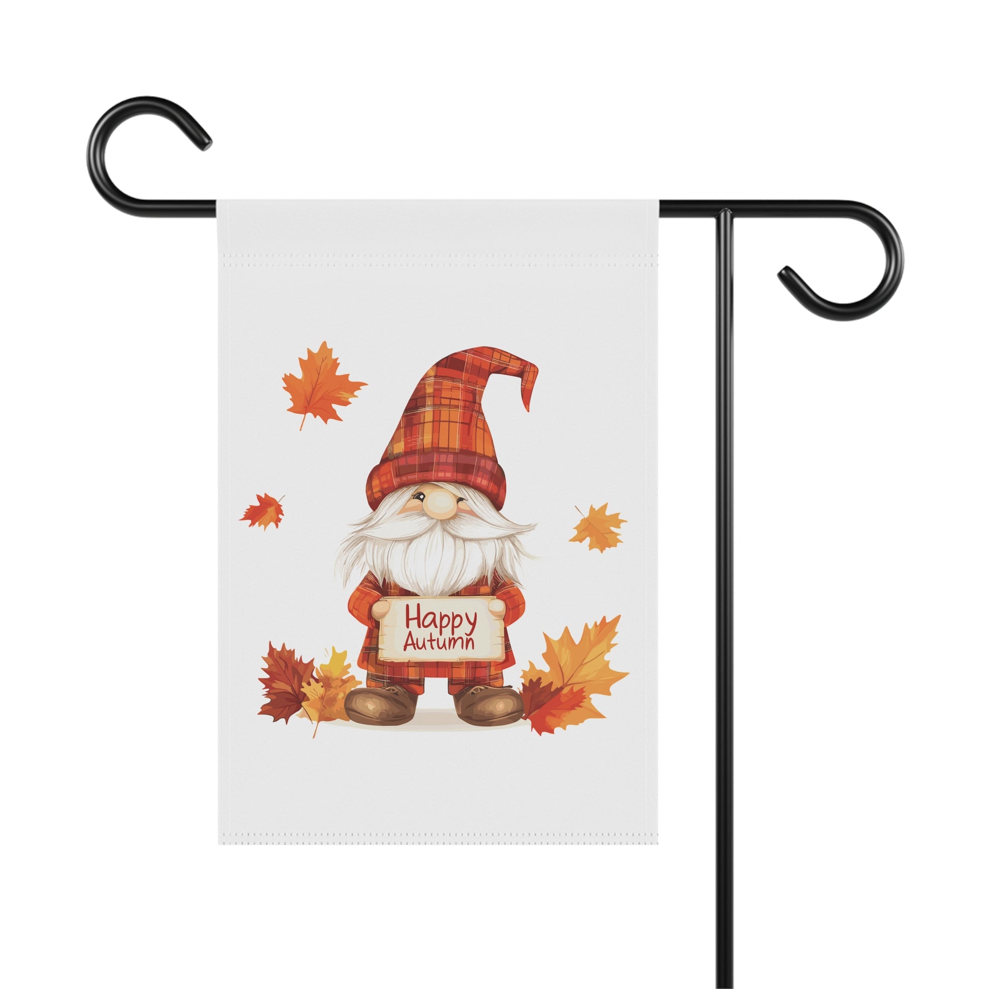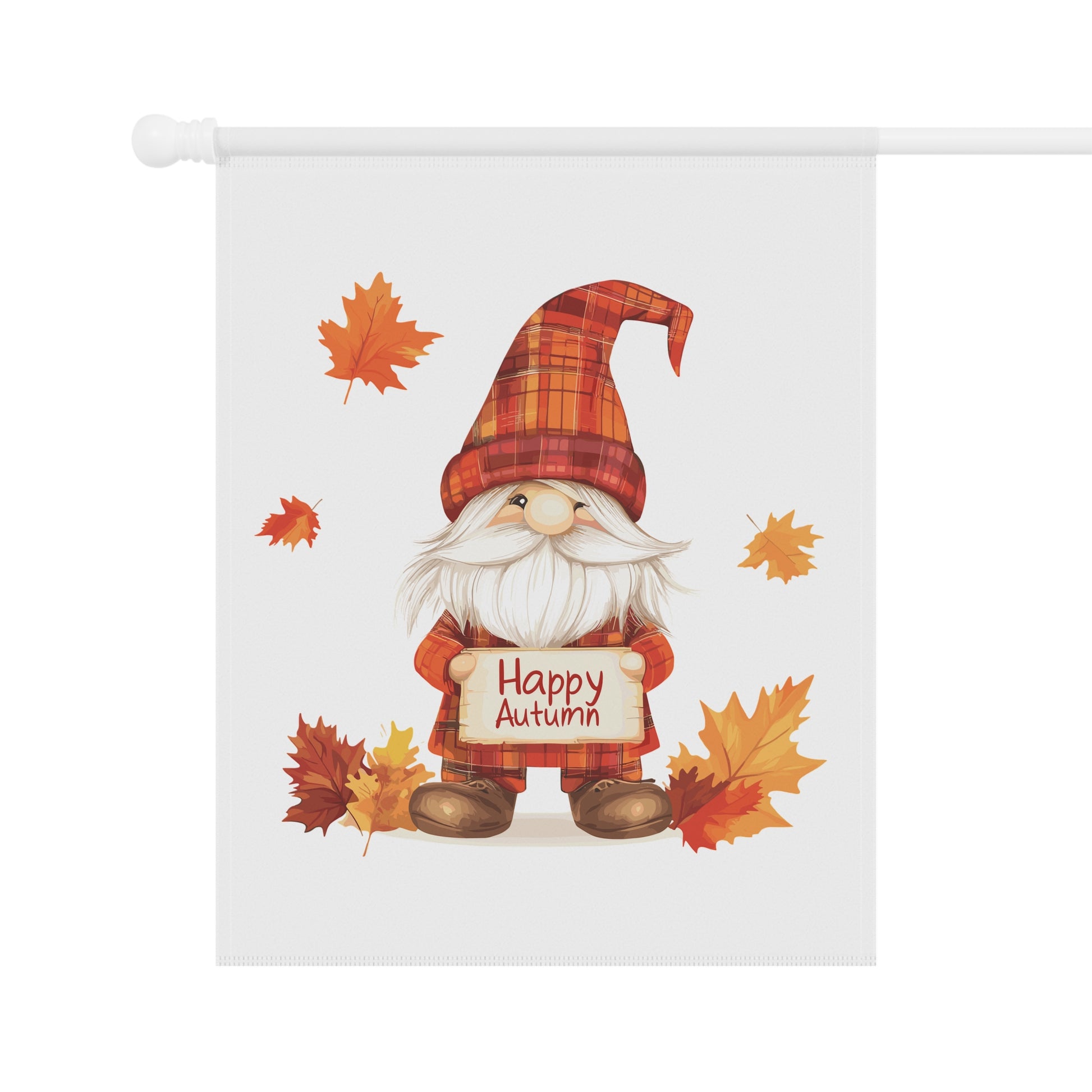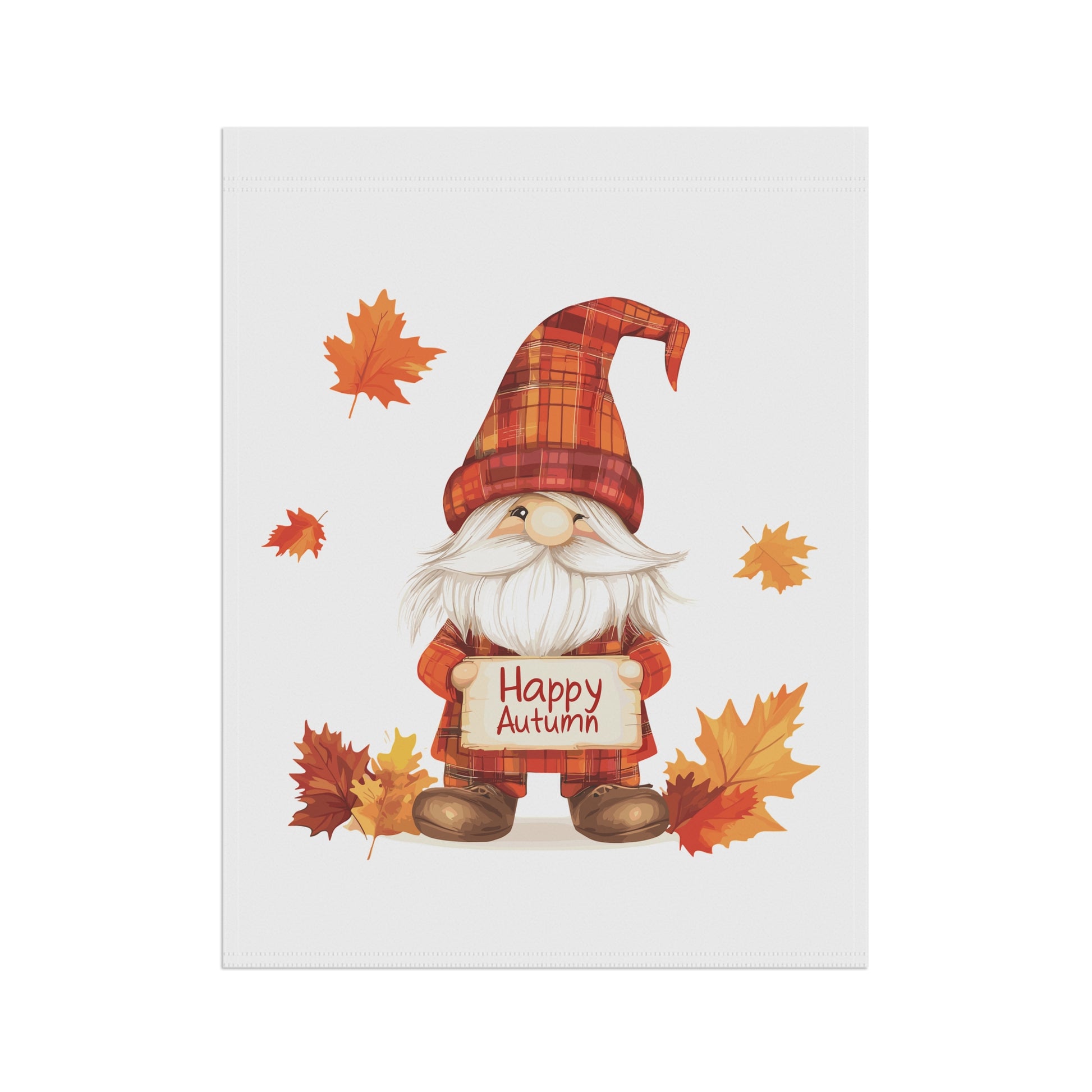 Welcome the season of pumpkin spice and cozy sweaters with our charming "Happy Autumn" Gnome Garden Flag. This delightful flag features a friendly gnome wearing a festive plaid hat and holding a sign that wishes all a "Happy Autumn." Surrounded by beautifully colored fall leaves, this flag is the perfect way to add a touch of whimsy and seasonal cheer to your front yard, porch, or garden. Made from durable, weather-resistant material, it's designed to withstand the elements and keep your home looking festive all season long.