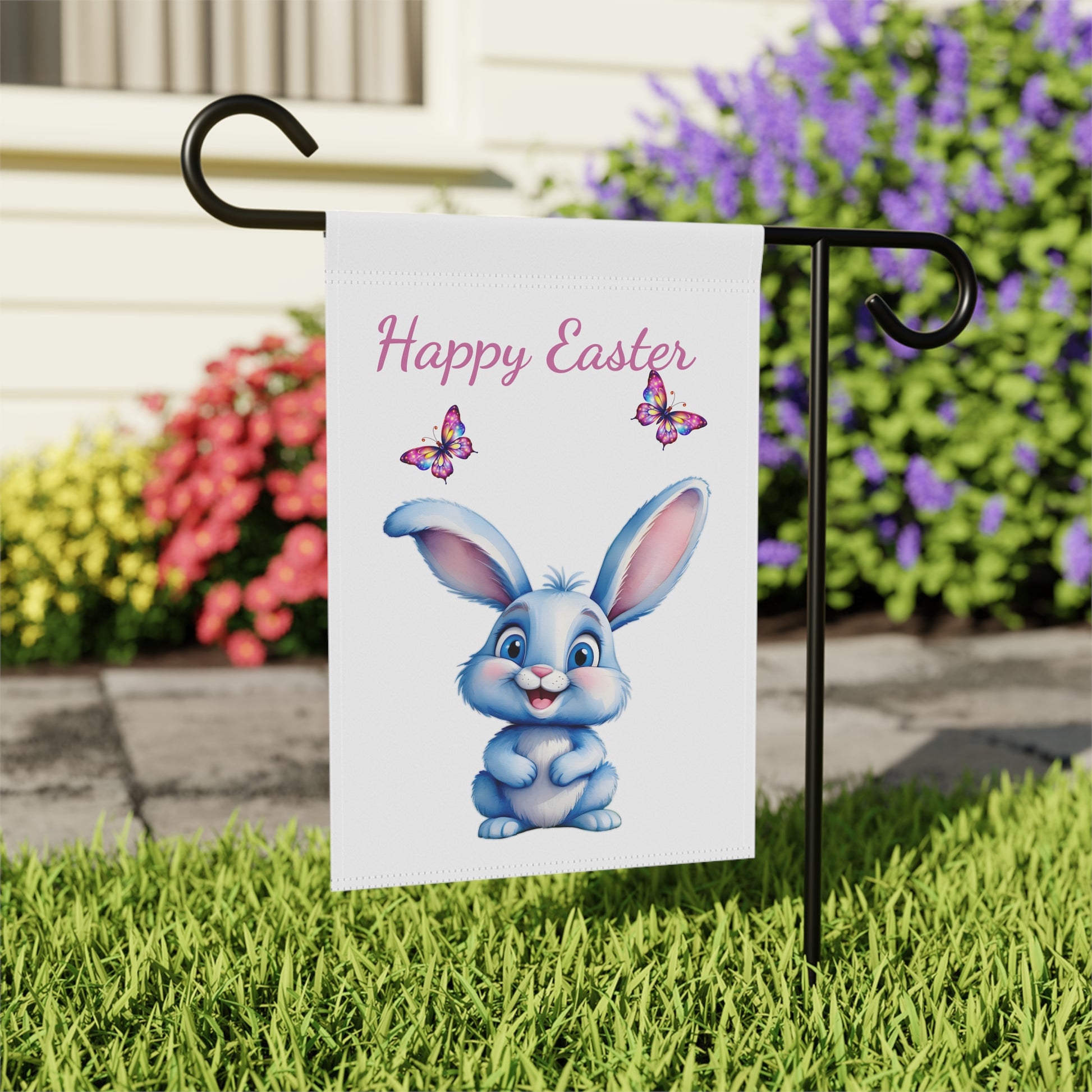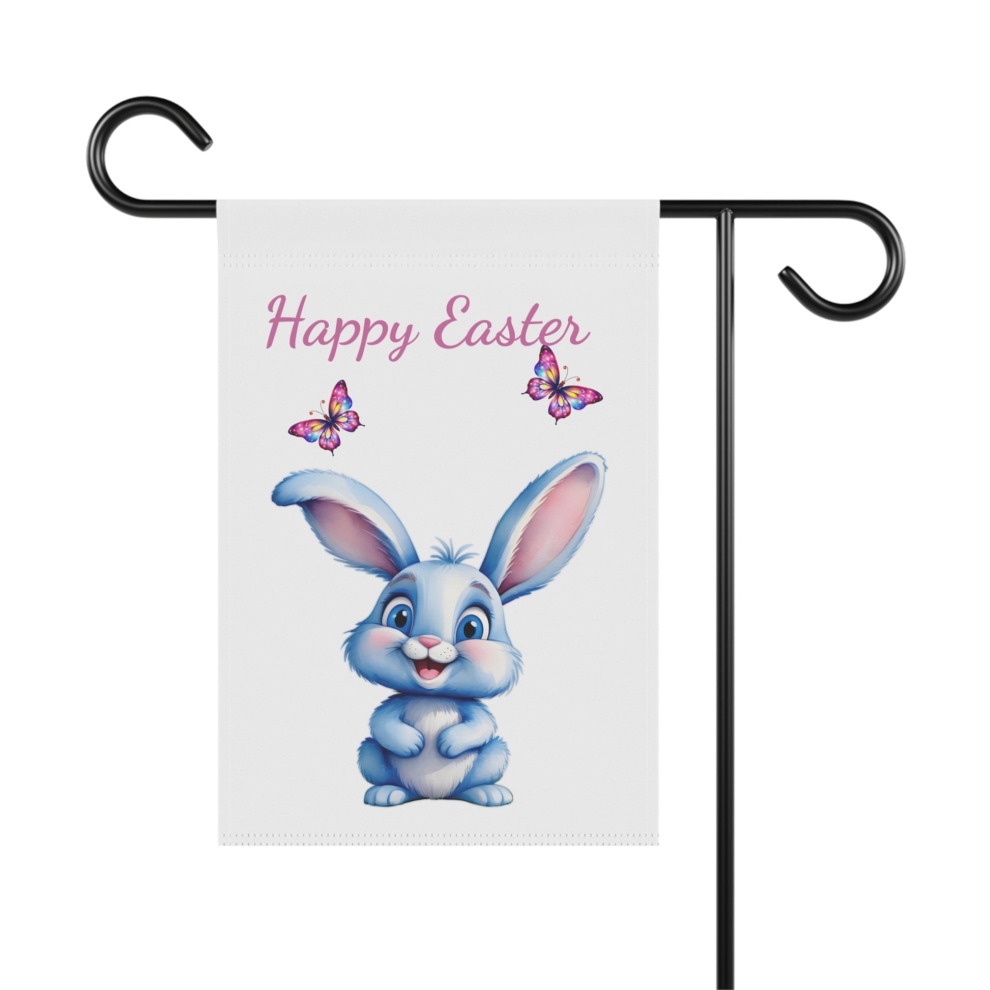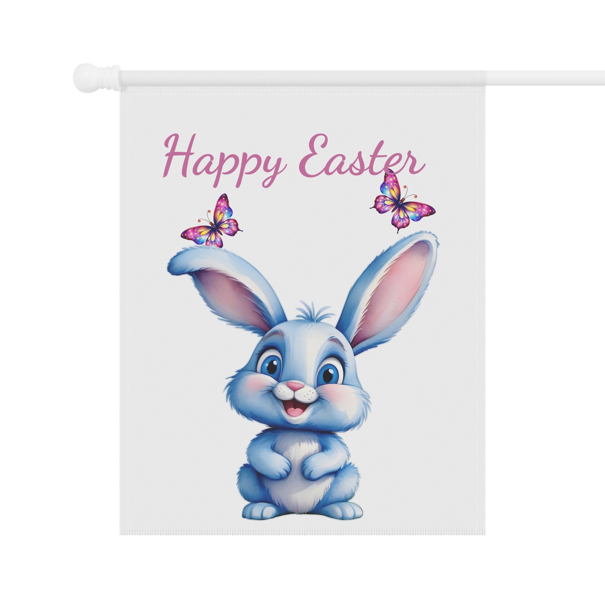 Brighten your garden or yard this Easter season with our adorable Happy Easter Bunny Garden Flag! Featuring a charming blue bunny with big, friendly eyes and two vibrant butterflies, this durable flag is perfect for adding a touch of festive cheer to your outdoor space. Made from high-quality, weather-resistant material, it's designed to withstand the elements and maintain its vibrant colors year after year. Ideal for welcoming guests and celebrating the joy of spring!