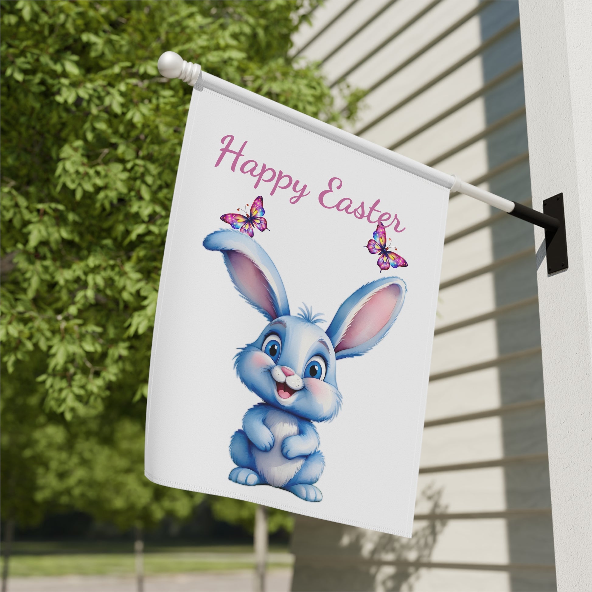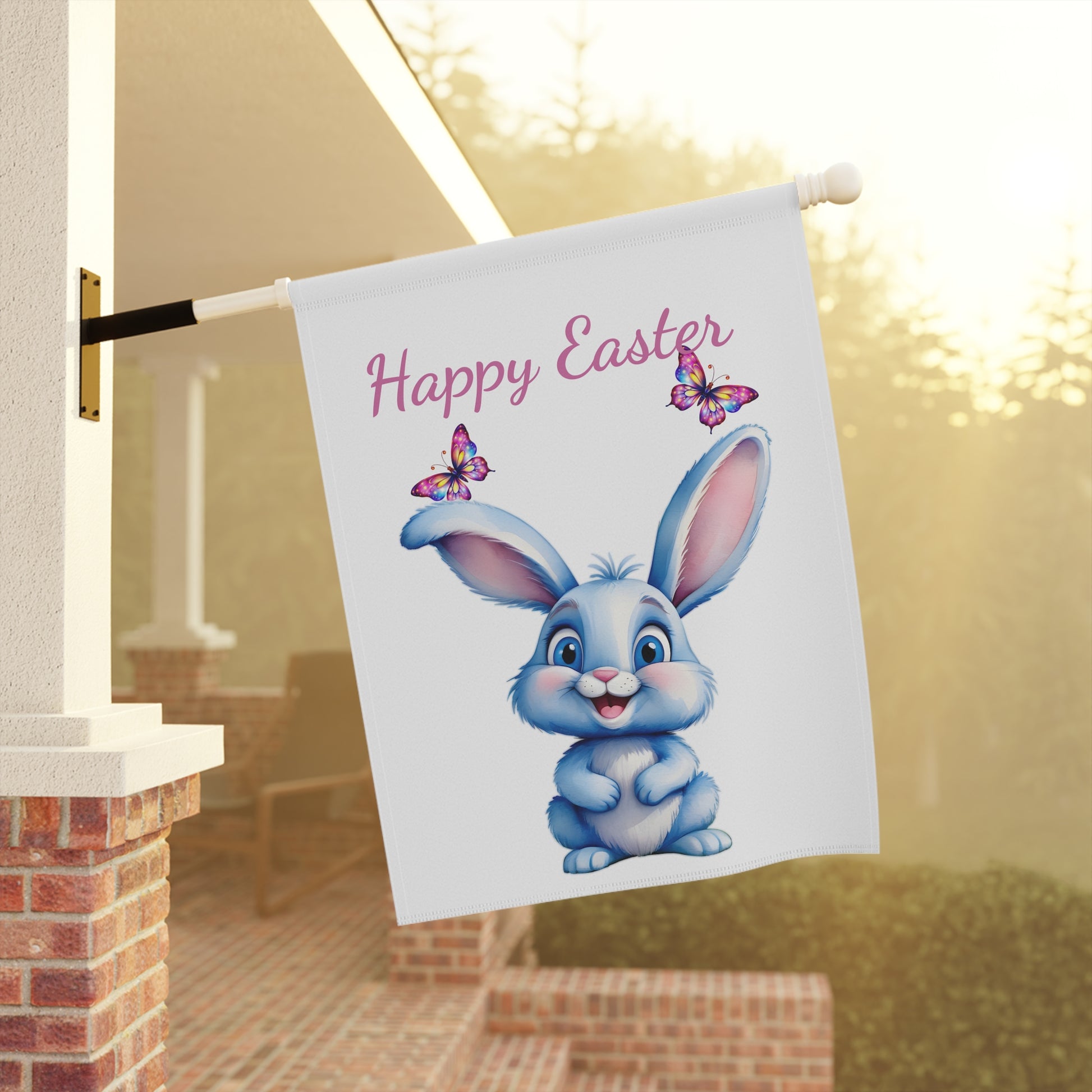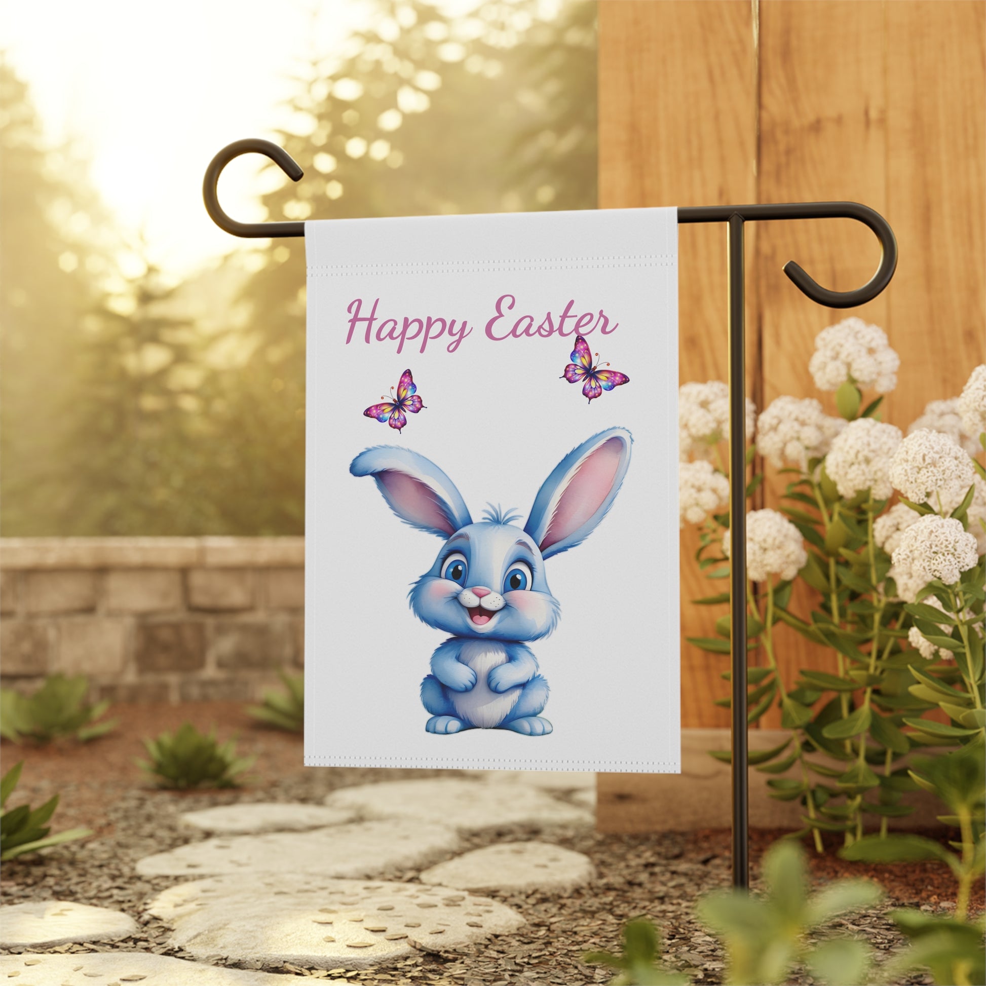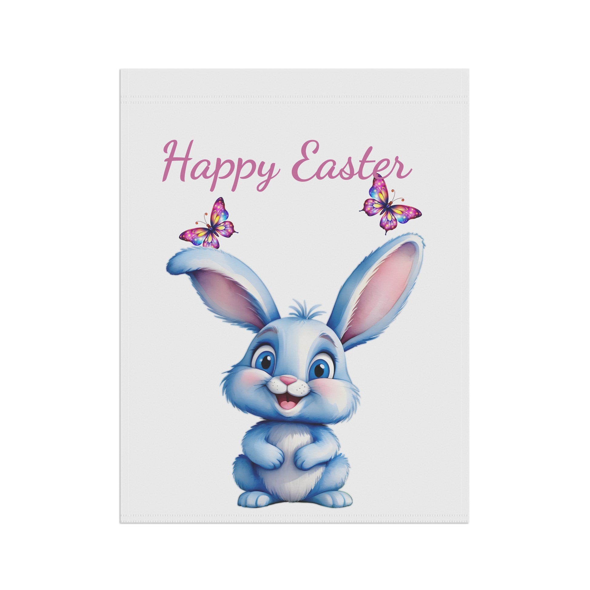 Brighten your garden or yard this Easter season with our adorable Happy Easter Bunny Garden Flag! Featuring a charming blue bunny with big, friendly eyes and two vibrant butterflies, this durable flag is perfect for adding a touch of festive cheer to your outdoor space. Made from high-quality, weather-resistant material, it's designed to withstand the elements and maintain its vibrant colors year after year. Ideal for welcoming guests and celebrating the joy of spring!