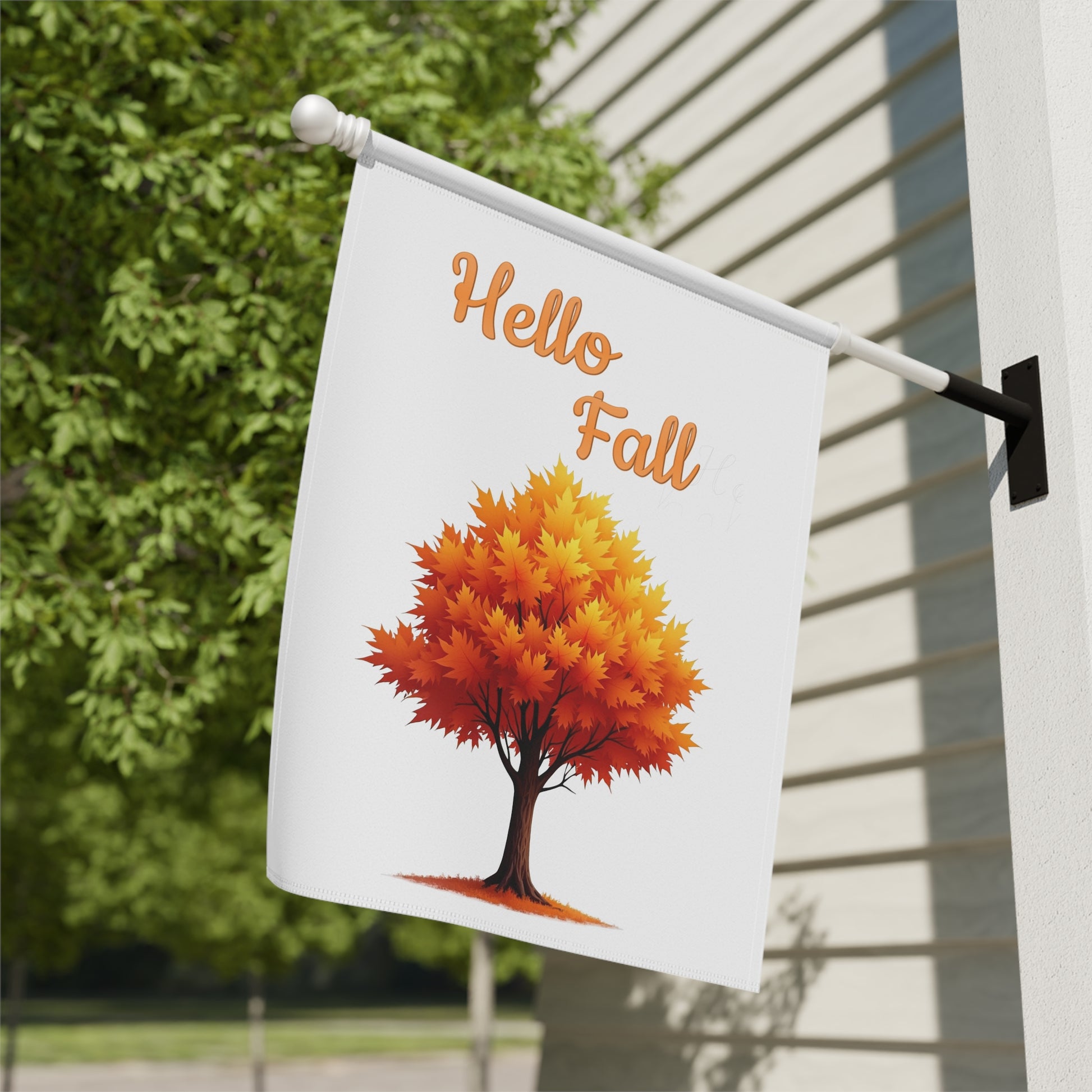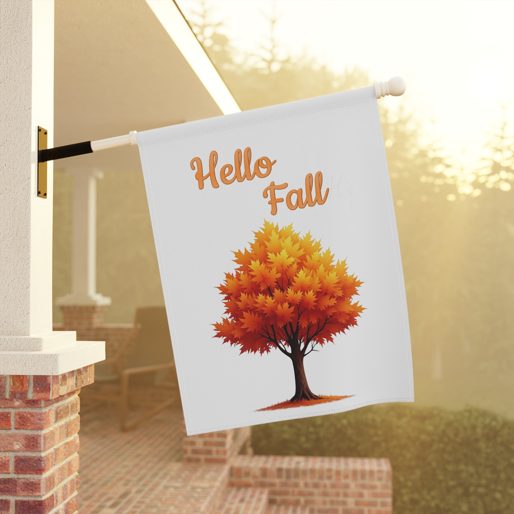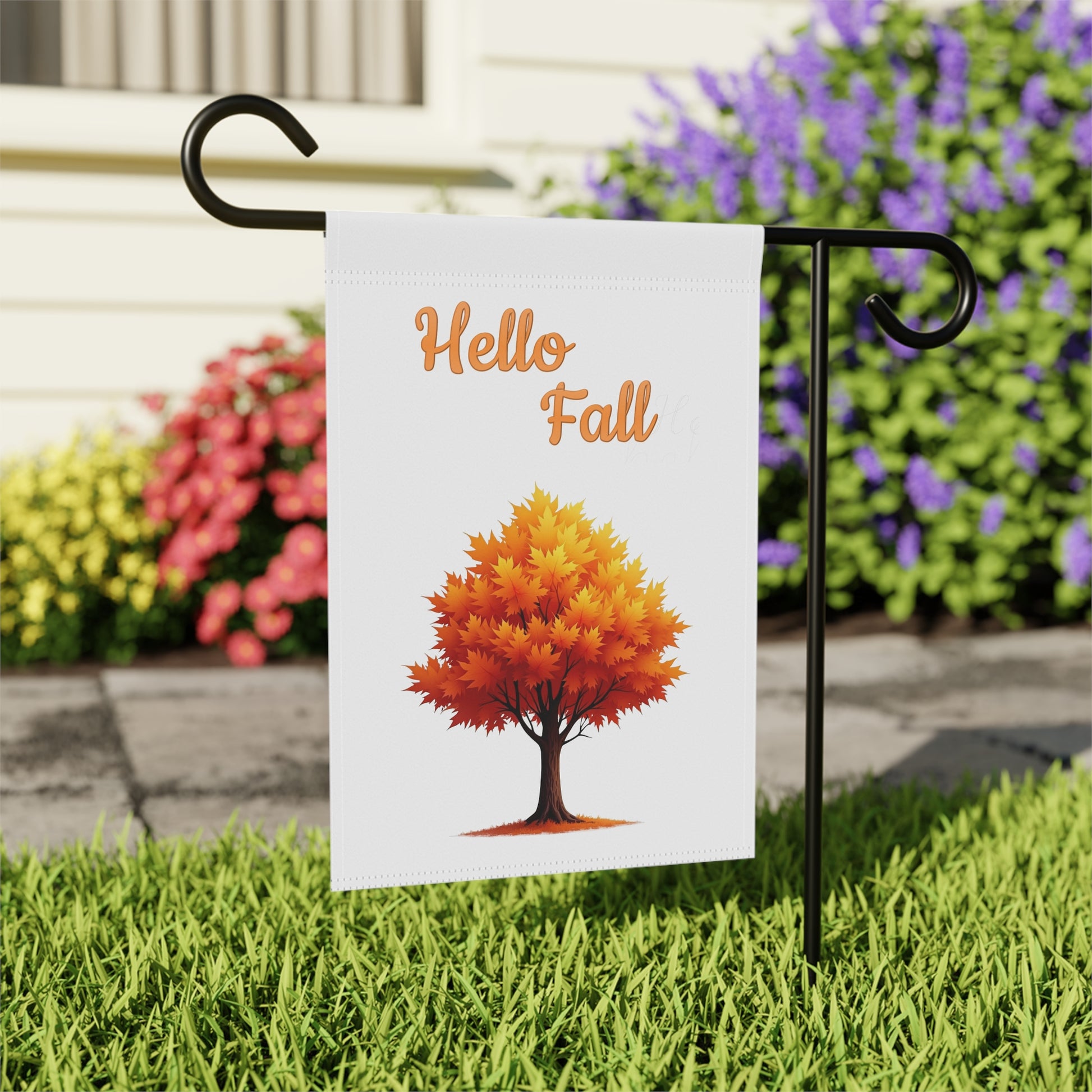 Embrace the beauty of the autumn season with our "Hello Fall" garden flag. This eye-catching flag showcases a beautiful autumn tree in stunning shades of golden yellow and orange, a perfect representation of the changing leaves. The "Hello Fall" message is a warm and inviting greeting for the season. Crafted from high-quality, weather-resistant fabric, this flag is built to endure the elements, ensuring its colors remain vivid and bright for years to come. It's an ideal piece of decor to bring a cozy, seasonal feel to your garden, patio, or porch.