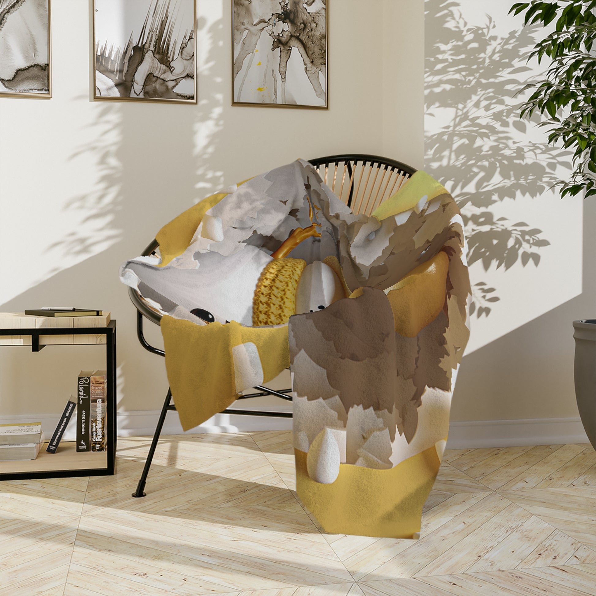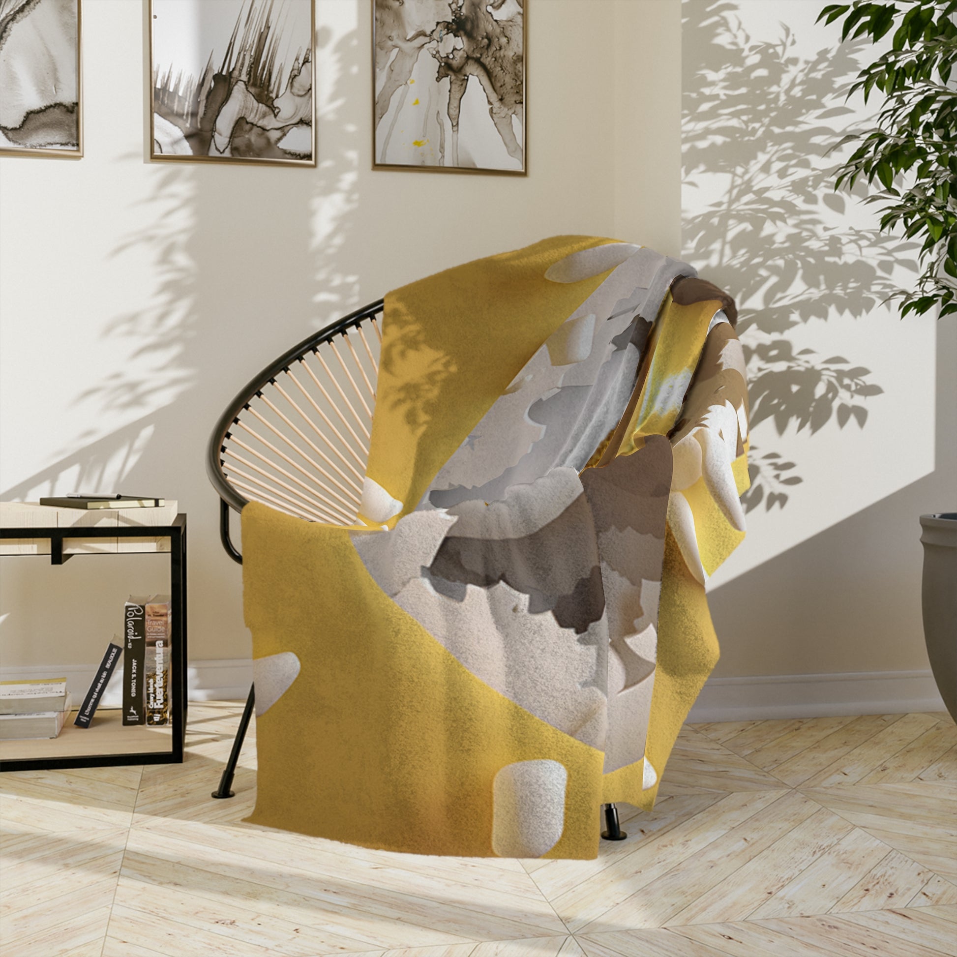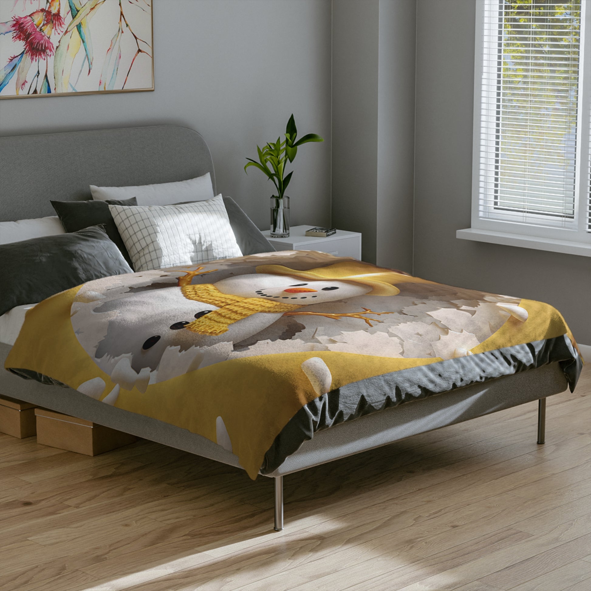 Brighten up your winter season with this cheerful Snowman Velveteen Plush Blanket. Featuring a smiling snowman with a sunny yellow top hat and matching scarf, set against a festive snowflake background in warm golden tones, this ultra-soft blanket adds a joyful twist to your holiday décor. Perfect for cozy nights by the fire, kids’ rooms, or as a unique Christmas gift that stands out from traditional red-and-green themes.