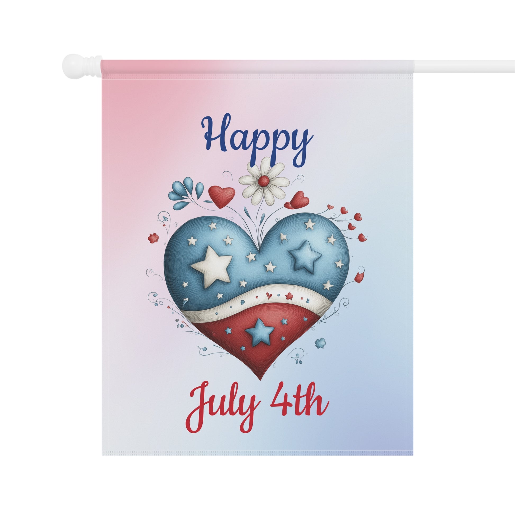 Show your American pride with our charming patriotic heart garden flag! Adorned with a red, white, and blue heart, it's the perfect decoration for 4th of July celebrations or year-round display. Add a touch of heartfelt patriotism to your home's outdoor decor.