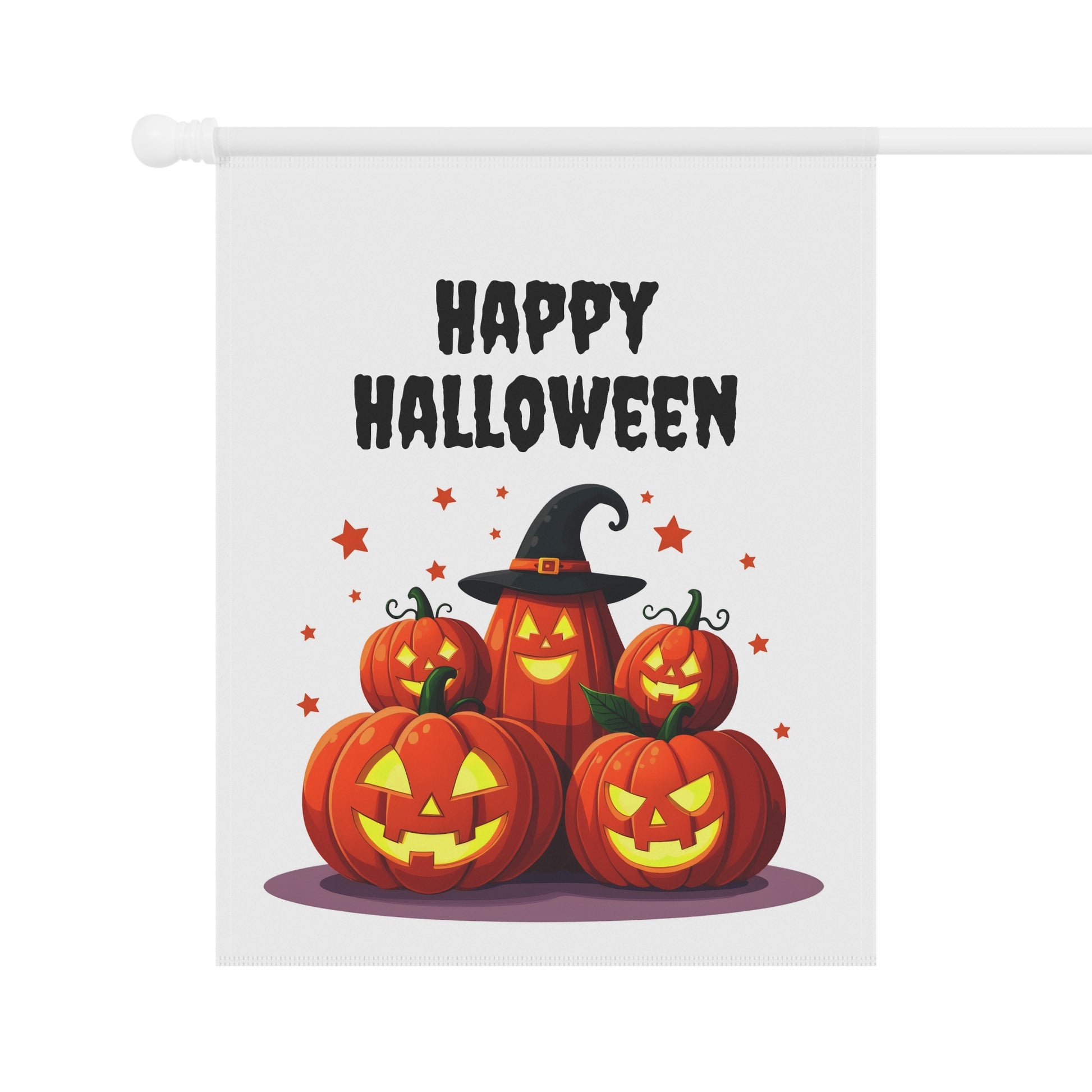 Get your yard ready for spooky season with this Happy Halloween Garden Flag! A cluster of glowing jack-o’-lanterns — one topped with a witch hat — brings playful energy to your fall décor. Whether you’re decorating for trick-or-treaters or just showing your Halloween spirit, this vibrant flag is the perfect accent.