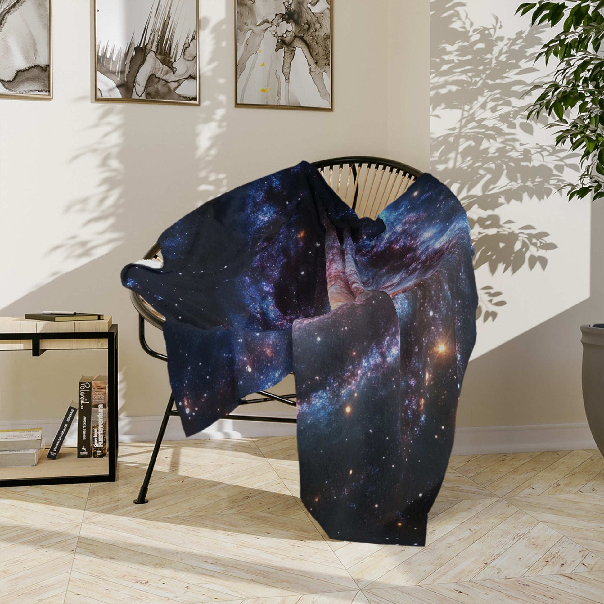 Wrap yourself in the cosmos with our breathtaking Lightweight Velveteen Plush Blanket. Featuring a stunning, high-resolution image of a vibrant spiral galaxy, this blanket is a perfect blend of comfort and cosmic wonder. Made from 100% polyester, the velveteen fabric offers an incredibly soft, smooth feel that's gentle against your skin.