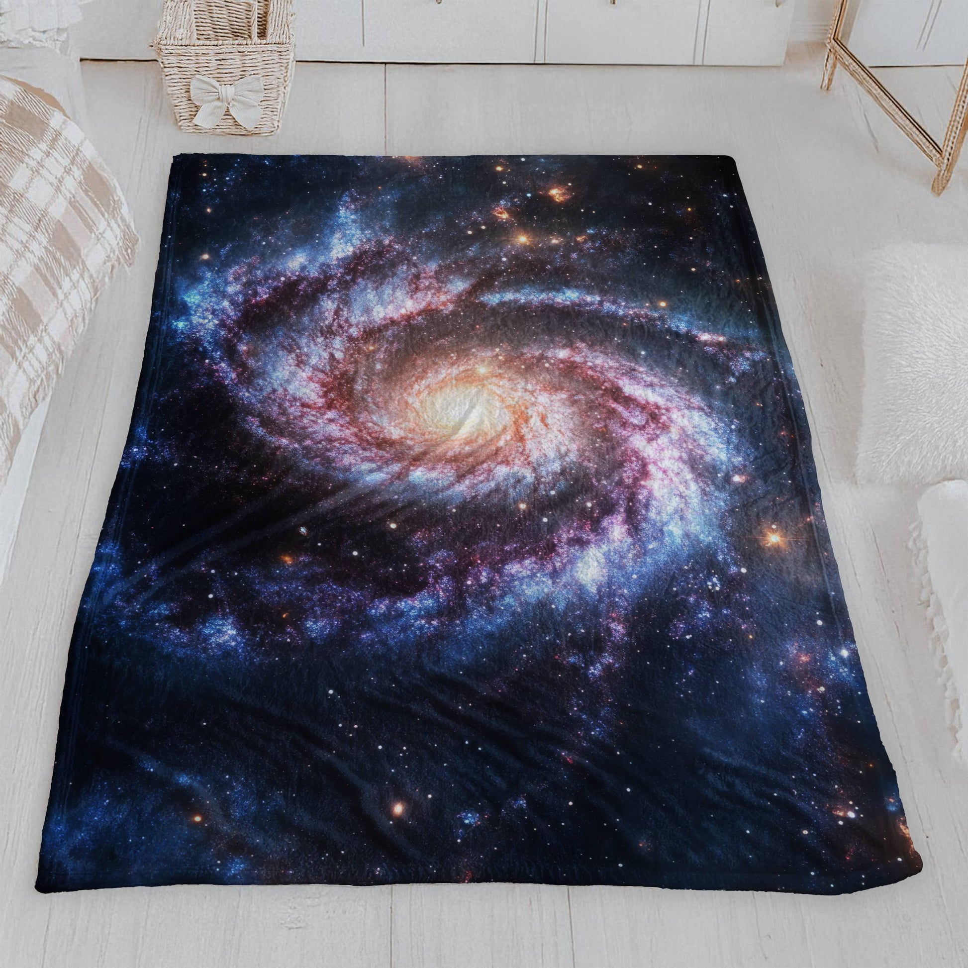 Lightweight Velveteen Plush Blanket with Spiral Galaxy Design