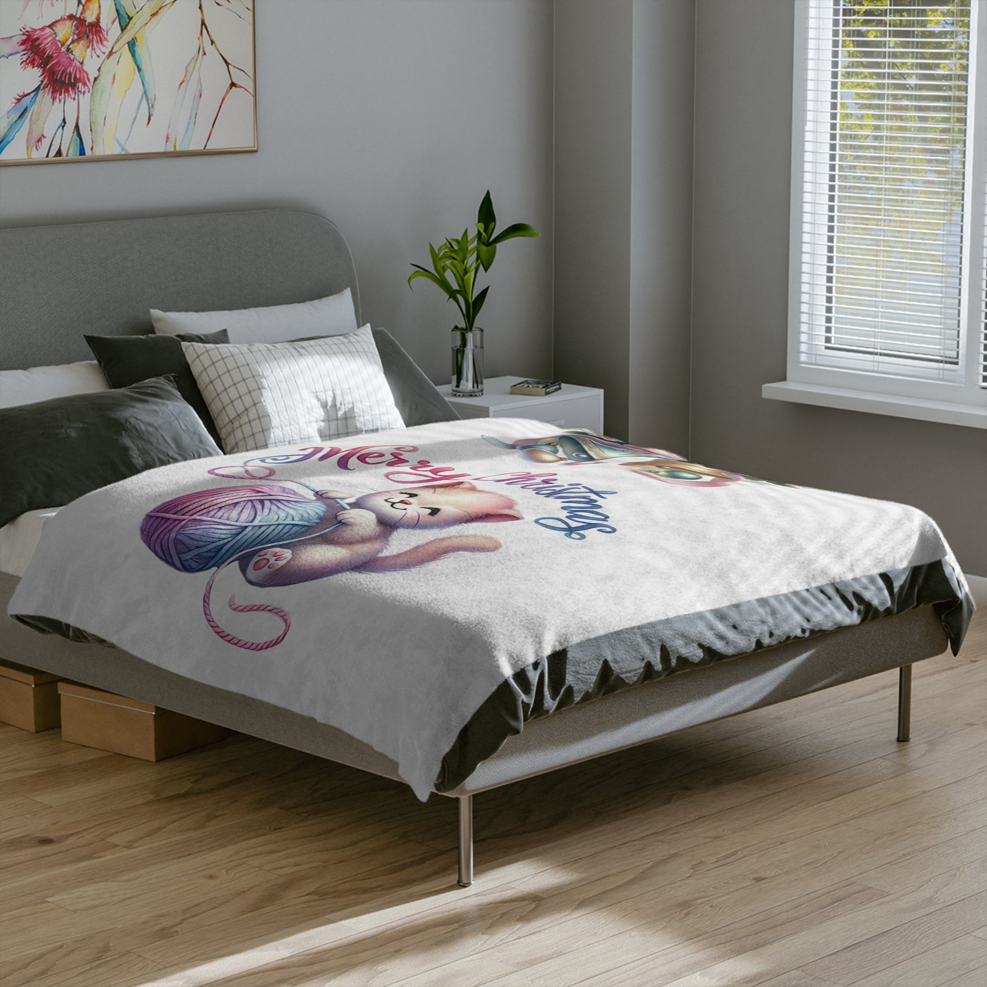Add a dash of festive cuteness to your home with this Merry Christmas Kitten Velveteen Plush Blanket. Featuring an adorable kitten playing with pastel yarn beneath shimmering holiday bells, this plush throw is the perfect combination of charm and Christmas cheer. This blanket is ideal for snuggling during holiday movie nights, decorating your living room, or gifting to a cat lover who adores whimsical seasonal décor.