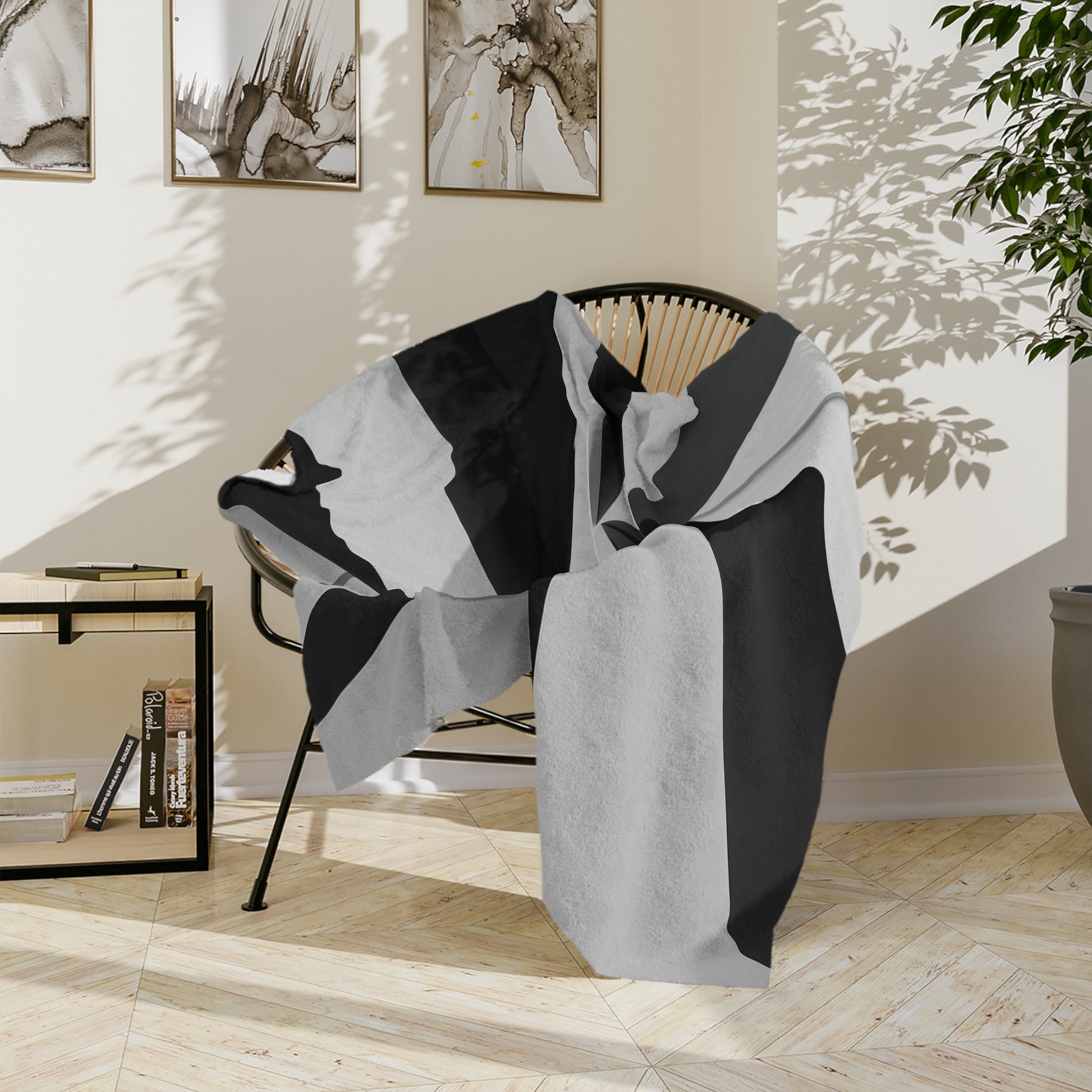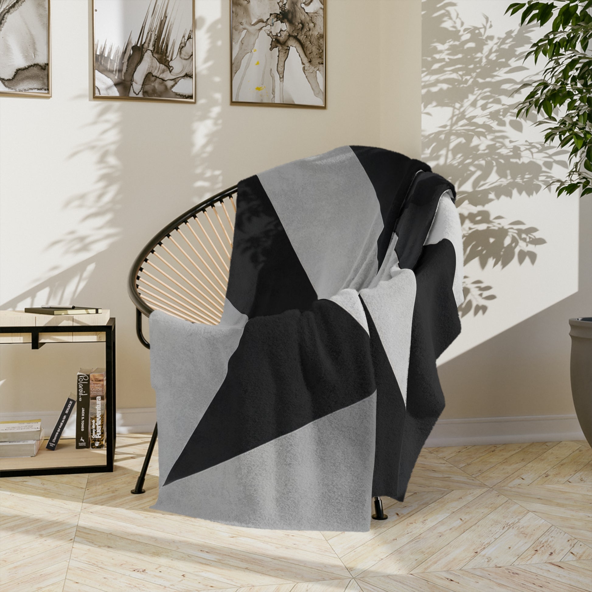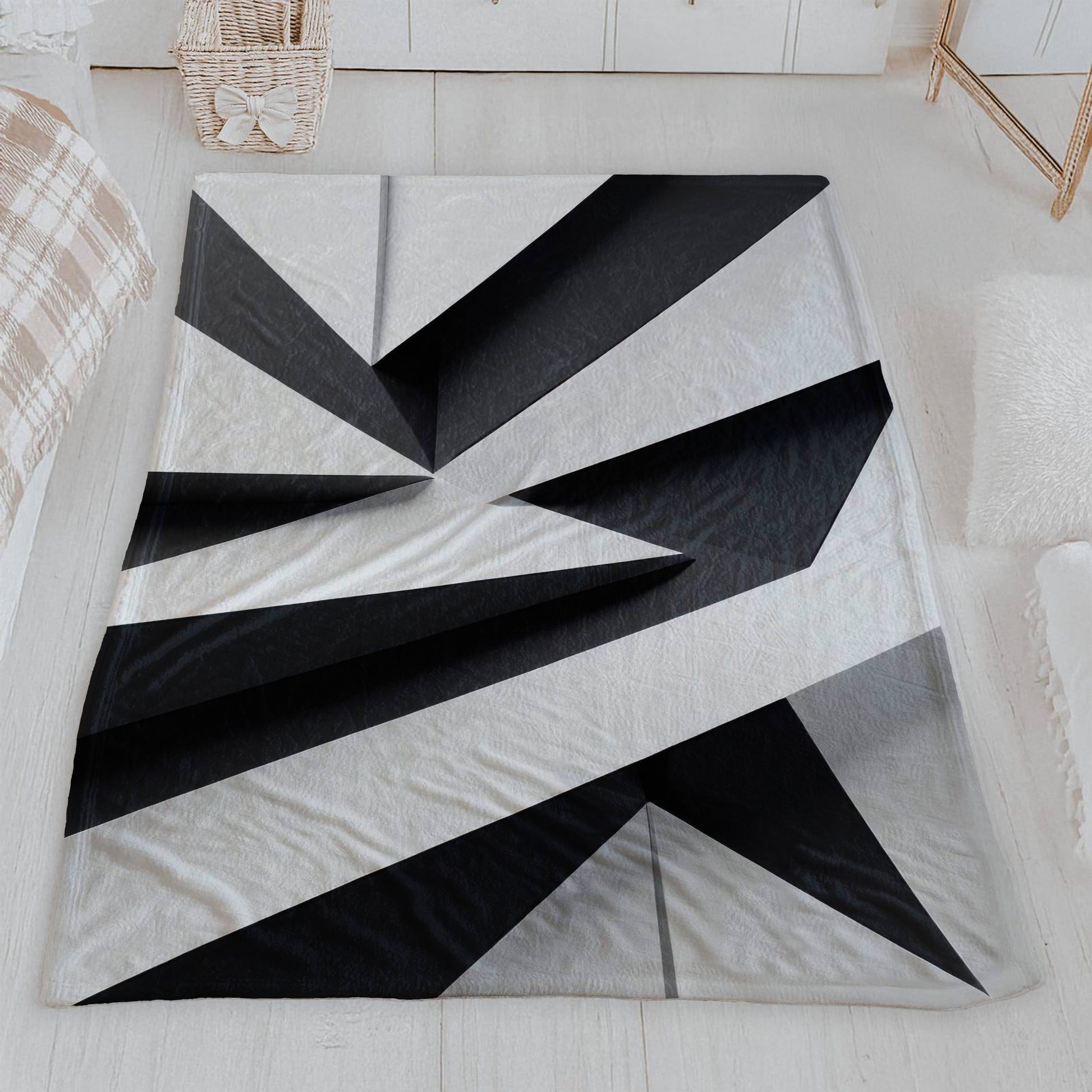 Wrap yourself in modern design with our Monochrome Angles Velveteen Blanket. This isn't just a blanket; it's a statement in sleek, contemporary style. Made from incredibly soft, lightweight velveteen, it provides a luxurious feel perfect for year-round comfort. The high-definition print features a striking, three-dimensional geometric pattern of black and white angles, creating a sense of depth and modern artistry. This graphic design is perfect for adding a sophisticated, architectural touch to any living space. Whether you use it as a stylish throw on your couch, a unique bedspread accent, or even as a piece of wall art, this blanket is as versatile as it is chic. Its velvety-smooth texture feels great against your skin, and its lightweight nature makes it easy to enjoy anywhere. It's an excellent gift for designers, modern art lovers, and anyone who appreciates a bold, minimalist aesthetic.