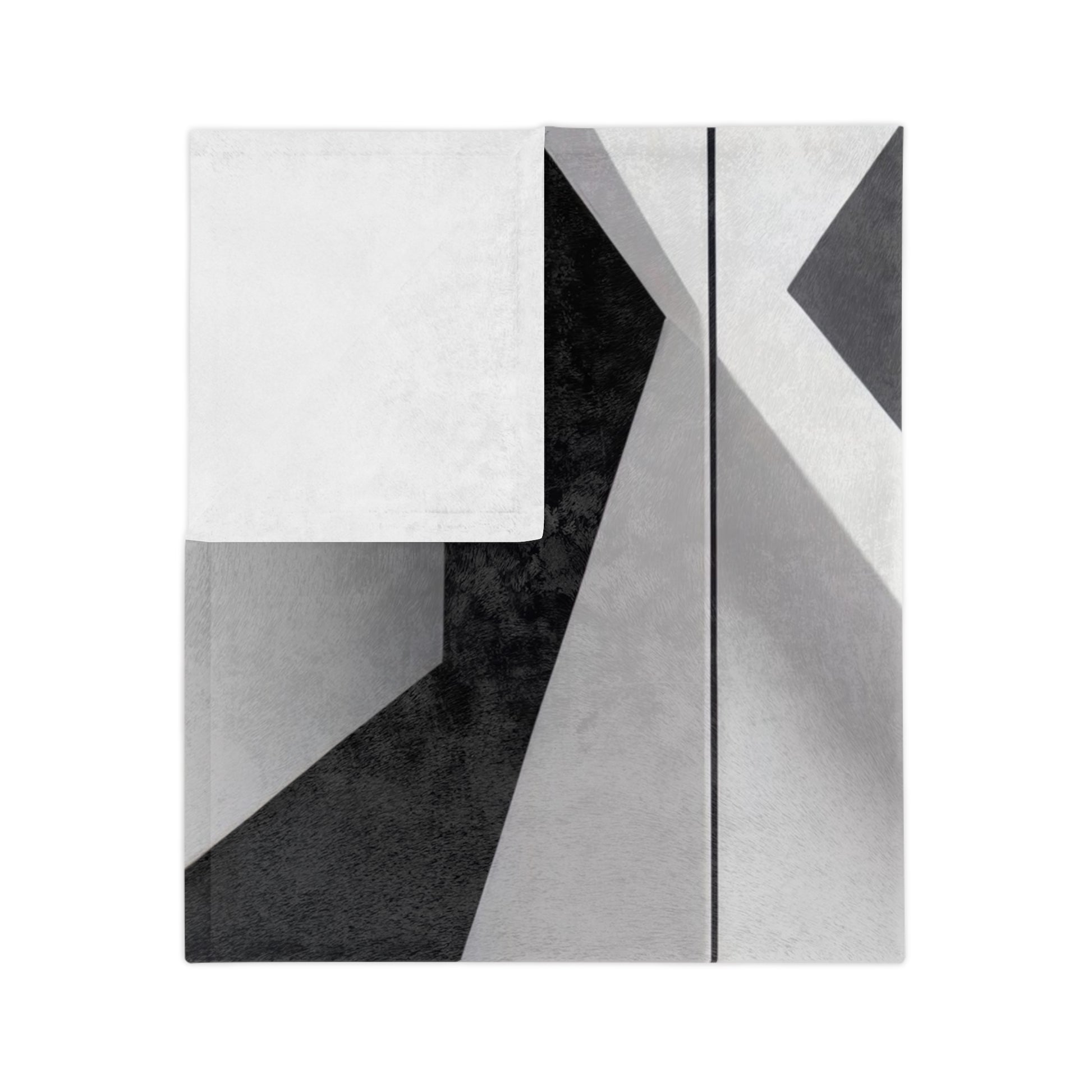 Add a touch of modern sophistication to your space with our Monochrome Geometric Velveteen Blanket. Featuring a striking design of intersecting black, white, and gray shapes, this throw is a stunning statement piece that complements any decor.