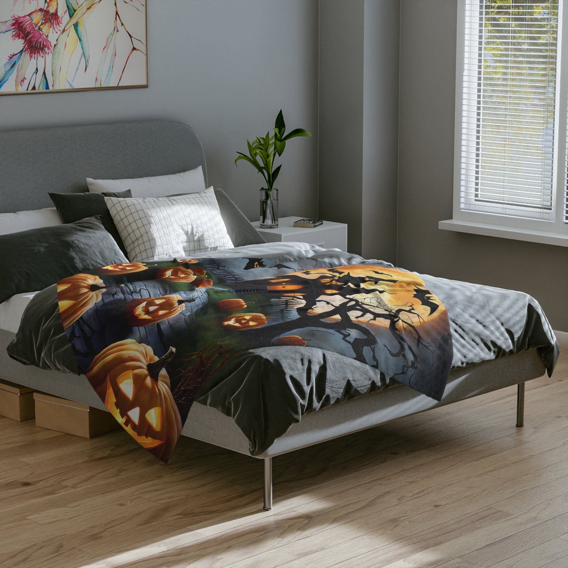 Mystical Haunted Mansion & Jack-o'-Lantern Path Halloween Plush Blanket