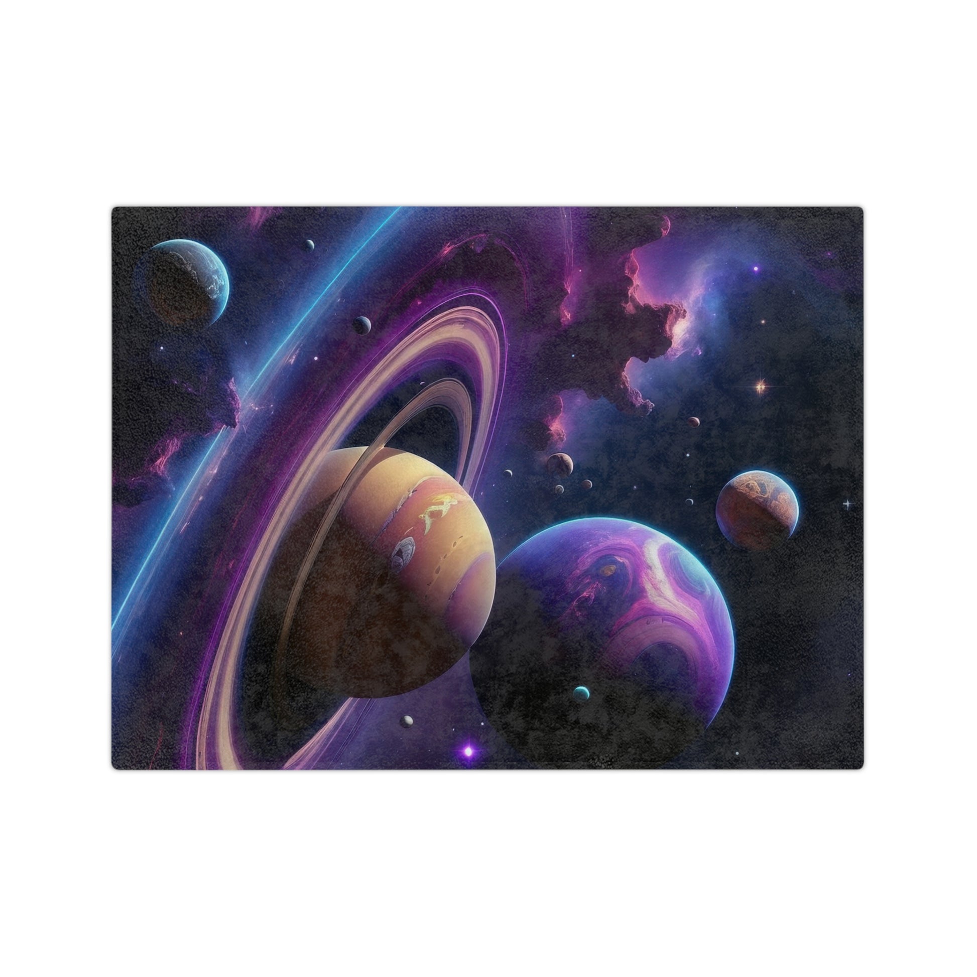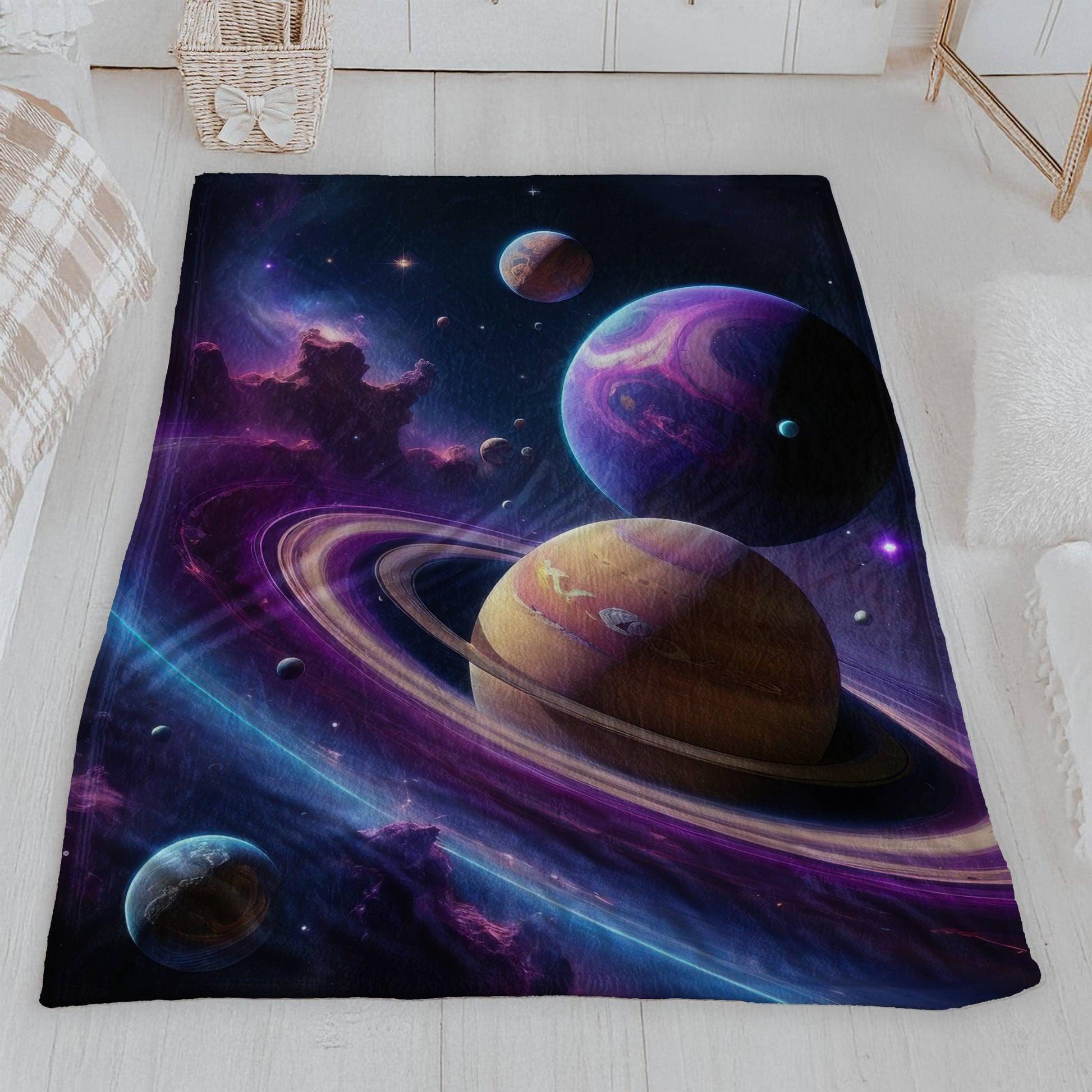 Drift off into a dreamscape of distant galaxies with our Nebula Dreamscape Velveteen Blanket. This isn't just a blanket; it's a cosmic adventure you can wrap yourself in. Made from incredibly soft, lightweight velveteen, it's perfect for year-round comfort without the weight. The stunning, high-definition print features a vibrant scene of planets with spectacular rings, surrounded by swirling nebulae and shimmering stars. This breathtaking design brings the magic and wonder of space directly into your home. Whether you're using it as a cozy throw for a relaxing night, a unique bedspread accent, or even a piece of wall art, this blanket is a versatile and beautiful addition to any space. The velvety-smooth texture feels gentle against your skin, and its lightweight nature makes it easy to enjoy on the couch or on the go. It's the perfect gift for stargazers, science enthusiasts, or anyone who loves the beauty of the universe.