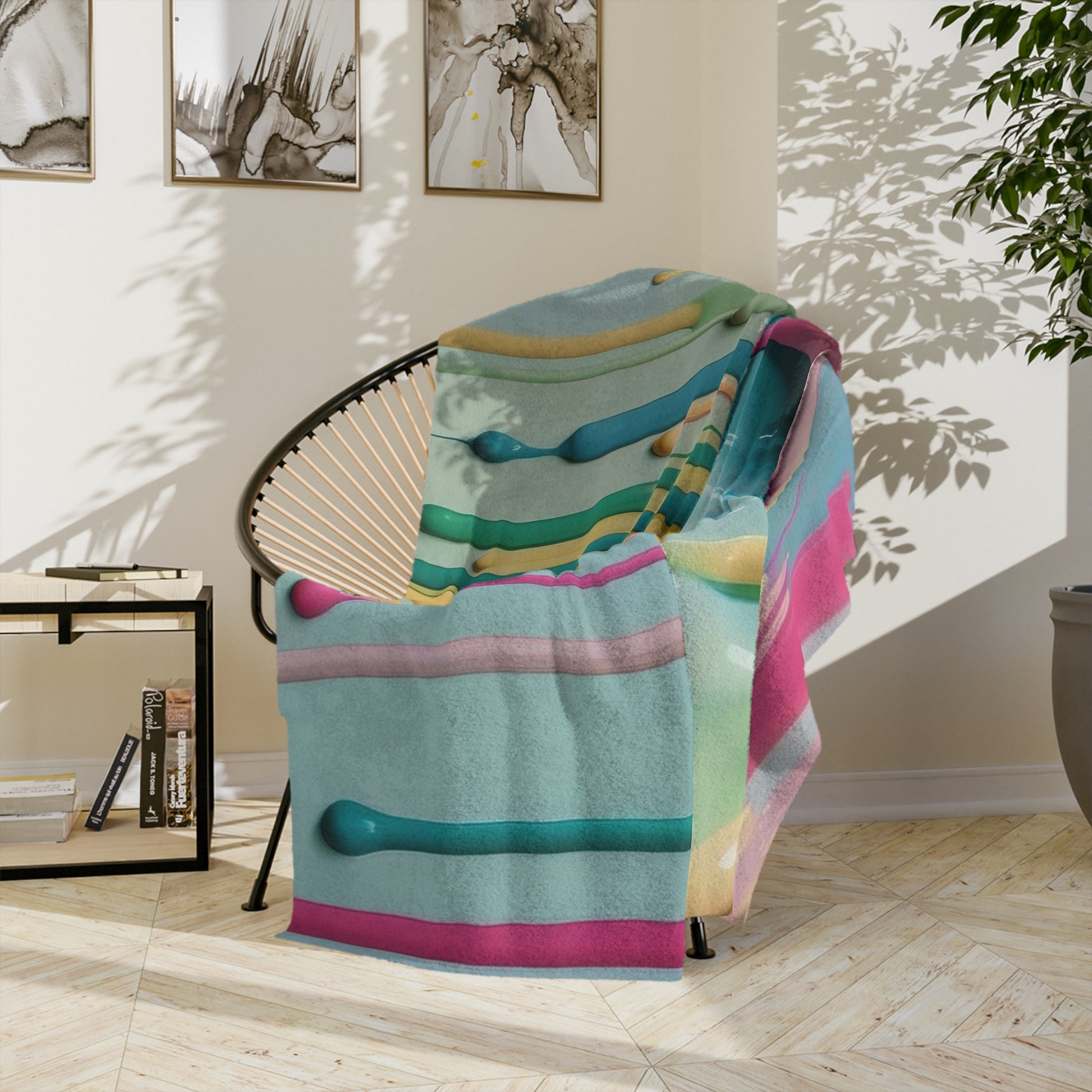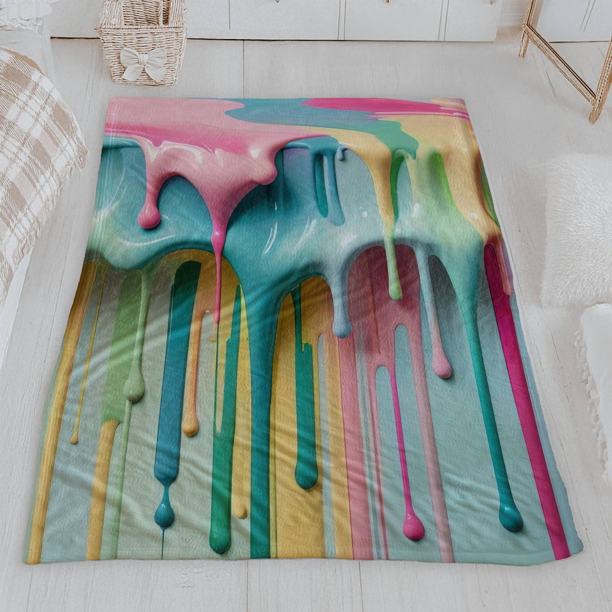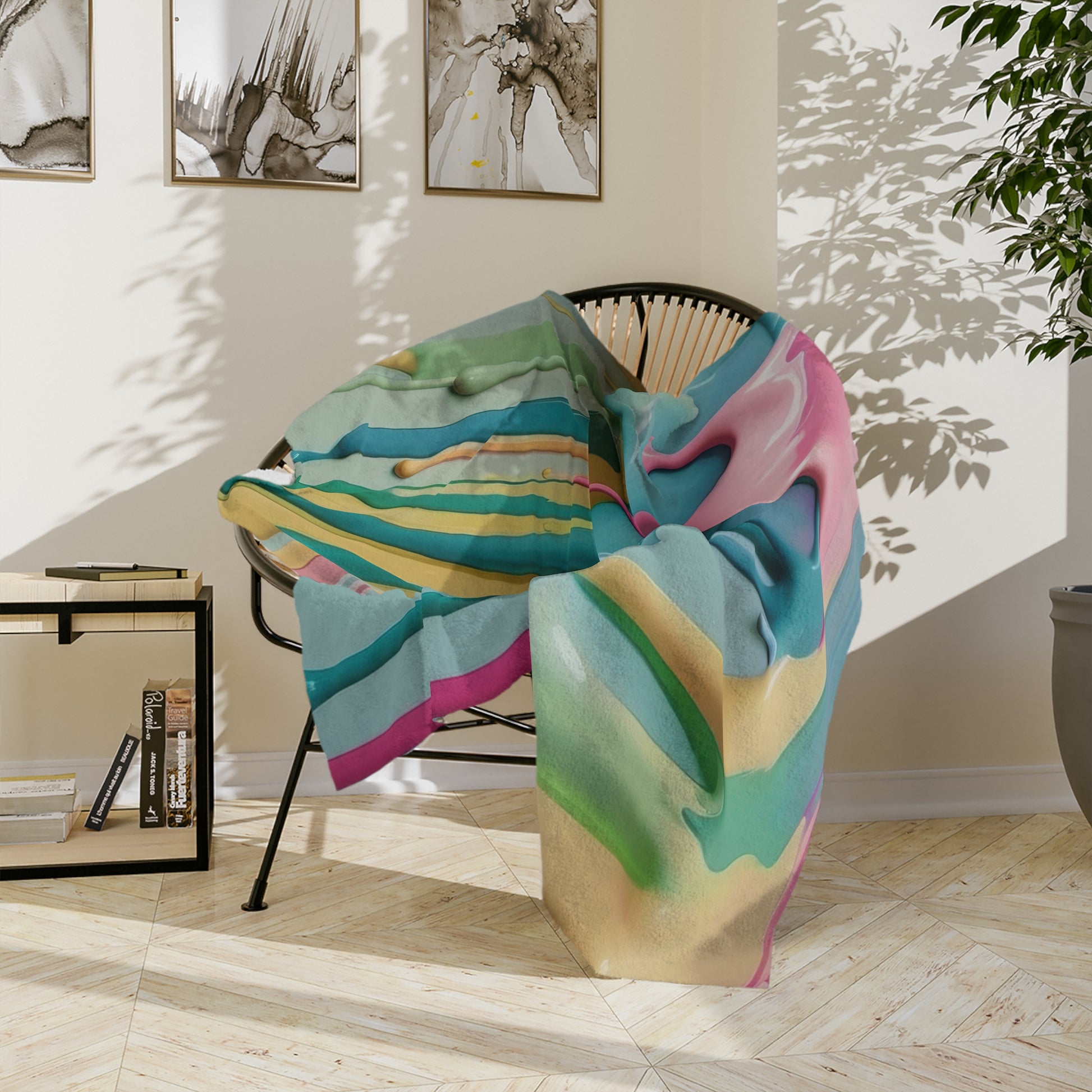 Wrap yourself in a masterpiece of color with our Pastel Drip Velveteen Blanket. This isn't just a blanket; it's a piece of art for your home. Made from incredibly soft, lightweight velveteen, it's perfect for year-round comfort. The unique, high-definition print features a cascade of beautiful pastel colors, reminiscent of melting ice cream or dripping paint. It's a fun and whimsical design that adds a playful pop of color to any room. Whether you drape it over a couch as an eye-catching accent, use it as a cozy throw for movie nights, or even display it as a unique wall tapestry, this blanket is as versatile as it is beautiful. The velvety-smooth texture feels gentle against your skin, and its lightweight nature makes it easy to take with you on trips or simply move from room to room. It’s an ideal gift for art lovers, decorators, and anyone who wants to bring a little extra sweetness and comfort into their life.