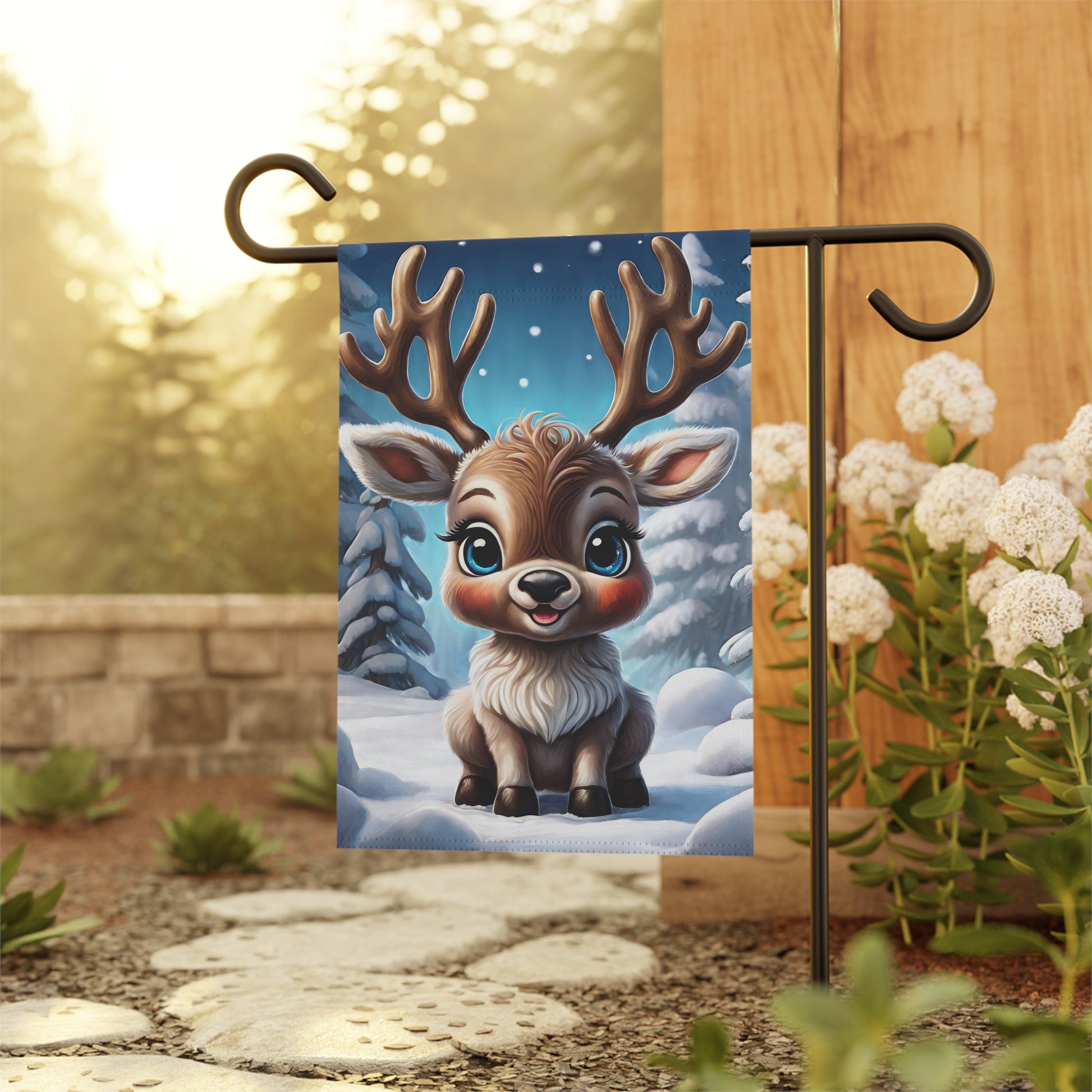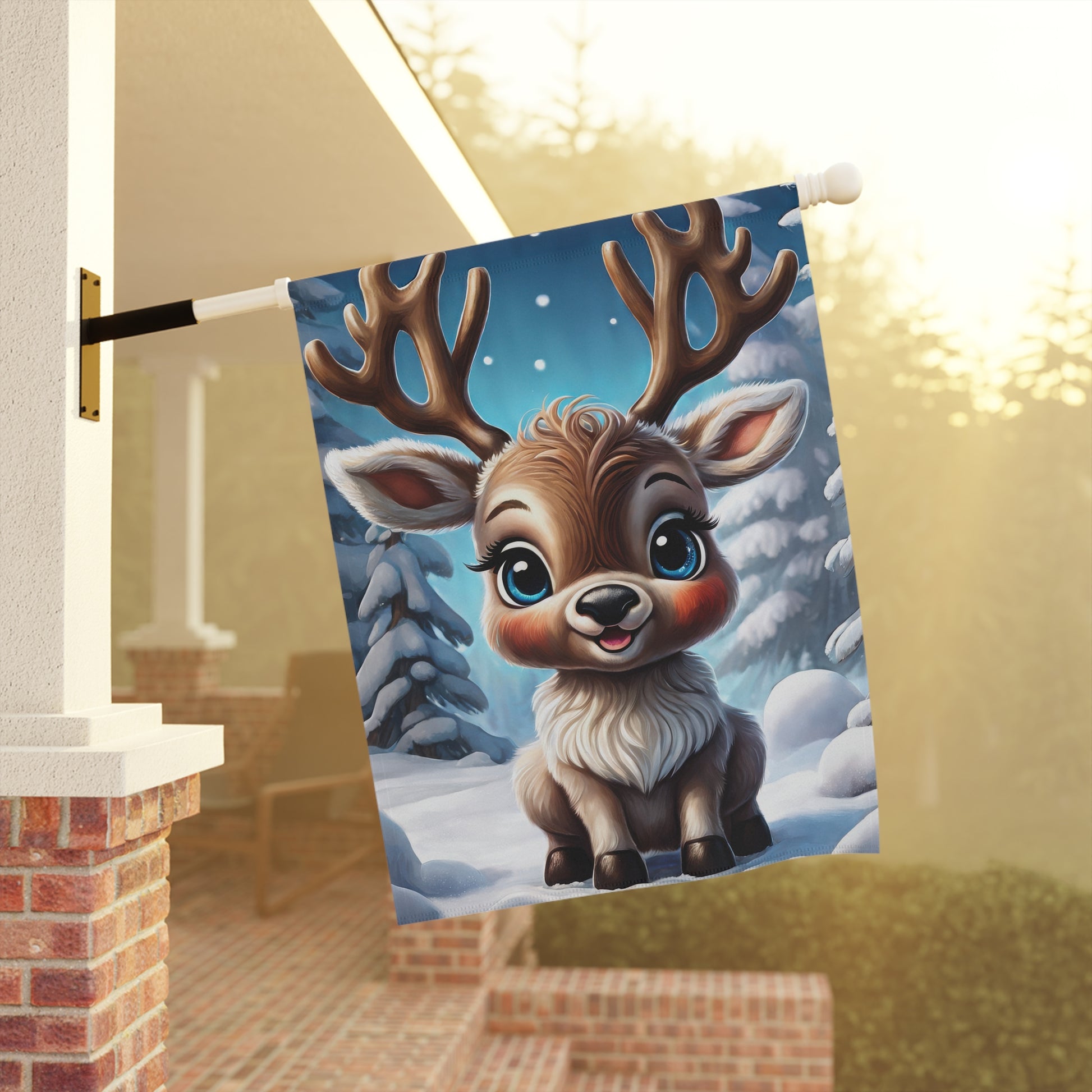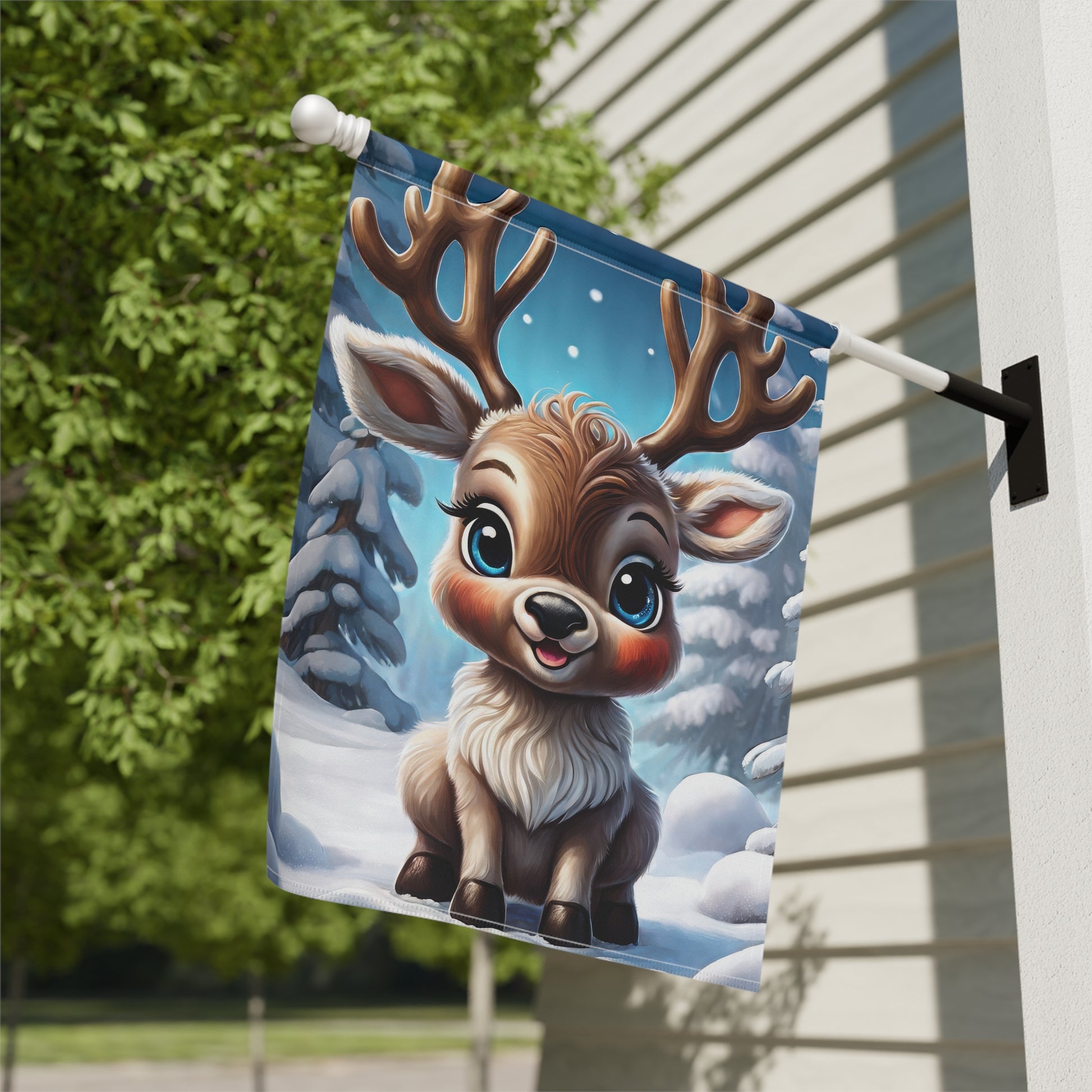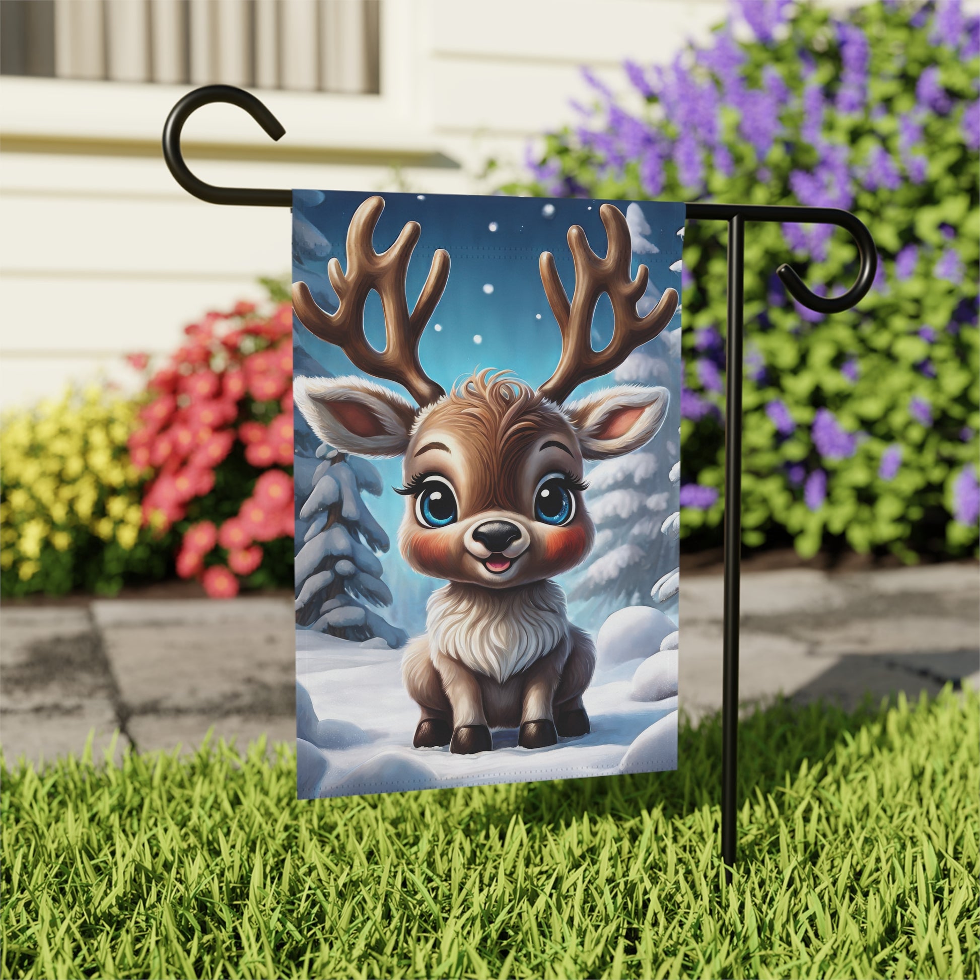 Welcome the holiday season with this absolutely adorable garden flag featuring a sweet baby reindeer with big, sparkling eyes and charming antlers, nestled in a peaceful snowy forest with falling snowflakes. This delightful flag is the perfect addition to your outdoor Christmas and winter decorations, adding a touch of innocence and whimsical charm to your garden, patio, or entryway. Crafted from durable, weather-resistant material, it's designed to withstand the elements and maintain its vibrant colors year after year. A wonderful way to spread holiday cheer or a thoughtful gift for reindeer and Christmas enthusiasts!