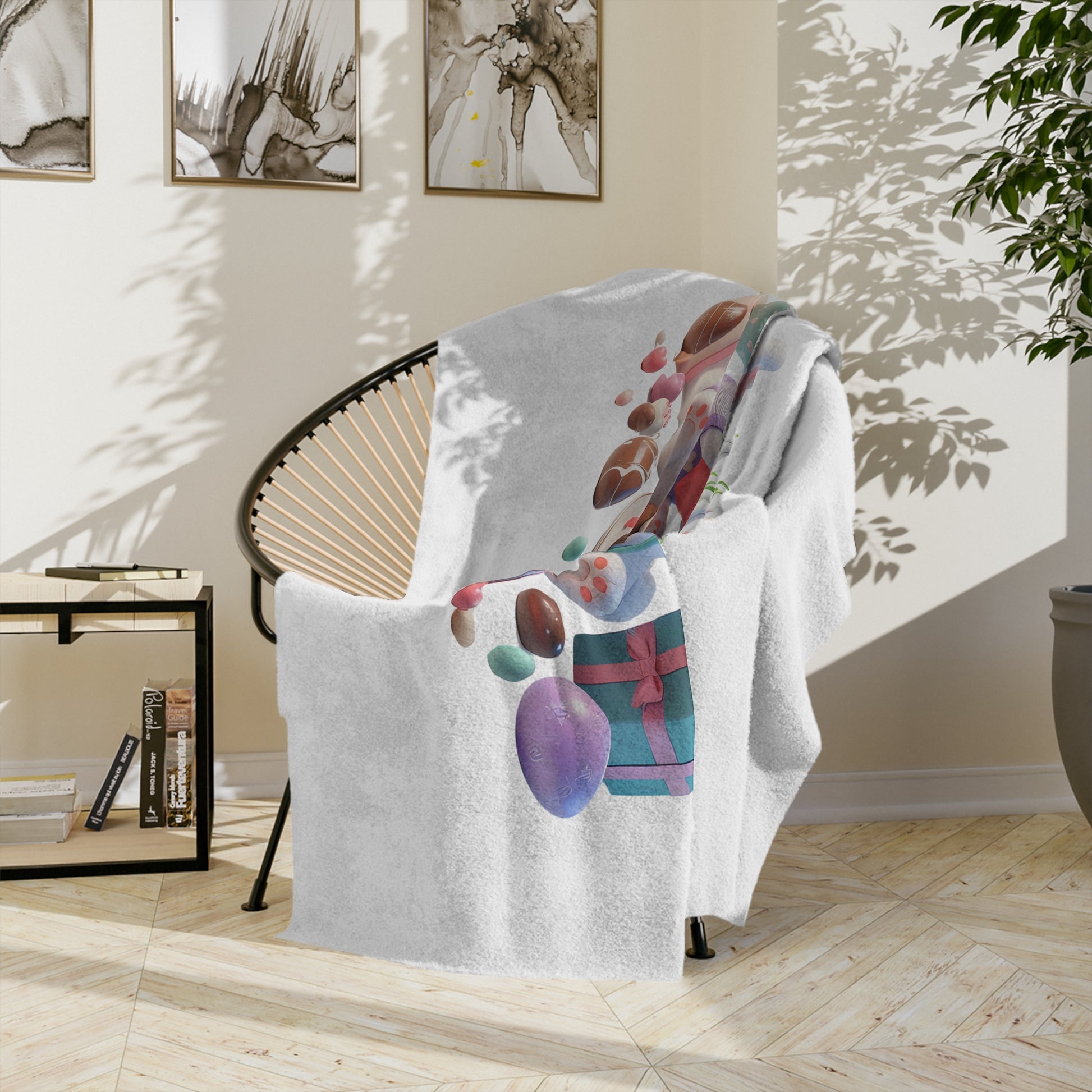 Wrap yourself in the cozy spirit of Easter with our adorable "Happy Easter" velveteen blanket. This soft and lightweight throw features a charming illustration of two fluffy Easter bunnies surrounded by decorated eggs, sweet treats, and a festive gift. It’s the perfect way to add a playful and warm touch to your home decor during the spring season. Whether you're snuggling on the couch, adding a decorative layer to your bed, or looking for a delightful gift, this blanket is a wonderful choice. Made from plush velveteen fabric, it's exceptionally comfortable and a must-have for any Easter enthusiast.